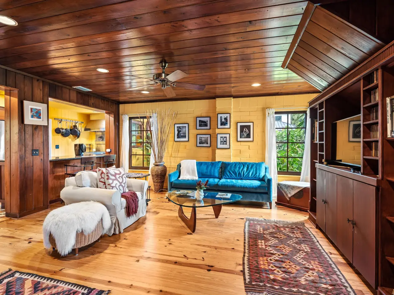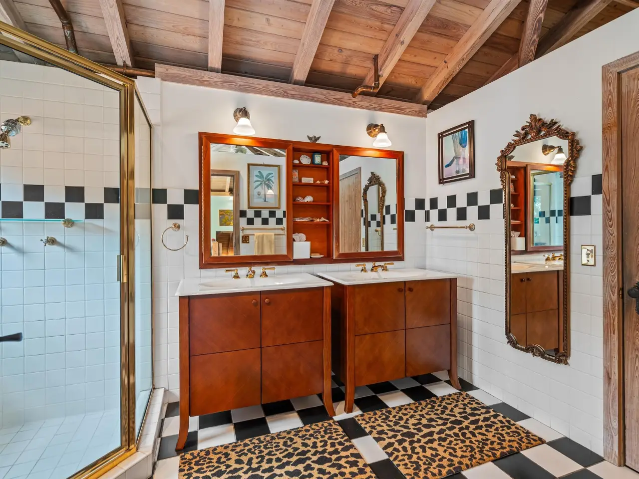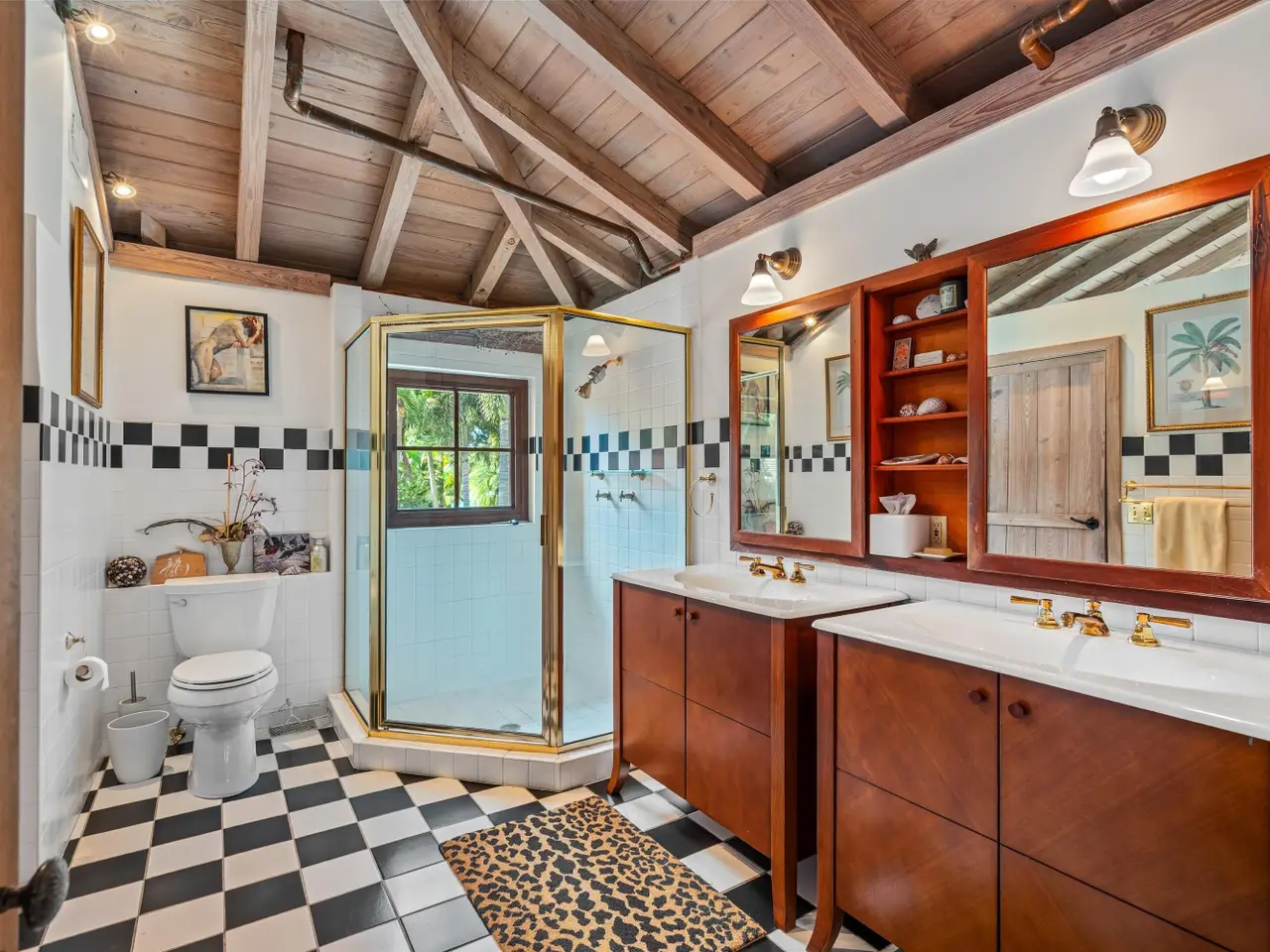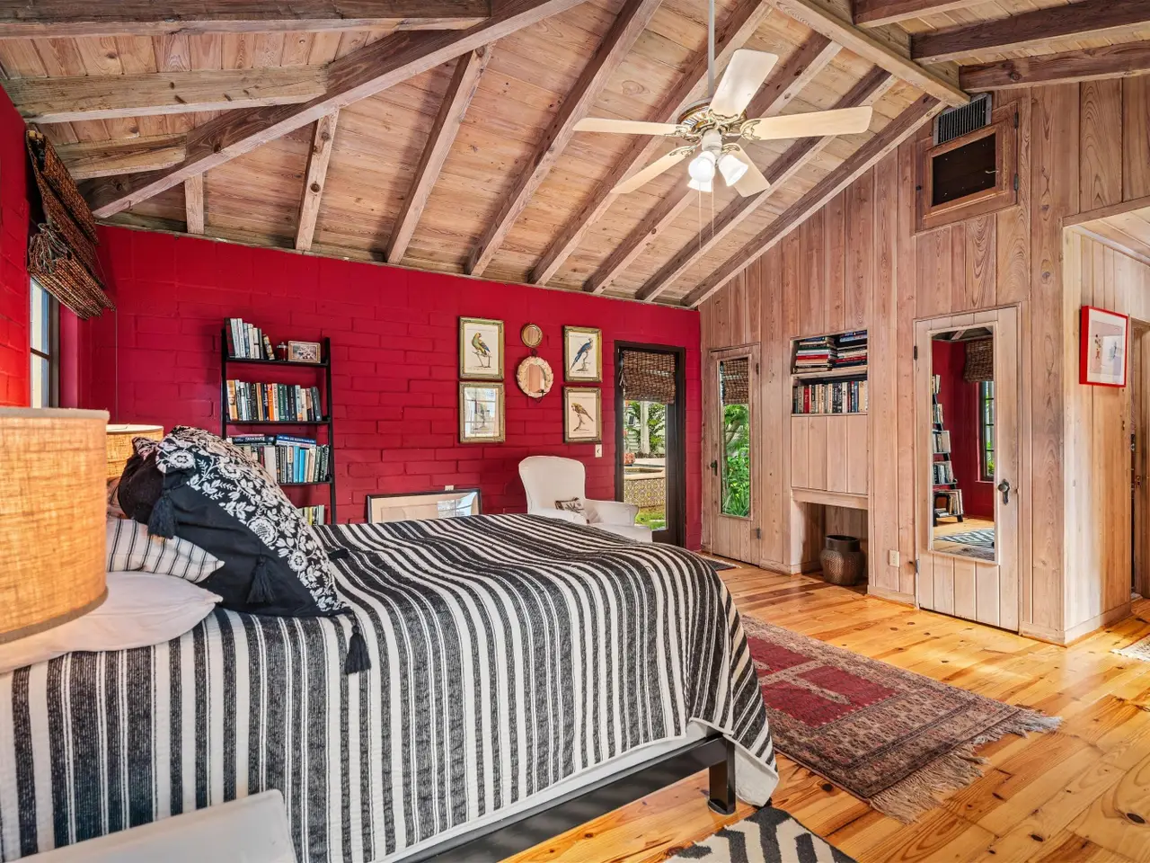 Beautifully maintained and thoughtfully updated 1950s residence, steeped in historical significance, was designed by renowned architect Beford Shoumate. This exquisite three-bedroom residence features an array of striking characteristics maintaining the charm of its era that include wood-beamed ceilings and rich cypress paneling complemented by Dade County pine and Mexican-tile flooring 334 Palm Trail, Delray Beach, Florida: The desirable Palm Trail neighborhood is perfectly located, just minutes from Delray Beach's award-winning sand-carpeted beaches, as well as vibrant Atlantic Avenue's boutique shopping, dining and nightlife venues. It is barely 20 minutes from Boca Raton's private executive airport, and an easy 30 minute commute to Palm Beach International Airport. PROPERTY: Sited on more than a half-acre parcel, with expansive lawns, old-growth trees, tropical landscaping and sea grape hedging in Delray Beach's Palm Trail area, steppingstones lead to the front entryway, establishing a gracious sense of place. In the back, the screened loggia, with Mexican-tile flooring and a wood-beamed ceiling, flow out to the sun-splashed pool set within a large patio. RESIDENCE: This beautifully maintained and thoughtfully updated 1950s residence, steeped in historical significance, was designed by renowned architect Beford Shoumate for Lowell Davidson Kern, Delray Beach's mayor in 1956, and his wife, Dorothy. Spanning 3, 738 total square feet, this exquisite three-bedroom residence features an array of striking characteristics that evoke the charm of its era. Creating a harmonious flow, the open-concept living and dining rooms showcase two fireplaces, pine flooring and wood beamed ceilings, along with cypress-paneled and brick accent walls. Embracing the allure of indoor/outdoor living, sliding glass doors from the dining room open to the large, screened pool loggia. Enriched by painted paneling, wood cabinets and a floor that incorporates decorative, hand-painted Mexican tile, the kitchen is finished with granite counters, high-end stainless-steel appliances, passe plats for easy entertaining, and a breakfast bar that opens to the family room. Offering garden views, a sitting room connects to the guest wing with two guest bedroom suites, with one currently serving as a pool-view office and the other featuring a peaked wood-beamed ceiling and offering garden views. Designed with a split-bedroom plan, the primary suite presides over the second floor. A serene retreat with a cypress-wood beamed volume ceiling, a fireplace with a simple brick surround, picture windows offering garden views and a private balcony, the suite comprises a custom-fitted walk-in closet and a bathroom with quartz finishes, two wood vanities and a glass-enclosed shower. Completing the layout are a powder room, a laundry room with a pantry closet and the two-car garage. With an easy flowing layout, new Hurricane rated windows and doors, inviting outdoor spaces, new and rich architectural details in the heart of Delray Beach, this residence is not just a place to live, but a canvas for creating cherished memories.