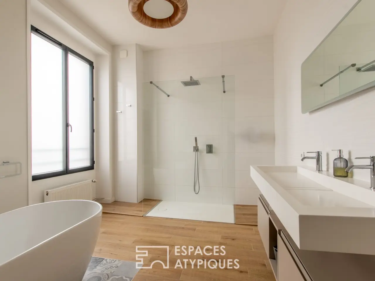 At the gates of Angers, just 8 minutes from the TGV station, this bourgeois residence from 1901, and its contemporary outbuilding, offer the best of this architectural era in a privileged location. This building of 230 sqm for the main part, and 56 m2 for the outbuilding, completely renovated, has retained its unique charm thanks to the choice of its noble materials, and the quality of its renovation. Roof, facade, stone cutting, zinc work, electricity, plumbing, gas heating, joinery: nothing has been omitted to make this property a property that combines the charm of the old and the comfort of the contemporary. The ground floor opens onto an entrance hall serving a living room and its fireplace with insert, and a dining room, where everything is just right: parquet floors, loures, fireplaces. A games room/office, and a Porcelanosa fitted kitchen, allow you to enjoy the tranquility of the garden. On the first level, 3 large bedrooms and a Porcelanosa bathroom project us into a warm and functional family living space. The second floor offers 2 new bedrooms, a new shower room and a large functional laundry room. The whole is on a full basement, also completely redone. To accompany this property, a contemporary outbuilding of 56 sqm completely renovated, accommodates on the ground floor a fitted and equipped kitchen, opening onto a sunny terrace, as well as a small pleasant and bright living room. Upstairs, two small bedrooms and a completely bathroom this functional contemporary house has an unusual appearance. The 925 m2 garden, fully landscaped with taste, is decorated with a large masonry and heated swimming pool, equipped with its roller shutter. As well as an automatic watering system connected to the water from the well. A very functional double carport completes the whole. Located a few minutes from all amenities, this property stands out for the quality of its renovation, and its exceptional location. Energy Class D (203) / Climate Class D (38) Estimated average amount of annual energy expenditure for standard use between EUR3,160 and EUR4,330 maximum per year. Additional information * 11 rooms * 7 bedrooms * 1 bathroom * 2 shower rooms * Floor : 2 * 2 floors in the building * Outdoor space : 925 SQM * Parking : 2 parking spaces * Property tax : 3 580 € Energy Performance Certificate Primary energy consumption d : 203 kWh/m2.an High performance housing