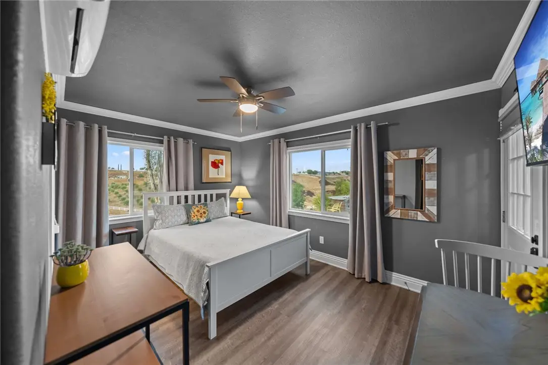 HILLTOP HAVEN IN THE HEART OF TEMECULA WINE COUNTRY! Perched atop a scenic hill, this stunning property offers breathtaking panoramic views and ample space for everyone with 6 bedrooms and 4 bathrooms, including two with en-suite bathrooms! Perfect for hosting or accommodating your outdoor lifestyle, the property boasts RV, boat, and toy parking with convenient hookups (water, black tank pump-out, and 30 & 50 AMP connections). A sprawling wraparound deck and a stamped concrete patio create the ultimate setting to soak in vibrant SoCal sunsets or marvel at early-morning hot air balloons drifting by. Enjoy an outdoor paradise with a custom wine barrel bar, BBQ station, and cozy firepit. Let the good times roll with a horseshoe pit, a bubbly jacuzzi overlooking vineyard-draped hills, and a 3-hole putting green for endless entertainment. Step inside to find an open and inviting great room with built-in window seats—perfect for a quiet reading nook or sipping morning coffee. A large built-in desk with ample storage makes the space as functional as it is charming. The oversized kitchen is a chef’s dream, featuring granite countertops, an island, stainless steel appliances, a built-in wine rack, abundant cabinet space, and double doors leading to the deck—perfect for seamless indoor-outdoor dining. The luxurious primary suite is a peaceful retreat, bathed in natural light with a spacious walk-in closet and built-in dresser. The en suite bathroom includes a beautifully oversized walk-in shower, ideal for unwinding after a day of wine tasting or exploring. For your convenience, the property also features an electric car charging station, two metal sheds, and two 40-foot shipping containers for plenty of storage. This property has a proven track record as an Airbnb and offers endless possibilities for your personal enjoyment or as an investment. Don’t miss this slice of paradise—schedule your private tour today!
