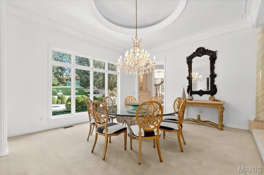 Poised for transformation, this Town & Country estate rests on nearly two beautifully landscaped acres in an exclusive gated enclave. Surrounded by trees, the lot provides unparalleled privacy, while the home’s generous square footage, resort-style amenities, and thoughtfully designed layout provide a perfect personalization opportunity. Designed for entertaining, the gracious foyer invites you into the expansive living room and dining room with floor-to-ceiling windows overlooking the stunning backyard—complete with a pool with waterfalls, tennis court, and lush landscaping for your personal oasis. The spacious eat-in kitchen offers abundant cabinetry, counter space, and a breakfast room with a built-in banquette. A cozy den is ideal for movie nights, while the billiards room provides a versatile space for games, an office, or library. The main-floor primary suite, with a gas fireplace offers dual walk-in closets, soaking tub, separate shower, and dual vanities. Upstairs are two bedrooms with a shared bath, one en-suite, and a flexible fourth bedroom or creative studio. The walk-out lower level checks all the boxes with a wine cellar, theater room, guest bedroom, full bath and kitchen. Additional highlights include a spacious first-floor laundry and mudroom, a secondary service entrance, and an oversized four-car garage. With its timeless setting and impressive grounds, this property provides the canvas for a new homeowner to create their own custom masterpiece.