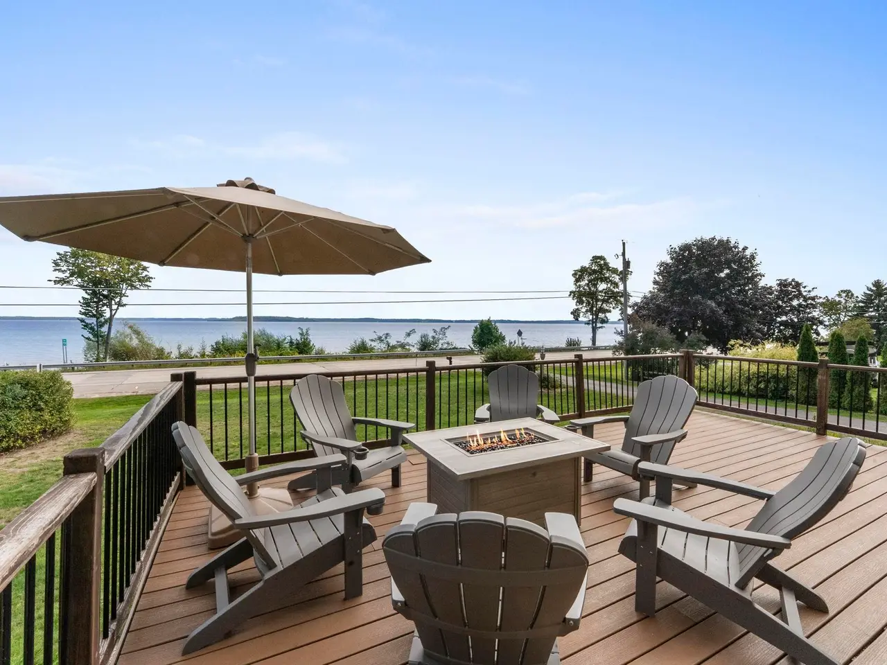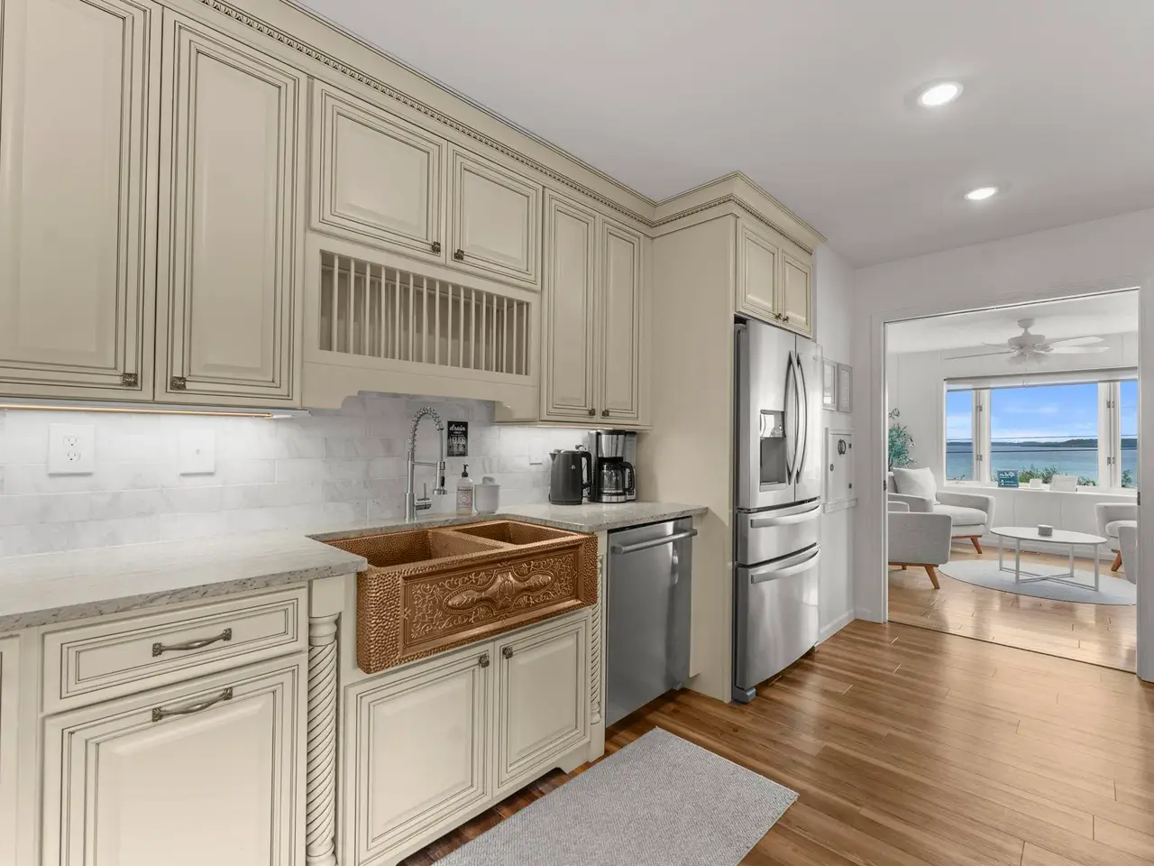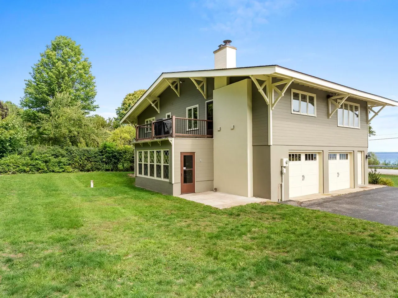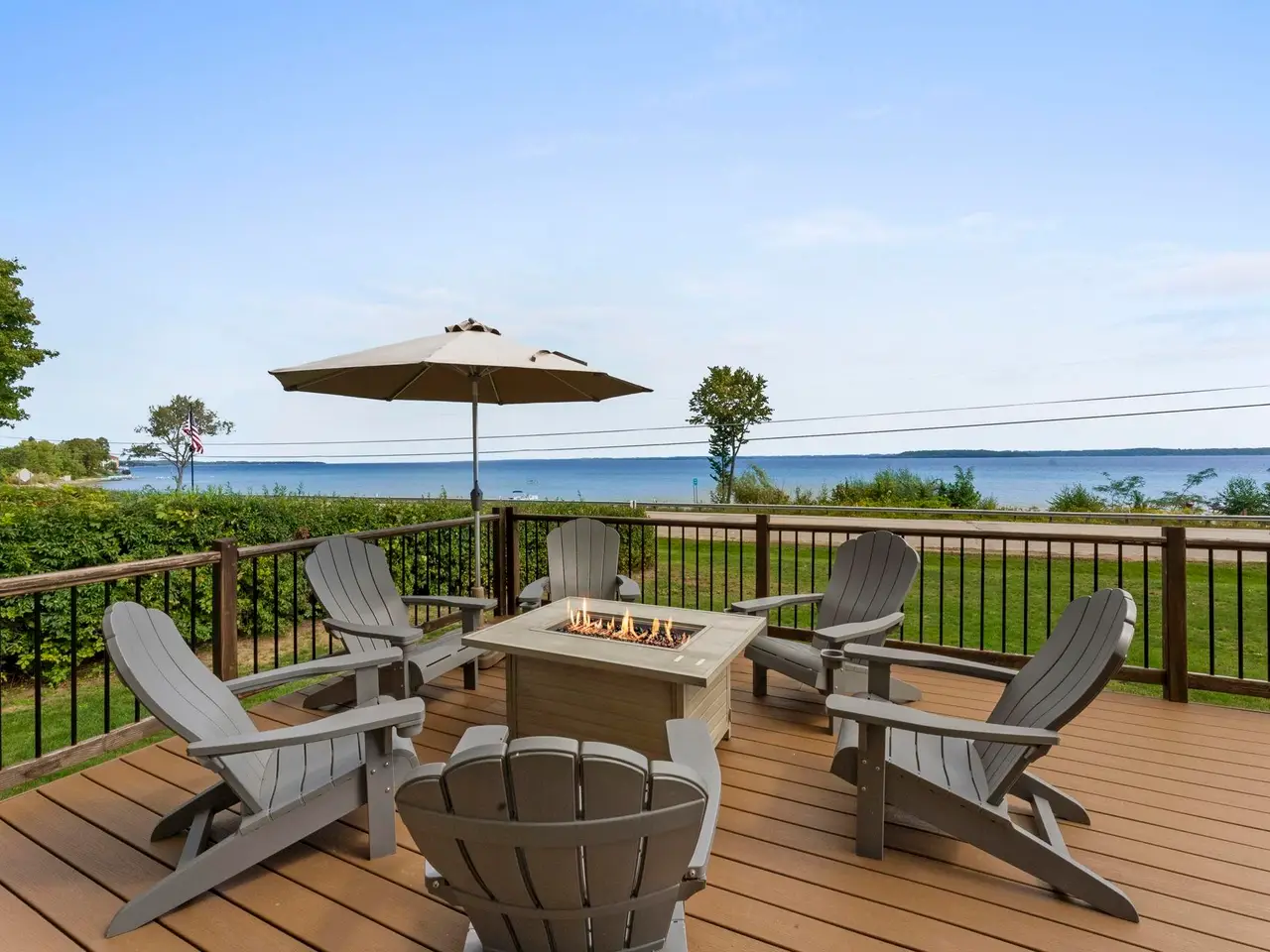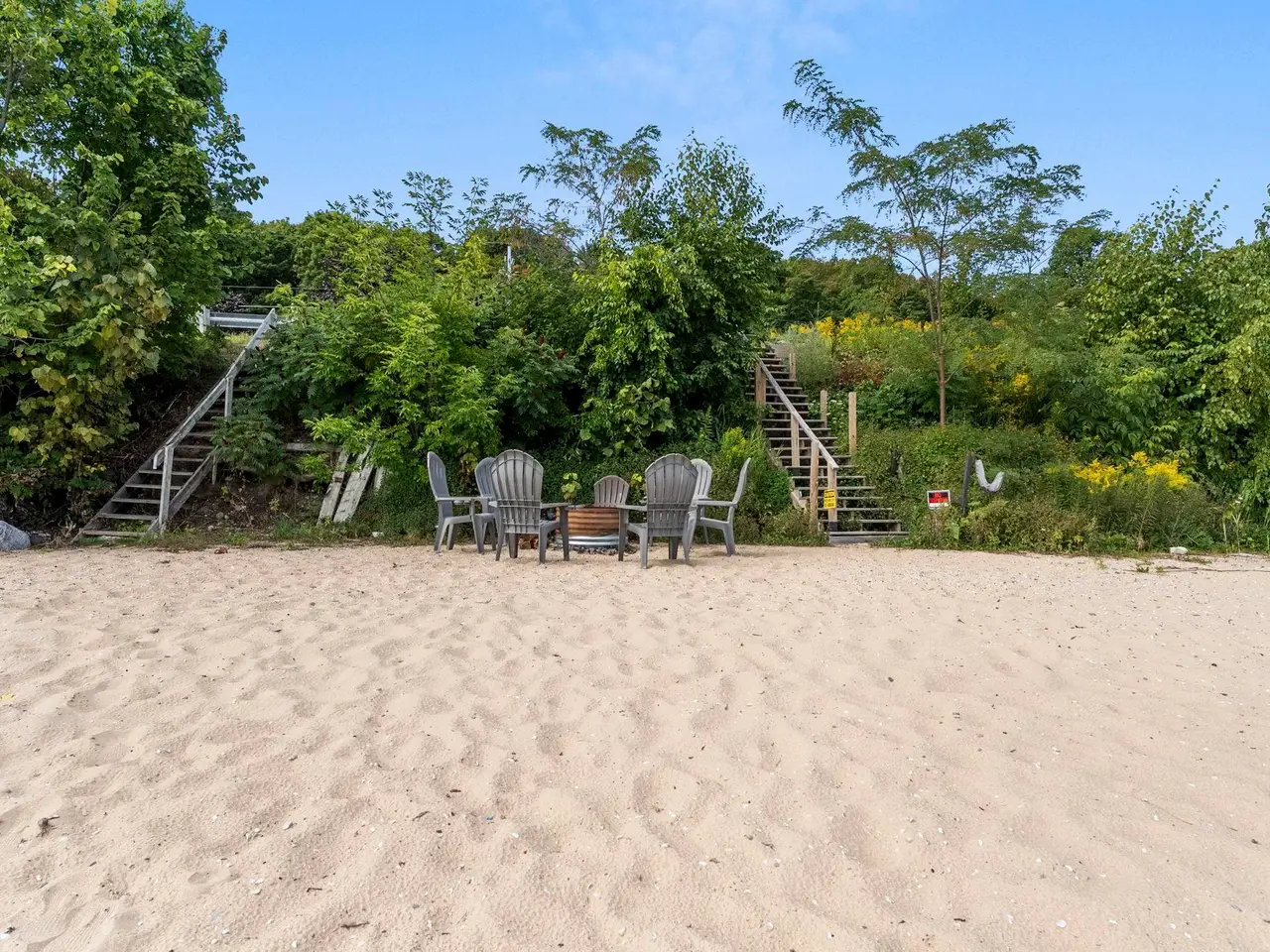 100 feet of private sandy frontage on West Bay with breathtaking views! Ideally positioned between Suttons Bay and Traverse City, this beautifully styled four-bedroom, two-bath retreat offers over 2,000 square feet of light-filled living space. Inside, crisp white interiors pair seamlessly with hardwood and luxury vinyl plank floors, creating a timeless coastal ambiance perfectly suited for lakefront living. The newly remodeled primary suite bathroom showcases a spa-like walk-in shower and double vanity, while the lower level features a second newly remodeled spa bathroom with its own walk-in shower. Outdoors, evenings are best spent unwinding on the expansive sandy beach, taking in the sweeping views of Power Island and the ever-changing shades of blue across the crystal waters of West Bay. Designed and decorated with relaxed elegance, this home is the quintessential lake house -- a perfect blend of comfort, style, and waterfront charm.