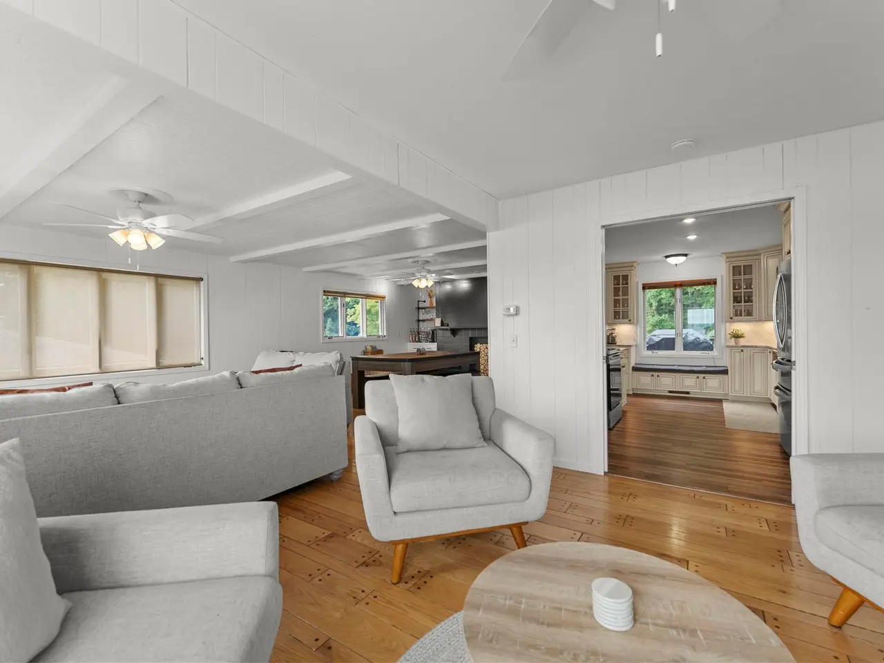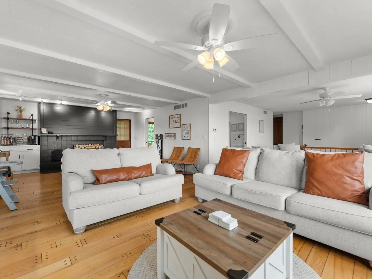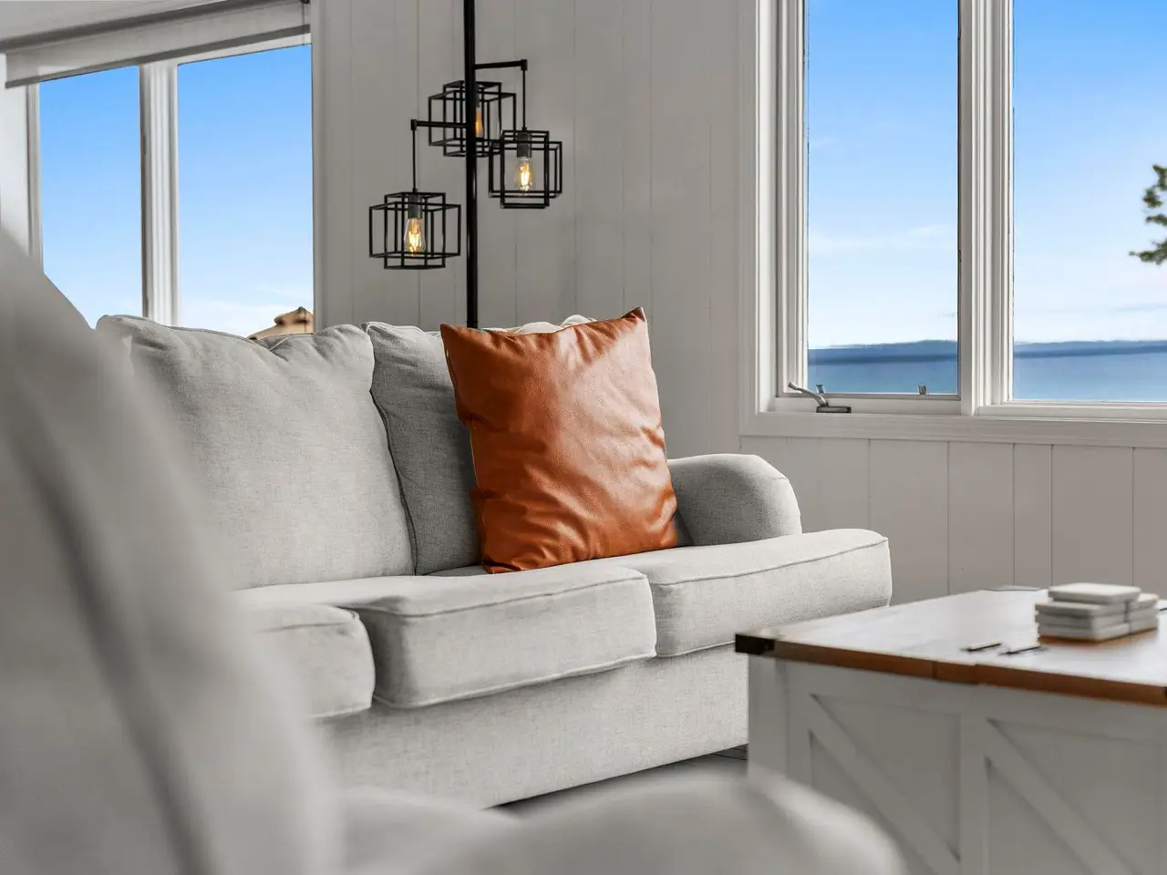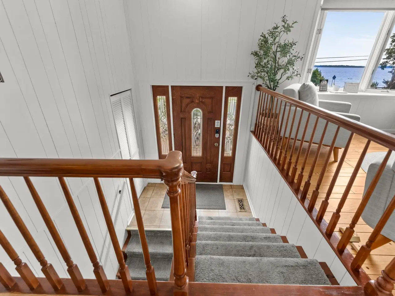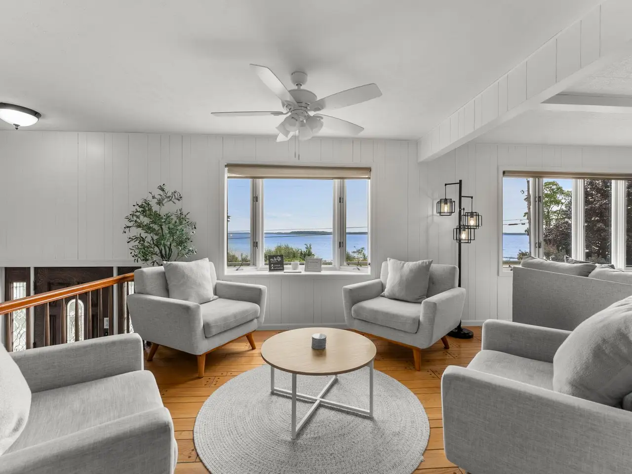 100 feet of private sandy frontage on West Bay with breathtaking views! Ideally positioned between Suttons Bay and Traverse City, this beautifully styled four-bedroom, two-bath retreat offers over 2,000 square feet of light-filled living space. Inside, crisp white interiors pair seamlessly with hardwood and luxury vinyl plank floors, creating a timeless coastal ambiance perfectly suited for lakefront living. The newly remodeled primary suite bathroom showcases a spa-like walk-in shower and double vanity, while the lower level features a second newly remodeled spa bathroom with its own walk-in shower. Outdoors, evenings are best spent unwinding on the expansive sandy beach, taking in the sweeping views of Power Island and the ever-changing shades of blue across the crystal waters of West Bay. Designed and decorated with relaxed elegance, this home is the quintessential lake house -- a perfect blend of comfort, style, and waterfront charm.