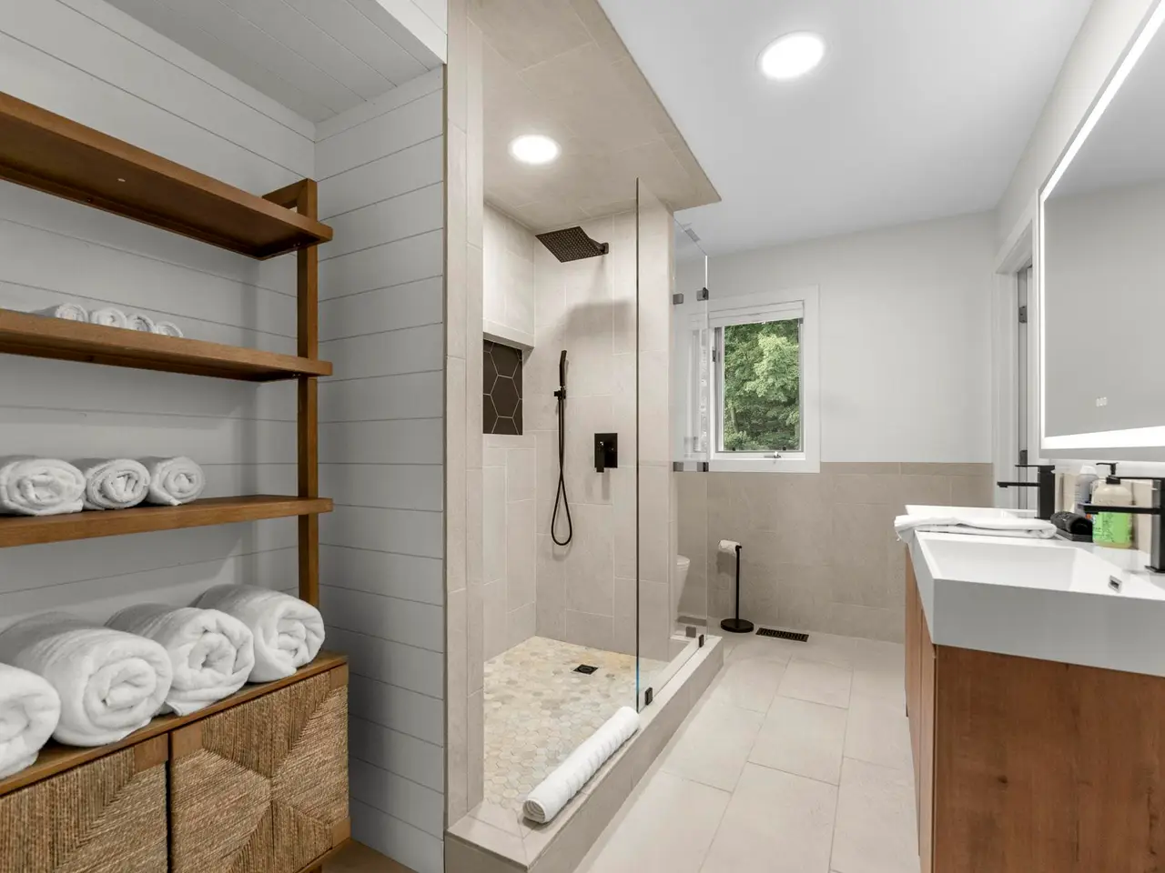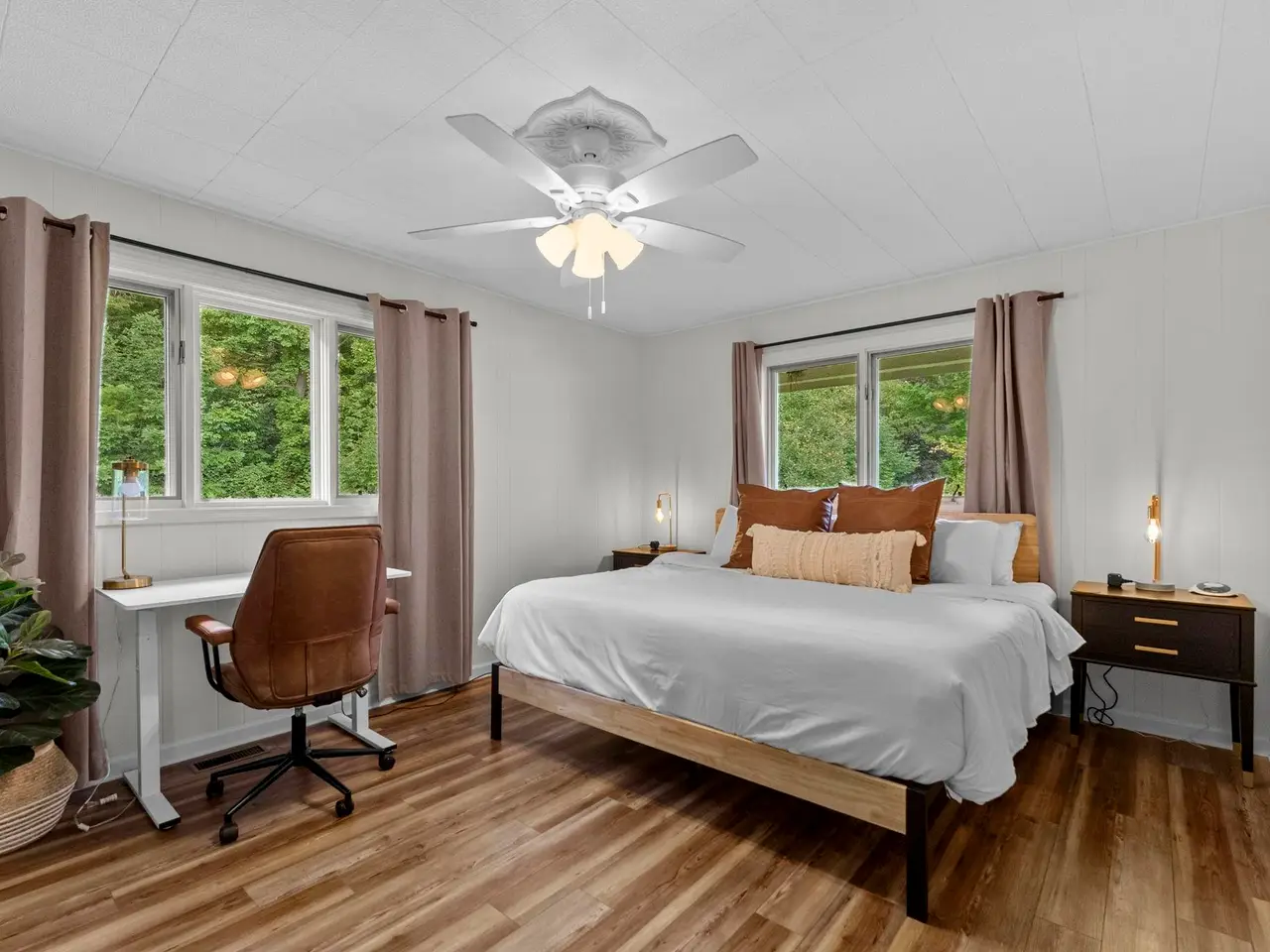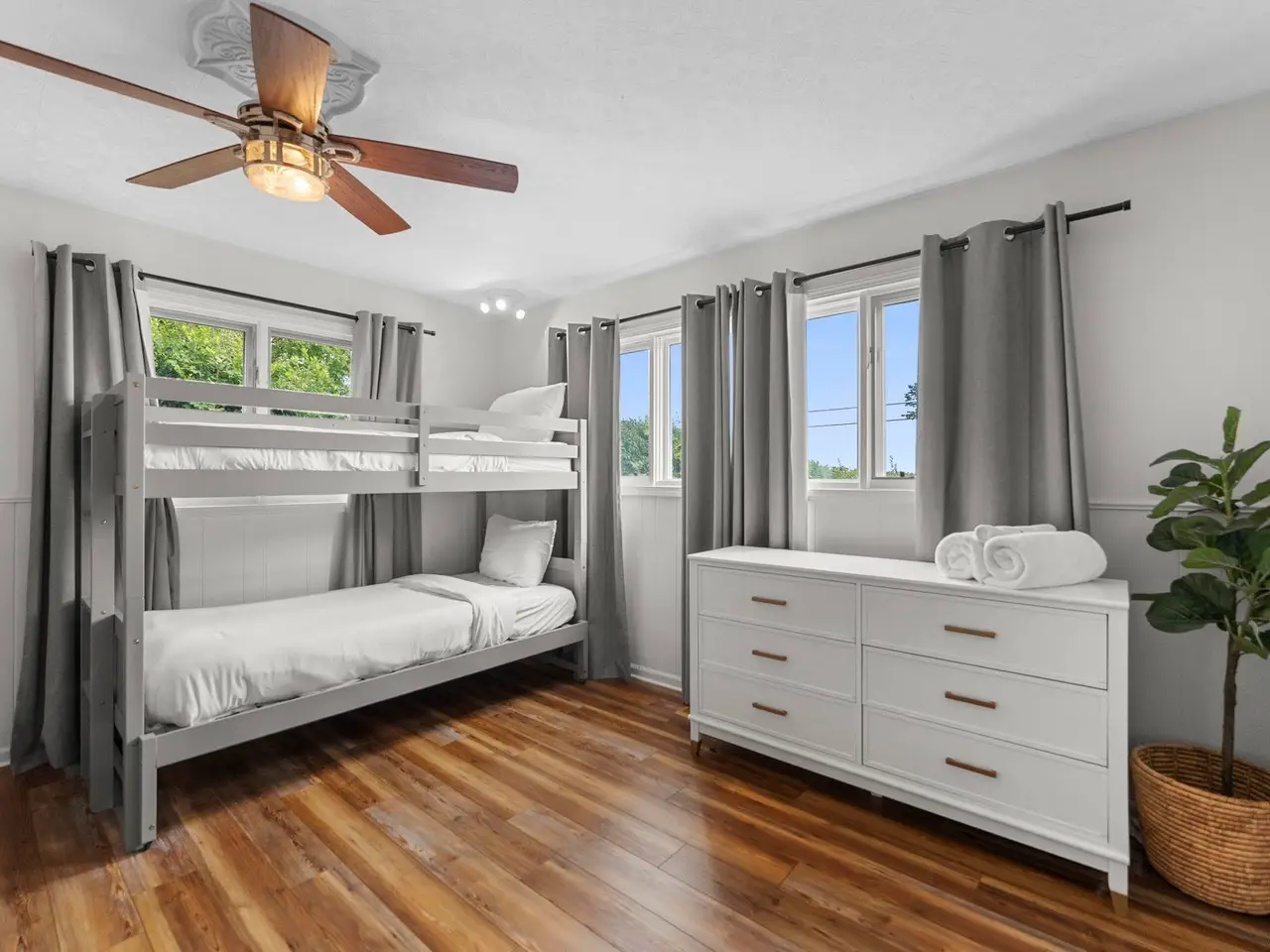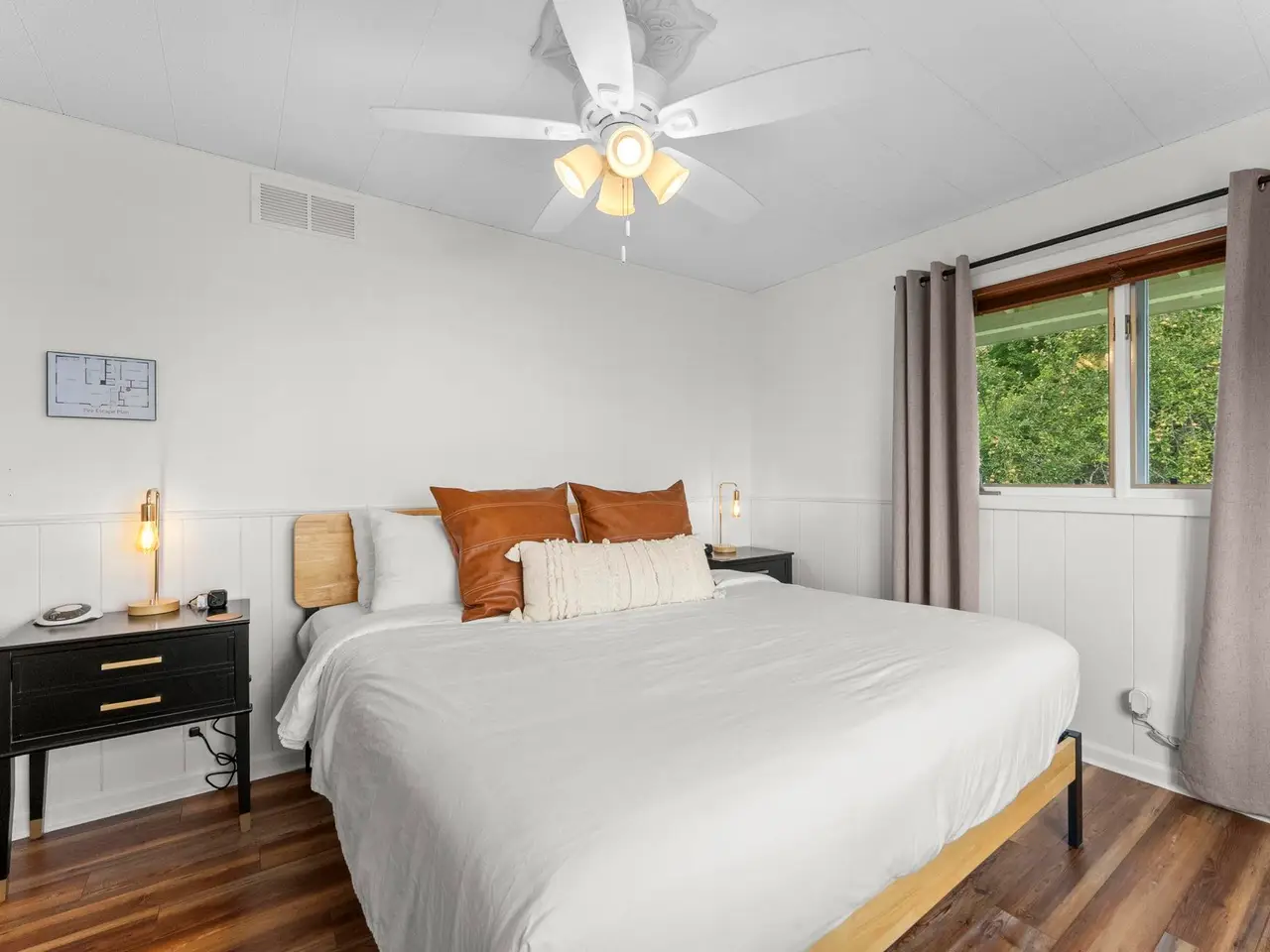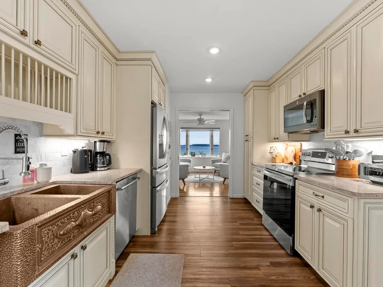 100 feet of private sandy frontage on West Bay with breathtaking views! Ideally positioned between Suttons Bay and Traverse City, this beautifully styled four-bedroom, two-bath retreat offers over 2,000 square feet of light-filled living space. Inside, crisp white interiors pair seamlessly with hardwood and luxury vinyl plank floors, creating a timeless coastal ambiance perfectly suited for lakefront living. The newly remodeled primary suite bathroom showcases a spa-like walk-in shower and double vanity, while the lower level features a second newly remodeled spa bathroom with its own walk-in shower. Outdoors, evenings are best spent unwinding on the expansive sandy beach, taking in the sweeping views of Power Island and the ever-changing shades of blue across the crystal waters of West Bay. Designed and decorated with relaxed elegance, this home is the quintessential lake house -- a perfect blend of comfort, style, and waterfront charm.