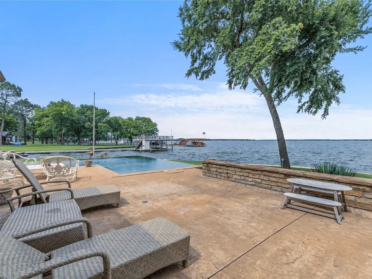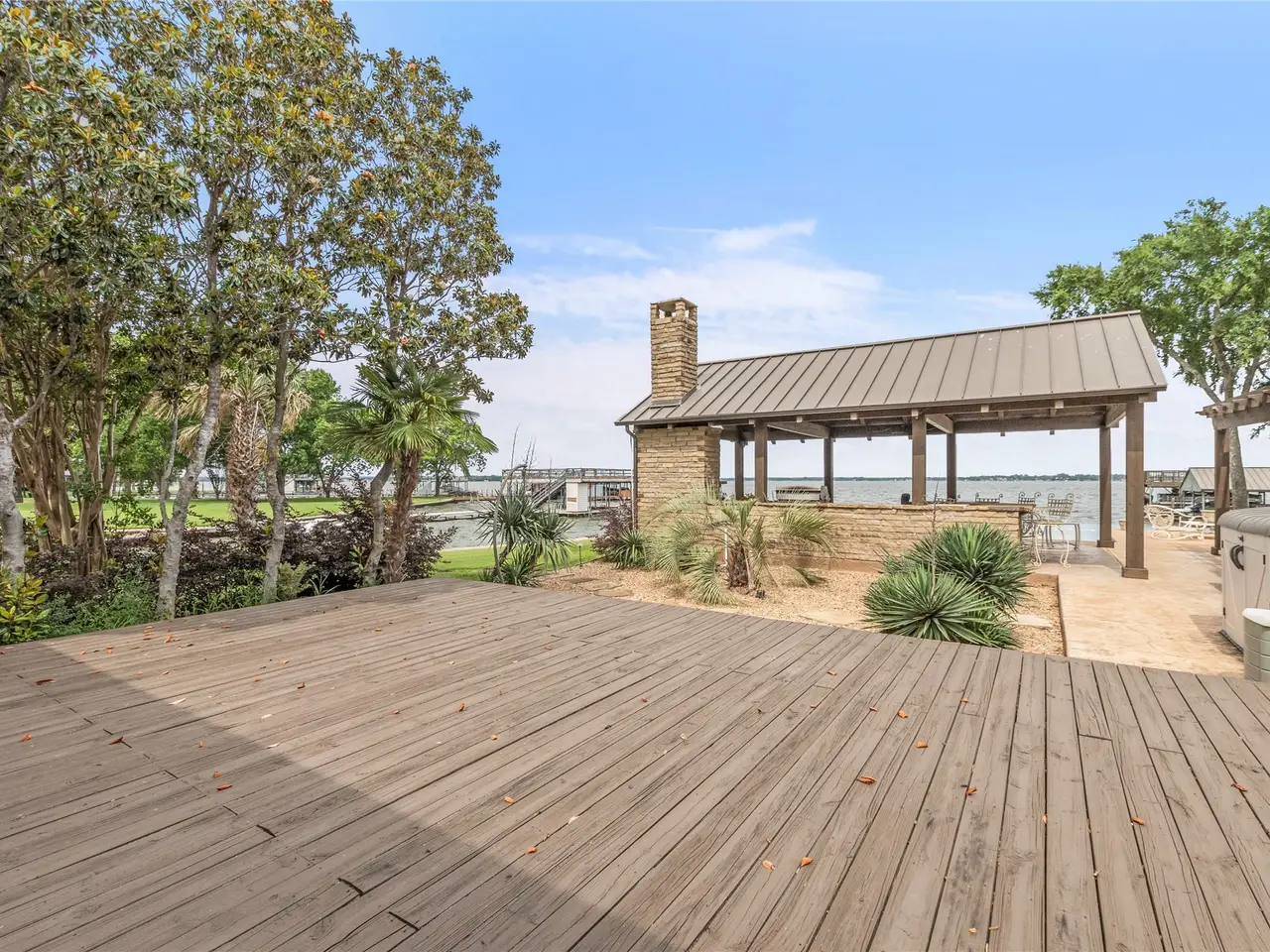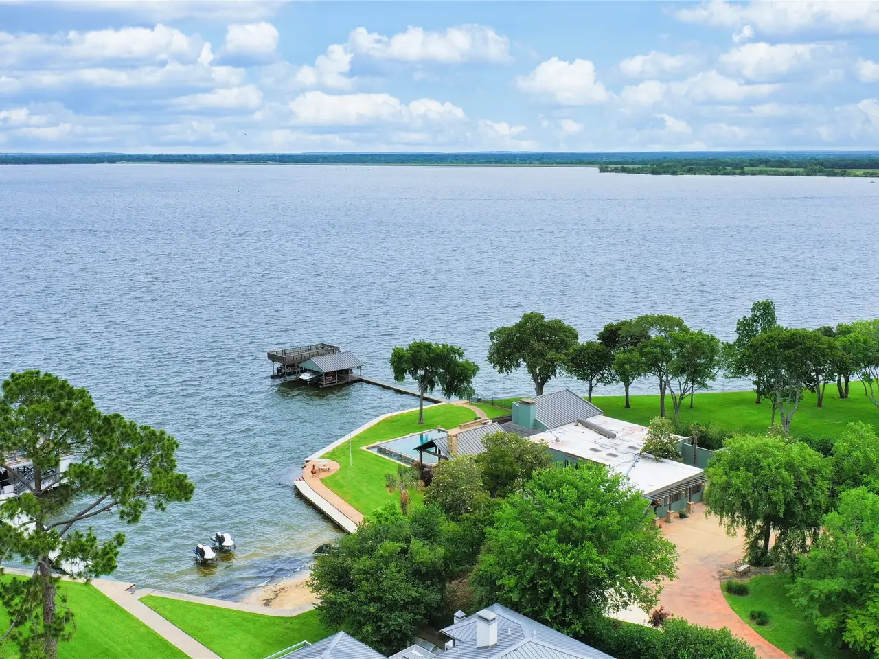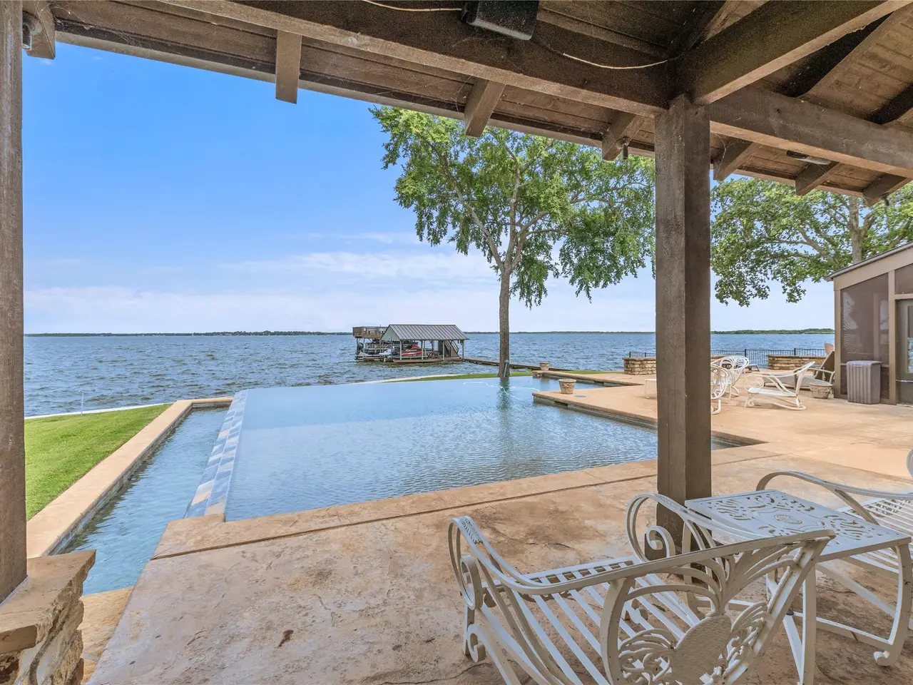 Spectacular resort home on two deep open water peninsula lots with 242 feet of waterfront, shared sandy beach and miles of view. Outdoor paradise with a heated infinity edge pool, cabana with a stone bar and a cook center, you will not want to miss cozying up to the large wood burning fireplace on chilly days. With eight bedrooms and two huge living areas this home offers room to spread out and entertain a crowd of family and friends. Living room with soaring ceiling, stone gas fireplace and two dining areas. Second living area with room for game tables and another TV. Cooks will love the gas cooktop and double ovens in the kitchen plus there is a separate wet bar. The huge screen porch is sure to be a favorite place to enjoy year round outdoor living and southern breezes coming in off the water. Boathouse with two full boatslips and slip for two PWCs. Commercial TPO metal roof 2022, water filtration system, two gas tankless water heaters, storage garage. Includes furnishings with some exclusions.