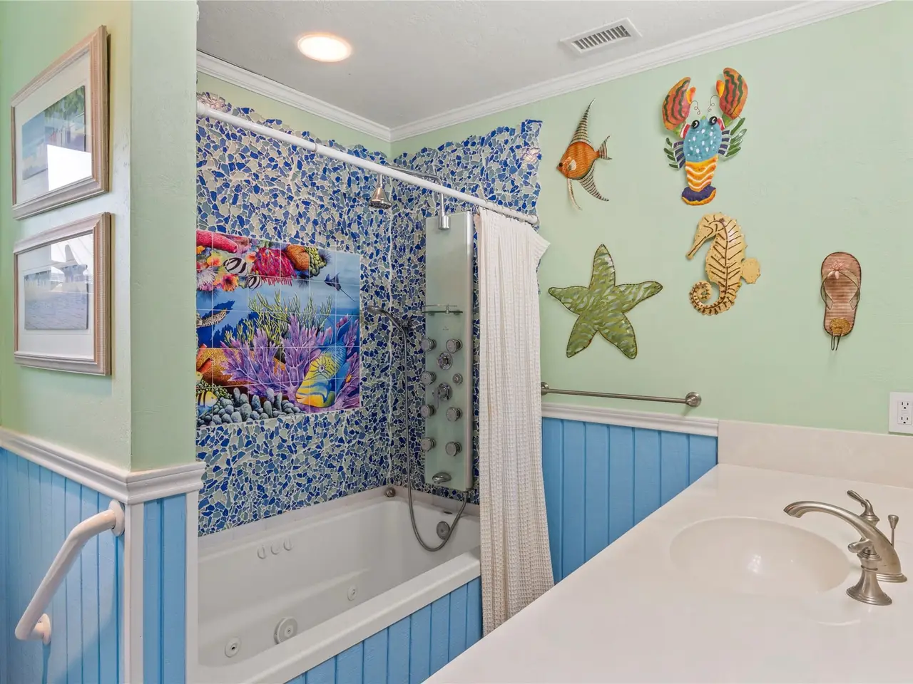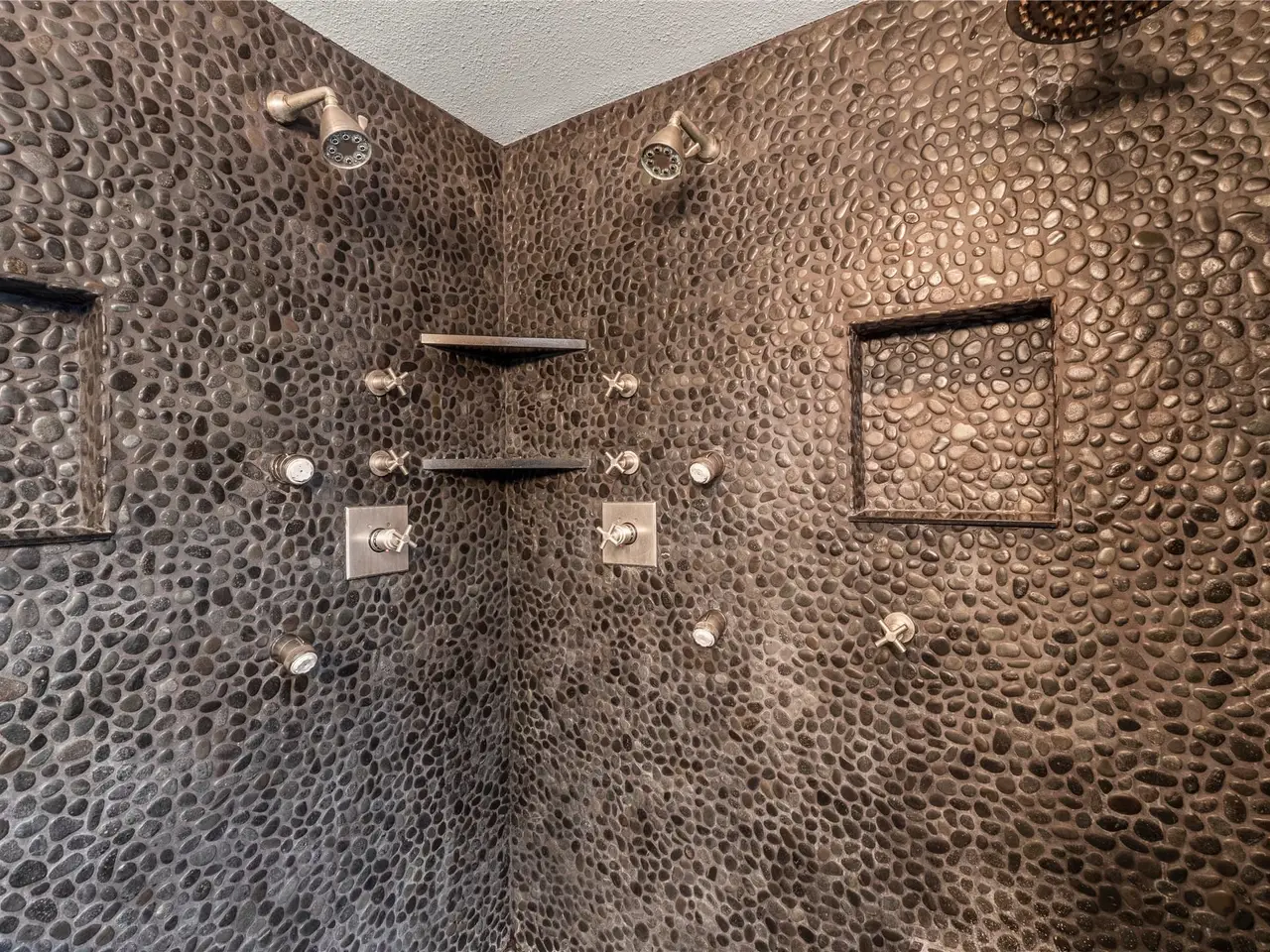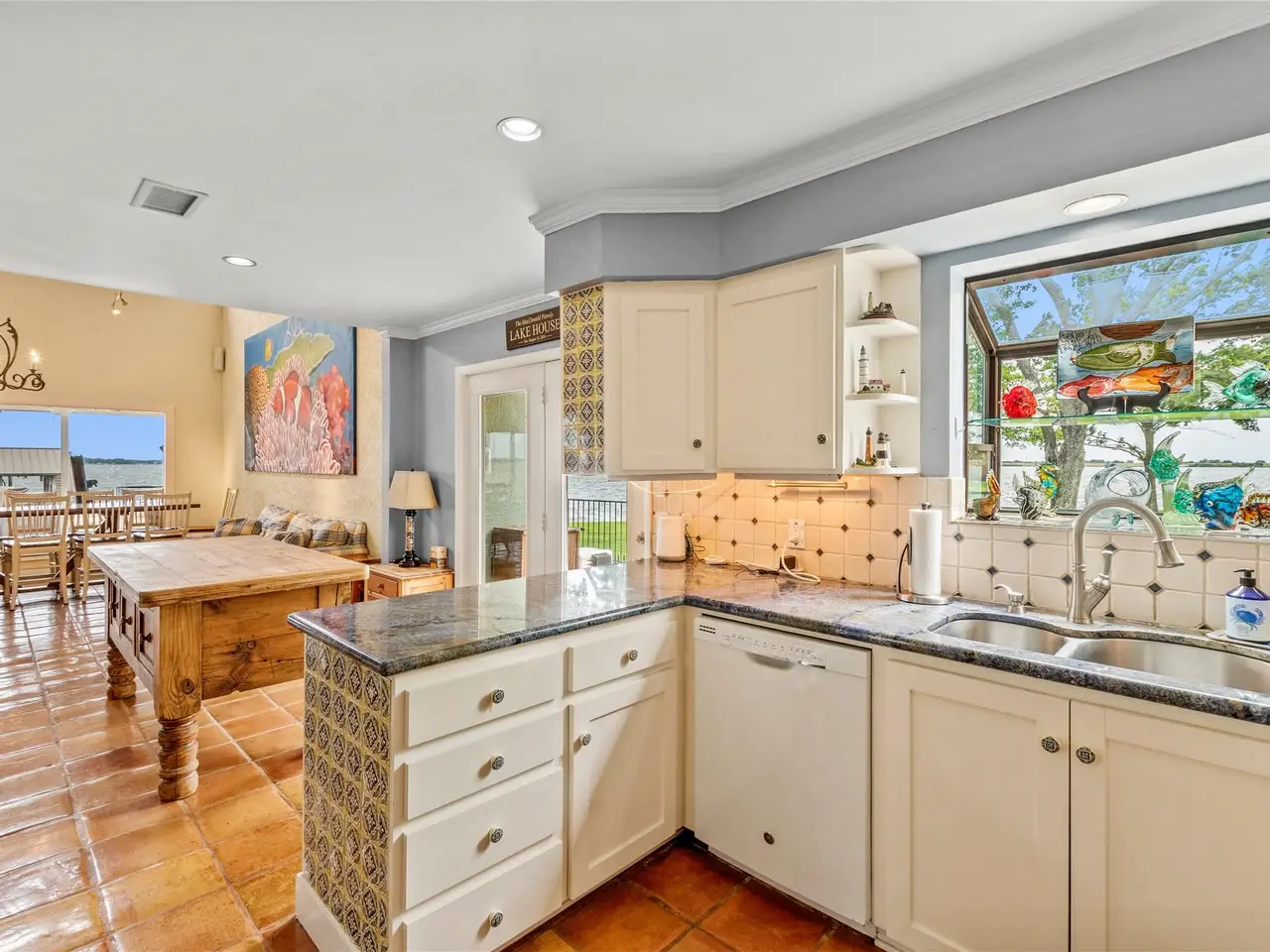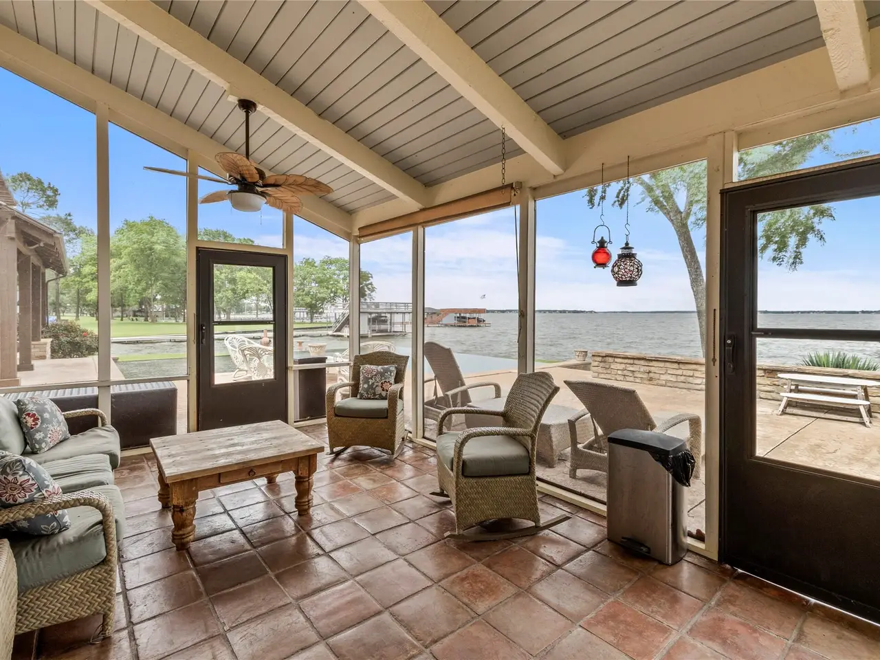 Spectacular resort home on two deep open water peninsula lots with 242 feet of waterfront, shared sandy beach and miles of view. Outdoor paradise with a heated infinity edge pool, cabana with a stone bar and a cook center, you will not want to miss cozying up to the large wood burning fireplace on chilly days. With eight bedrooms and two huge living areas this home offers room to spread out and entertain a crowd of family and friends. Living room with soaring ceiling, stone gas fireplace and two dining areas. Second living area with room for game tables and another TV. Cooks will love the gas cooktop and double ovens in the kitchen plus there is a separate wet bar. The huge screen porch is sure to be a favorite place to enjoy year round outdoor living and southern breezes coming in off the water. Boathouse with two full boatslips and slip for two PWCs. Commercial TPO metal roof 2022, water filtration system, two gas tankless water heaters, storage garage. Includes furnishings with some exclusions.