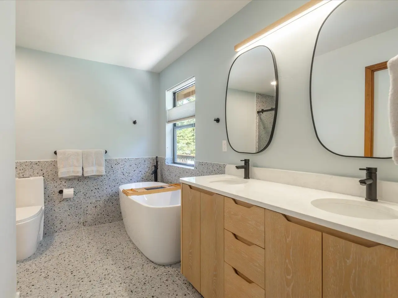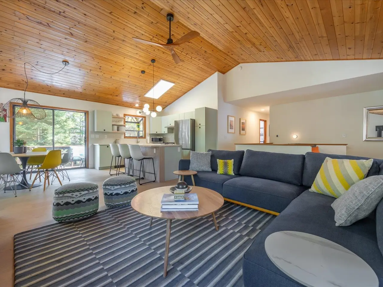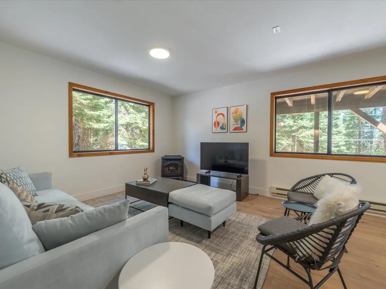 Nestled on a quiet cul-de-sac in the desirable Prosser Lakeview Estates, this beautiful 3-bedroom, 3-bath home with a two-car garage offers warmth, charm, and functionality. The south-facing driveway provides easy year-round access, while thoughtful design delivers both comfort and versatility with two inviting family rooms plus a bonus room, ideal for gatherings, work, or play. The main level showcases vaulted ceilings, bay windows, and an open flow to expansive decks, perfect for soaking in the sunshine or entertaining. Here you’ll also find the primary suite, a guest bedroom, and a second bath. The lower-level retreat includes a flexible family room with wet bar, an office/bonus room, and an additional guest bedroom and bathroom. Featuring new hardwood floors, modern kitchen and baths, newer appliances, furnace, and water heater, this home is move-in ready. With easy access to Prosser Reservoir, endless miles of trails, and the historic charm of downtown Truckee, this property is the perfect balance of recreation, relaxation, and community.