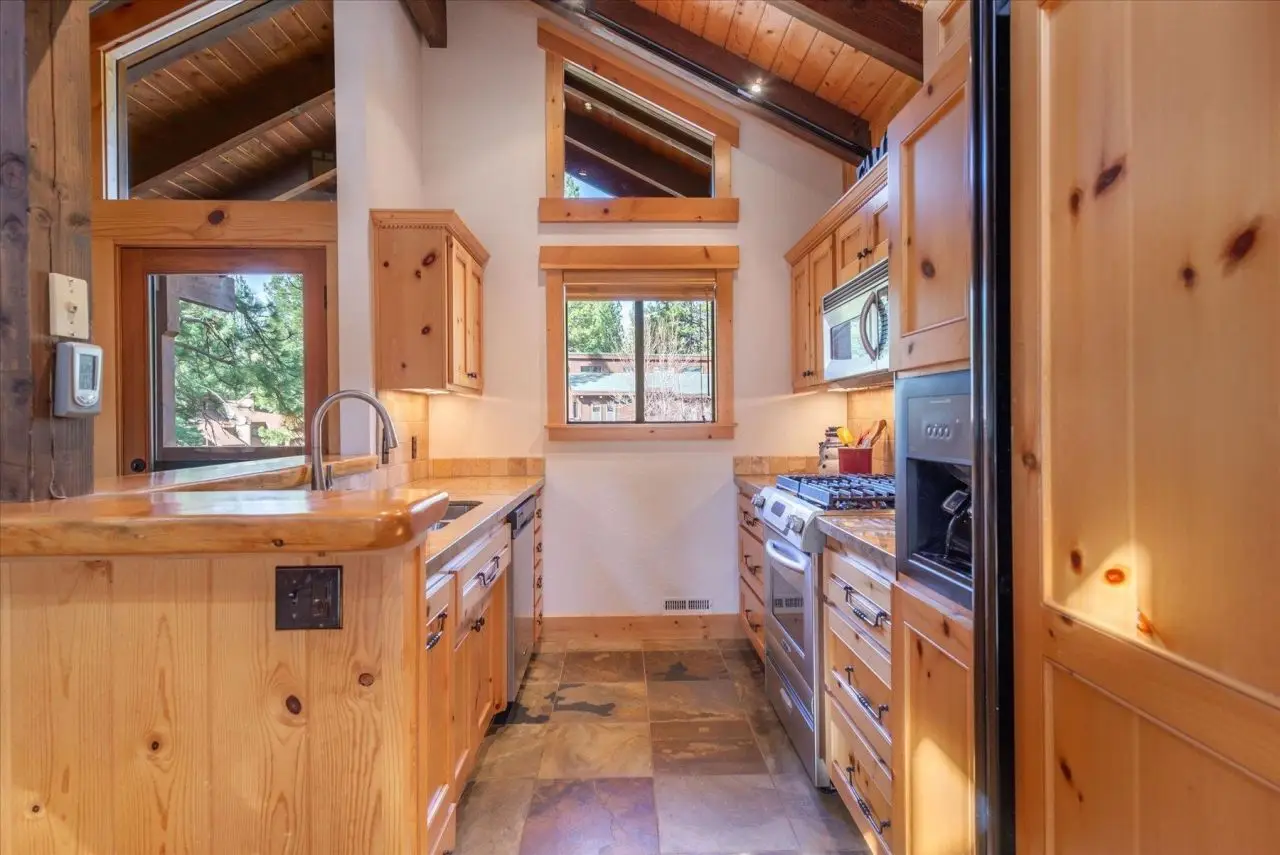 Delightfully nestled adjacent to a private greenbelt setting, this lovely Northstar retreat located at 1329 Mill Camp brings traditional mountain ambiance and a cozy, relaxing vibe! Designed with rustic appeal, enjoy charming beam ceilings accenting a lovely wood burning fireplace with custom granite surround, an open kitchen design overlooking the great room and cozy dining area. Enjoy the covered front deck with treetop views! There's wonderful indoor-outdoor living - the expansive rear and wrap around deck brings private views of the forest setting and the perfect, sunny exposure for dining and relaxing during summer! The primary bedroom, located on the main living level, offers pretty views; the crisply designed bathroom with heated floors offers a large jetted tub with treetop views - relax in luxury! Family and friends will enjoy the lower level family room, easy access to the covered deck, private setting and BIG outdoor spa. Two bedrooms and a European style bathroom, large laundry room and plenty of cabinetry brings easy living. A finished storage area is perfect for your seasonal gear and holiday decor! Enjoy the winter benefits of a nearly flat driveway, large garage (with dog wash area!) and spacious entry. Heading to the Village? Simply call Northstar Transportation and hop on the bus - life is easy and convenient!