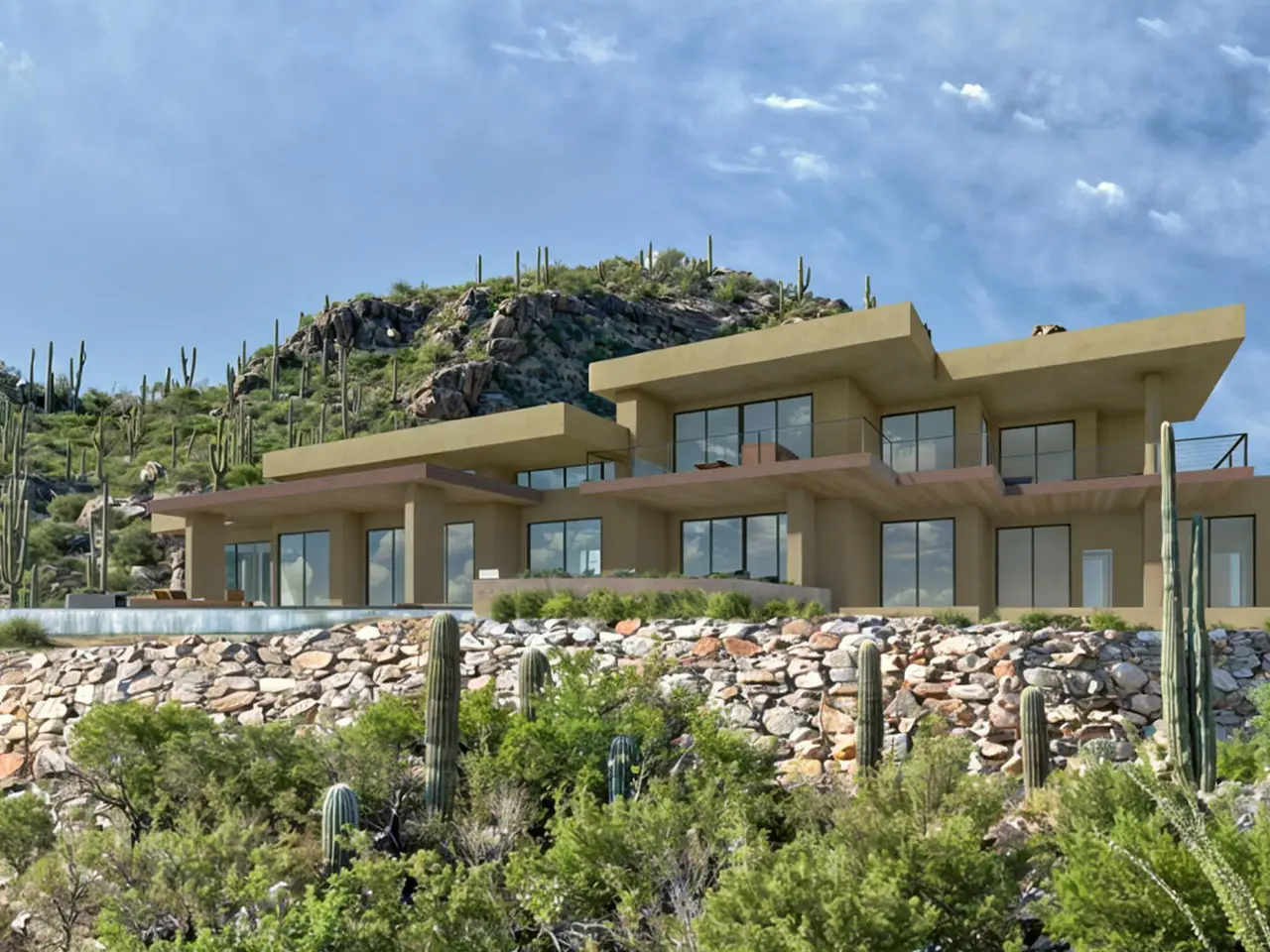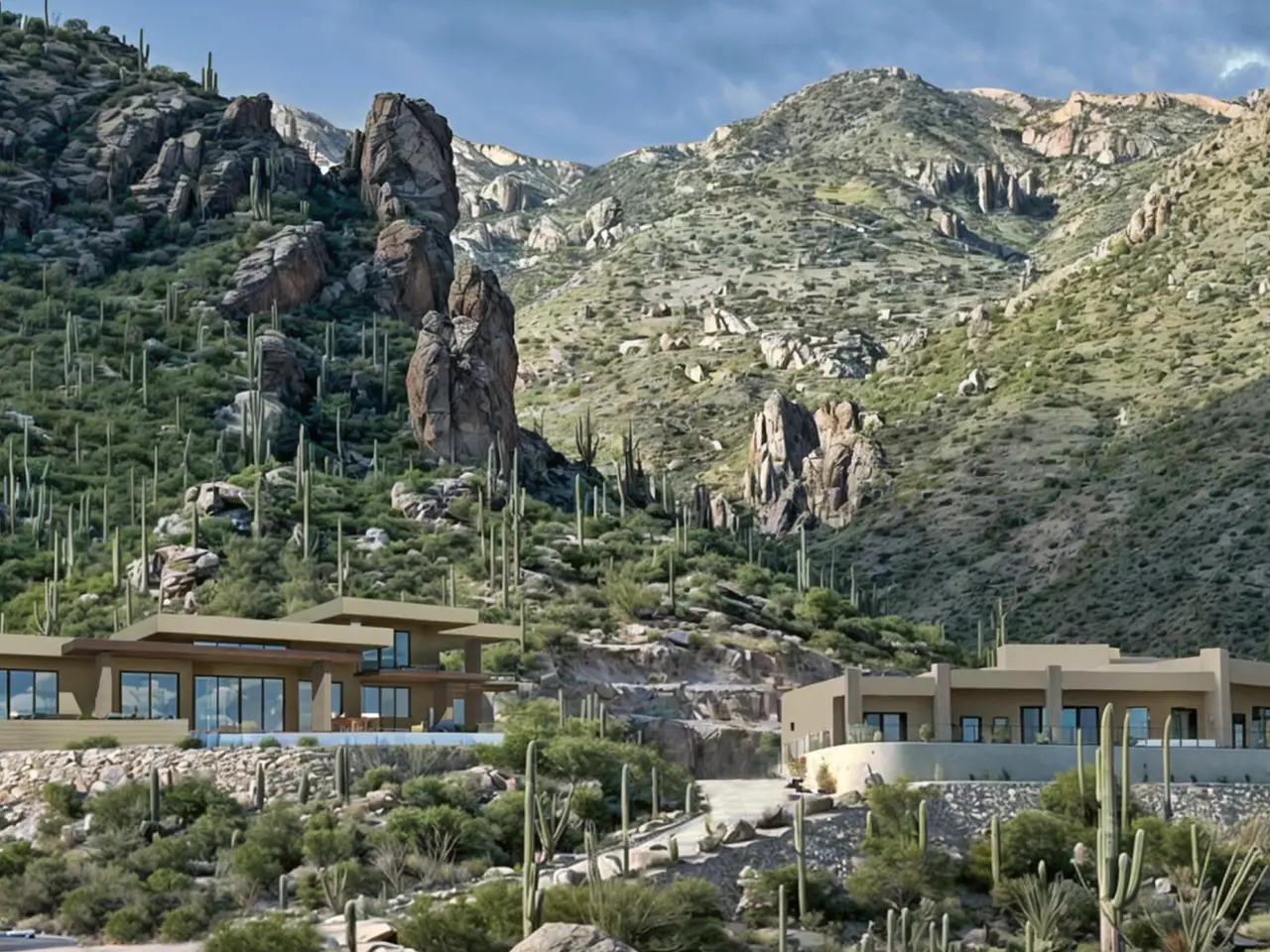 Stunning, exemplary ''modern'' masterpiece high above the city in brand new, gated Paradise Canyon at Ventana. Stellar, reach out and touch the city, mountains, sunrise and sunset views from every window in this Kevin Howard gloriously designed home, built by Master Tucson homebuilder Albert Moussa, PhD., Civil Engineer. Located on a 1.26 acre lot near the edge of Ventana Canyon, this 8,000 sq. ft., 6 bedroom, 6 full baths with 3 half baths, world-class home on a world-class lot with world-class contemporary features can be customized to the buyer's taste at this juncture. Family room, great room, soaring ceilings, walls of windows, separate study/office plus upstairs game room with kitchenette, dining and entertainment areas and 6th bedroom. Outdoor patios and rooms, and sala.