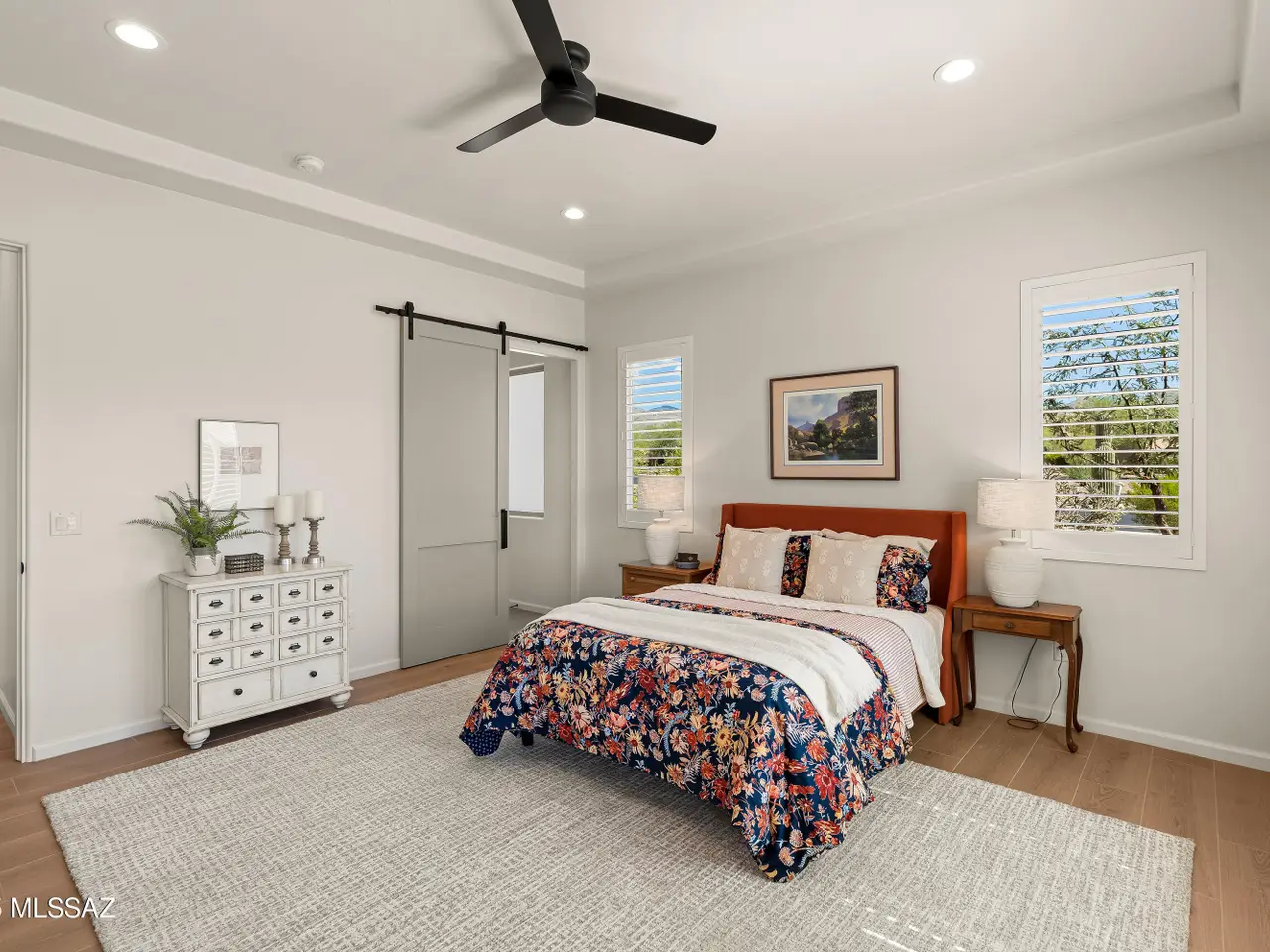 With views of the Rincon Mountains outside and luxurious finishes inside, this stunning Tanque Verde Valley residence awaits you. This impressive 4- bedroom, 3.5 bathroom single-family home in the gated Rancho Soldados community blends the serenity of our Sonoran Desert with the comfort and style of a truly custom home. The spacious layout features soaring ceilings, light-filled interiors, and a split floor plan for added privacy. In addition to the bedrooms, you'll find both an office and a bonus room, perfect for working from home or creating flexible living spaces. The gourmet kitchen is a true centerpiece, complete with a walk-in pantry, wine fridge and warm yet modern finishes. The primary suite is a retreat with a luxurious bathroom featuring a soaking tub, separate shower and dual vanities. Step outside to enjoy a beautifully designed backyard with artificial grass, custom fire pit, paver patios, and a handcrafted metal fence with trellis panels- ideal for both relaxing and entertaining. Situated on nearly an acre, the property also includes a 3-car garage, providing ample space for parking and storage. This home combines thoughtful design, functionality, and magnificent views to create the perfect retreat.