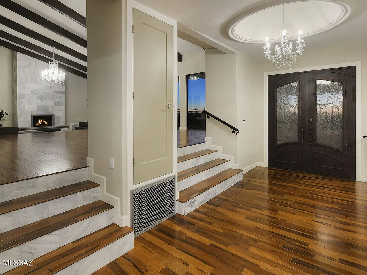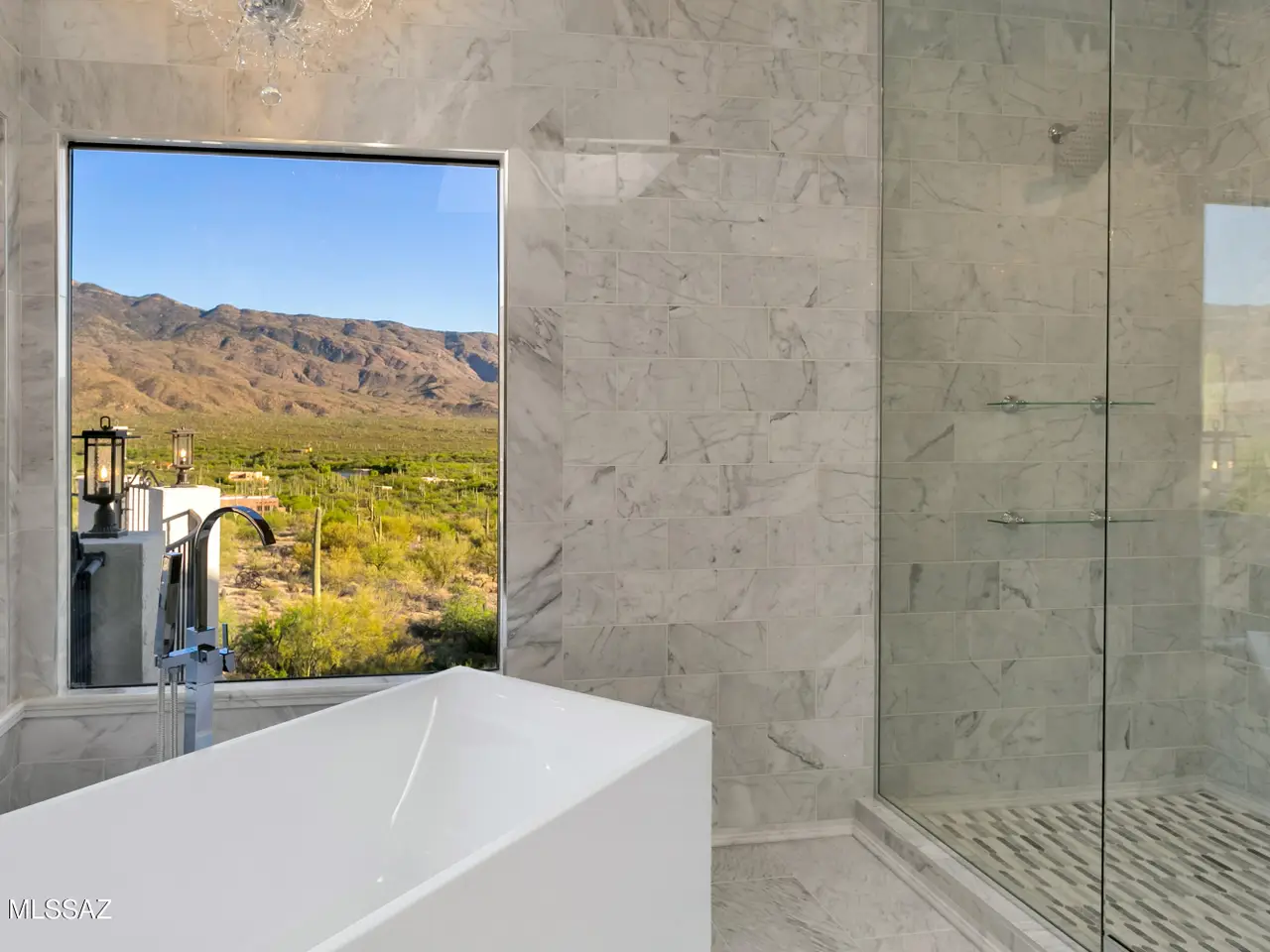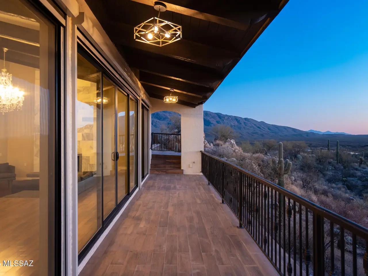 Panoramic views of mtn, city & Tanque Verde valley beckon through walls of windows adorning this luxurious home beautifully set on 7.22 hillside acres in the heart of La Cebadilla Estates. Gleaming pecan wood floors, etched marble FP, fabulous kitchen with 48-inch dual fuel range, double ovens, 2 DW, separate column refrigerator/freezer, oversized island w/bar seating, solid wood cabinets & casual dining w/jaw-dropping views. Full remodel also included luxe baths throughout; split plan offers romantic owner's suite w/FP, city lights & ''wow'' spa-like bath w/soaking tub & pool access; the lower level is great entertaining or kid hang-out space w/exercise rm, wet bar, potential media room. All new exterior decking in front & bath for 2053 covered outdoor living enjoyment.