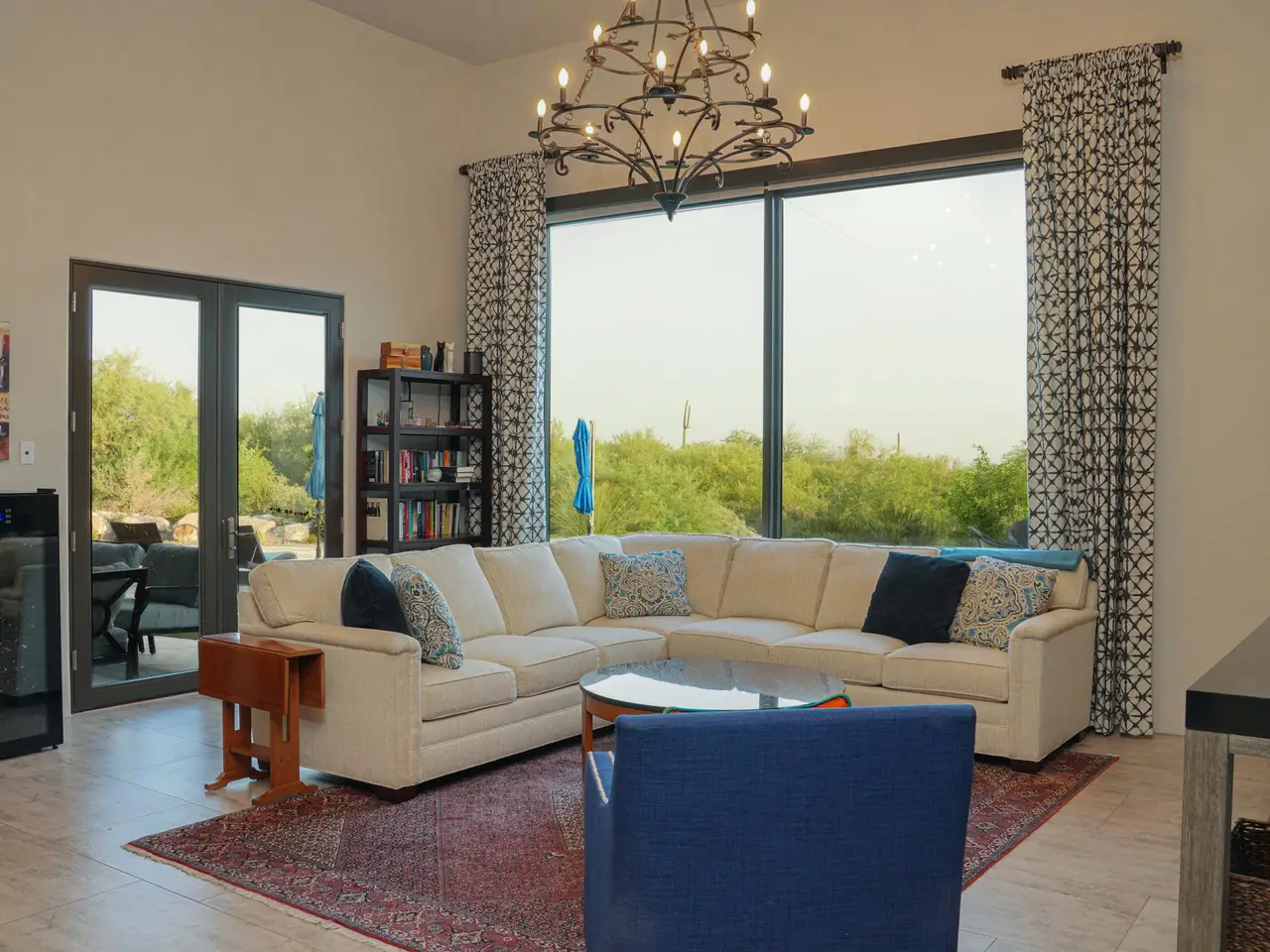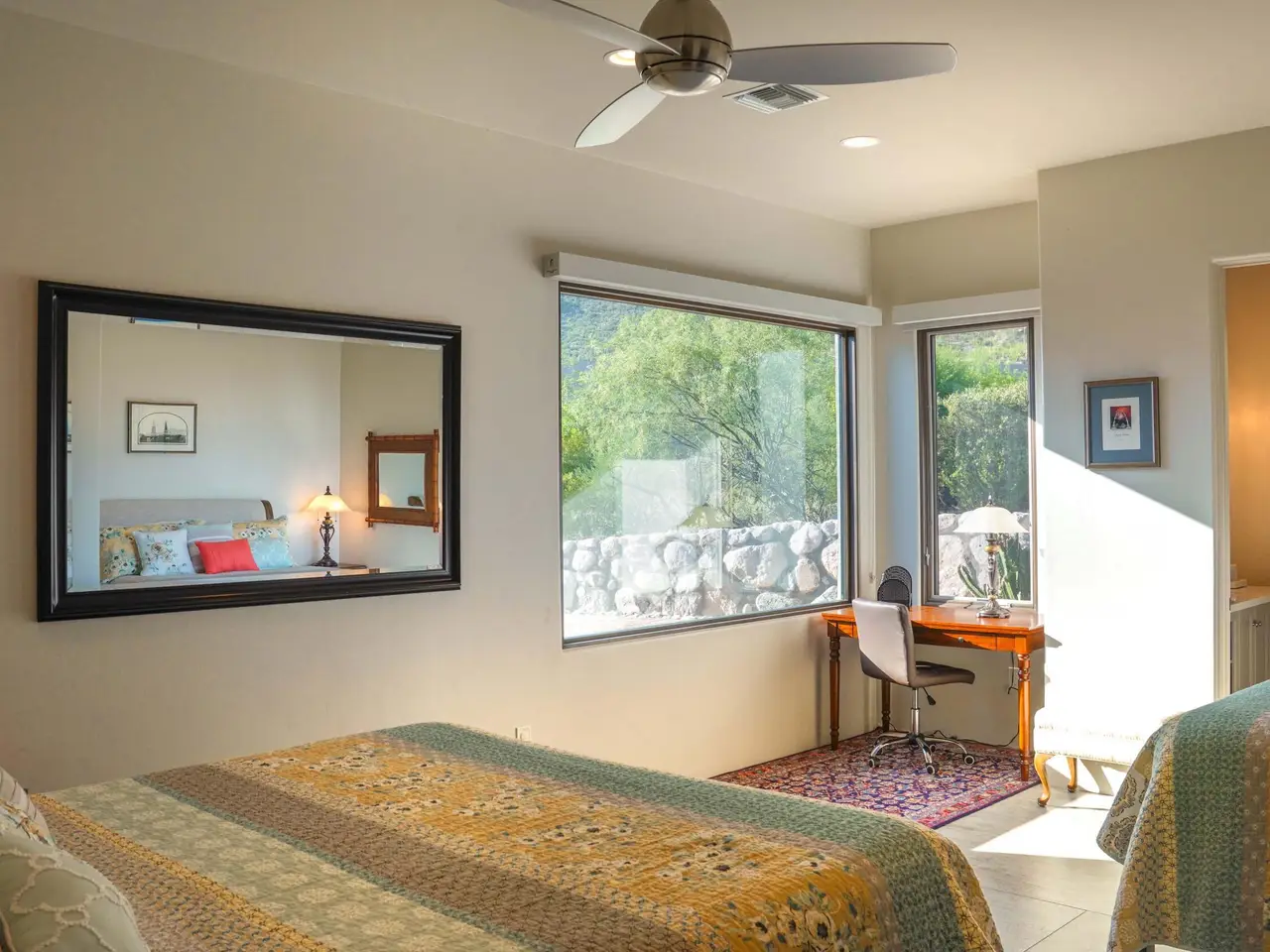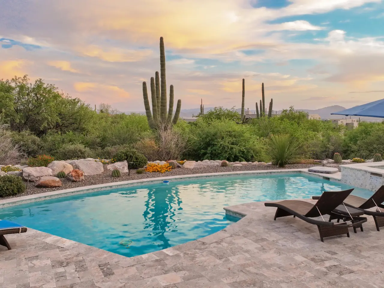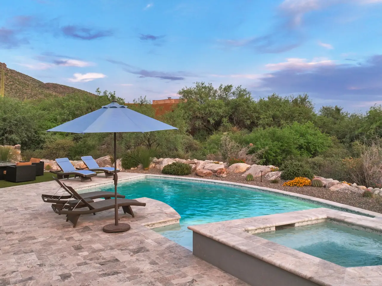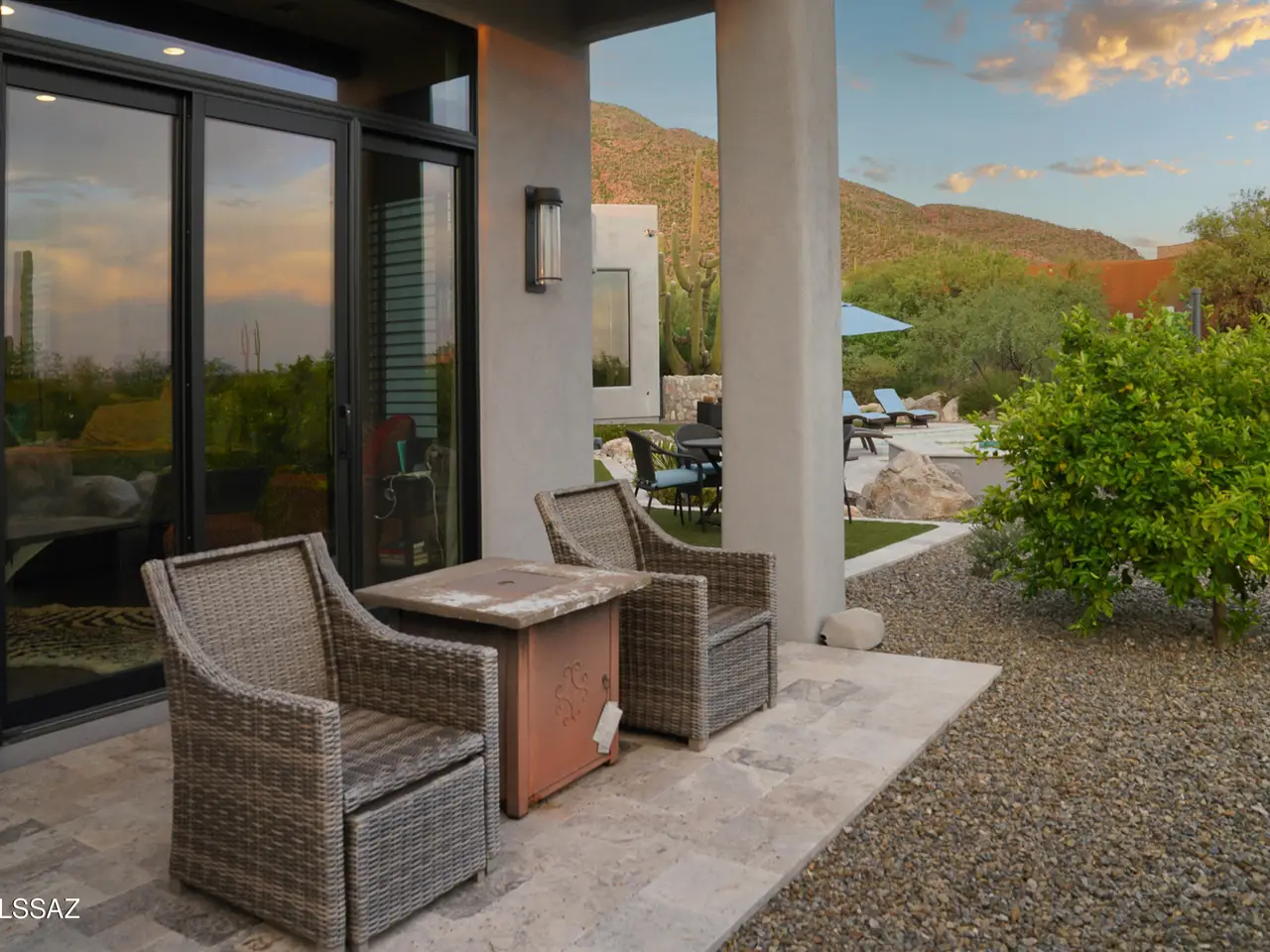 Modern Elegance Meets Desert Serenity in Prestigious Pima Canyon! Nestled on 1.2 private acres, this 5,805-sqft custom residence masterfully blends sleek modern architecture with timeless desert sophistication. Designed by renowned architect Kevin Howard, the home showcases impeccable craftsmanship, breathtaking views, and an effortless indoor-outdoor lifestyle. From the moment you step through the custom Victory Metal Works iron and glass entry door, you're greeted with soaring style and substance--five spacious ensuite bedrooms, energy-efficient design, a 2021-owned solar photovoltaic system, and three high-efficiency Trane HVAC systems (14-16+ SEER). The resort-style backyard is an entertainer's dream, featuring a sparkling pool and spa, travertine