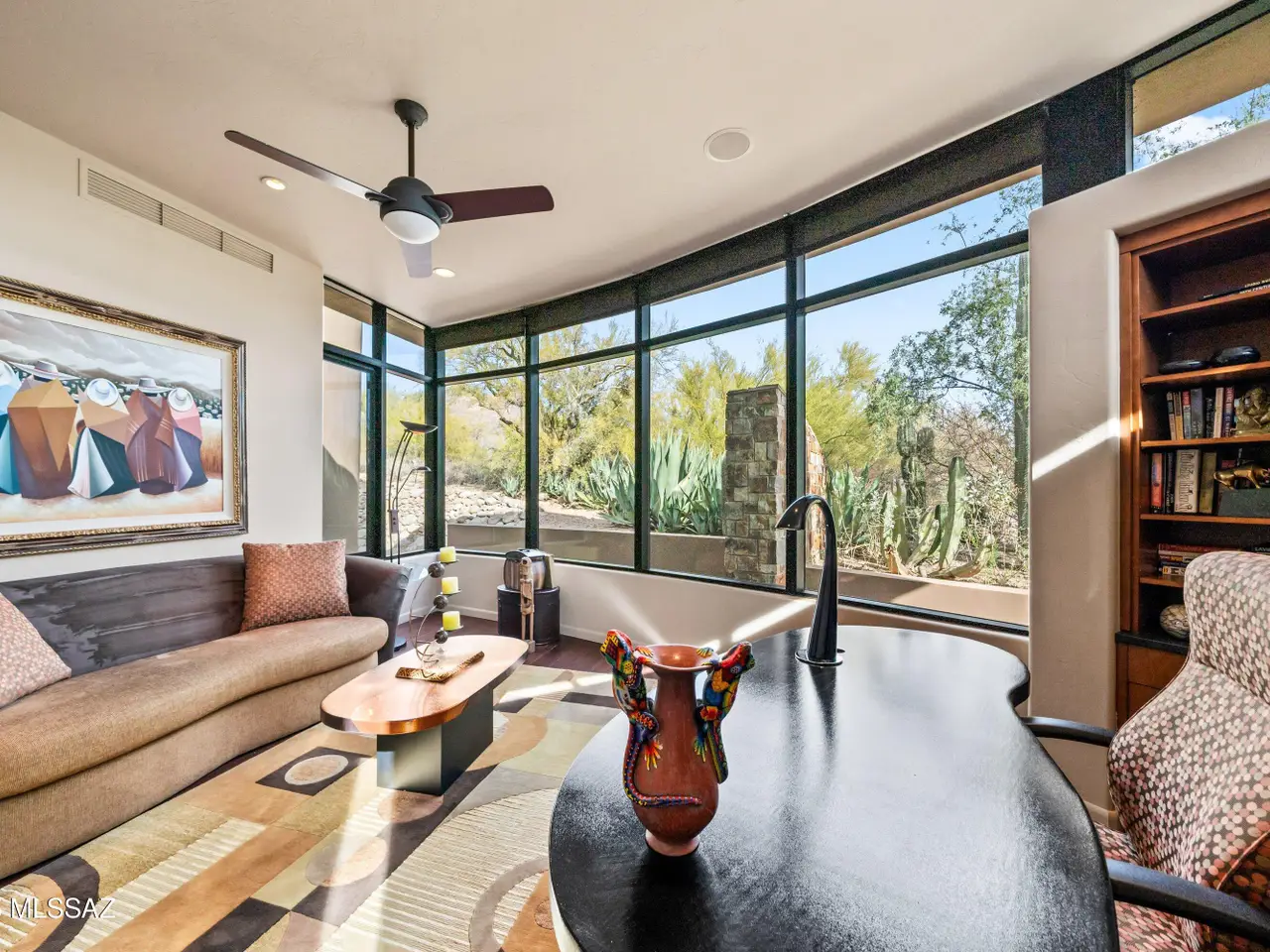 Nestled on a secluded 3-acre lot in the prestigious Pima Canyon Estates, this extraordinary estate, designed by renowned architect Kevin Howard and a proud recipient of the ASID 1st Place Award, offers an unparalleled blend of contemporary elegance and Southwestern charm. Just moments from La Encantada shopping, scenic hiking trails, biking paths, and top-tier golf courses, this masterpiece is built for those who appreciate both luxury and adventure.This home's open-concept layout is a true work of art, featuring stunning Cardinal windows that frame breathtaking views of the Santa Catalina Mountains. Inside, you'll find the finest craftsmanship, with sleek, contemporary cabinetry, exotic honed granite countertops, and a suite of gourmet appliances. Desert Sun Sandstone flooring flows