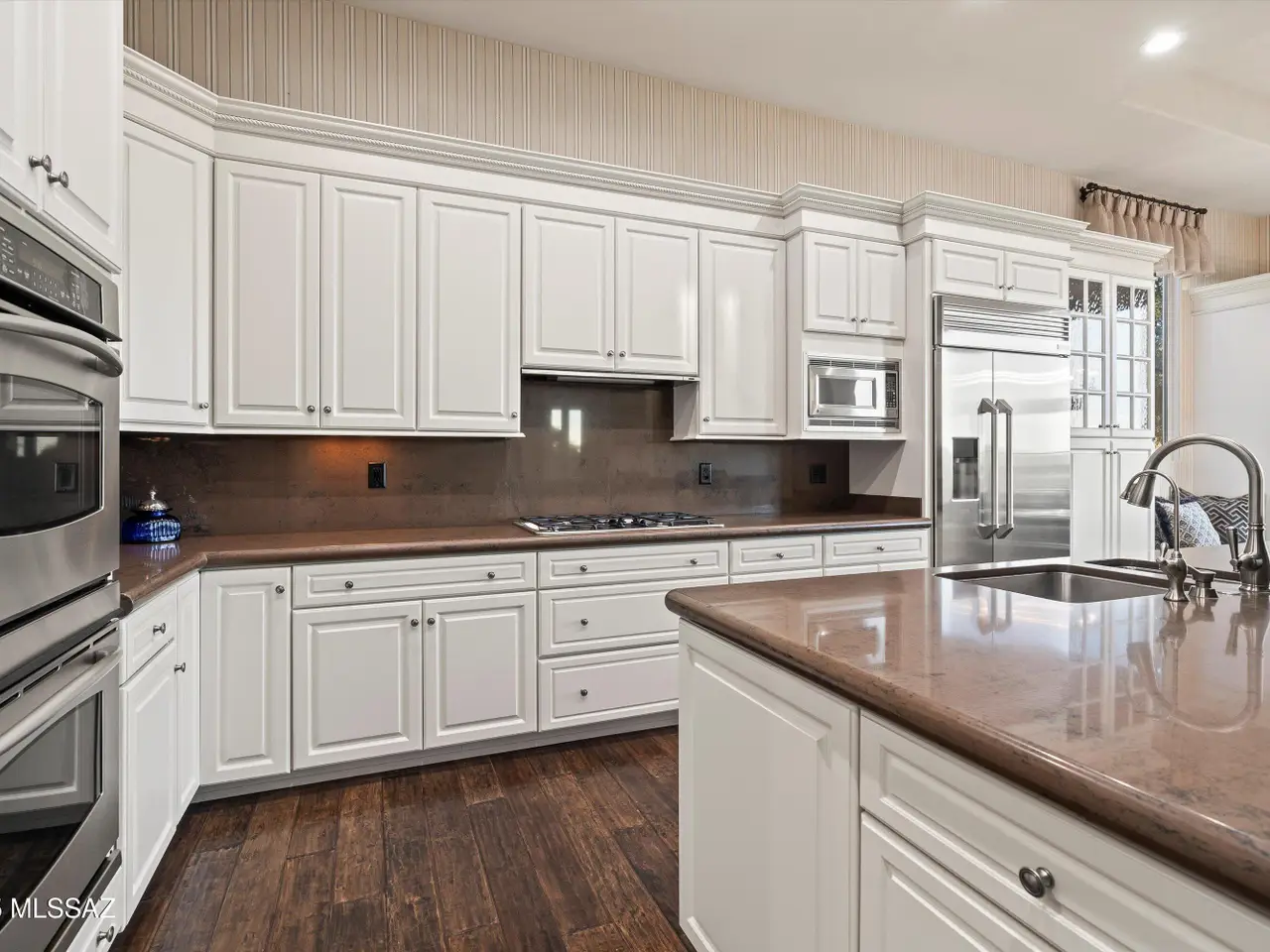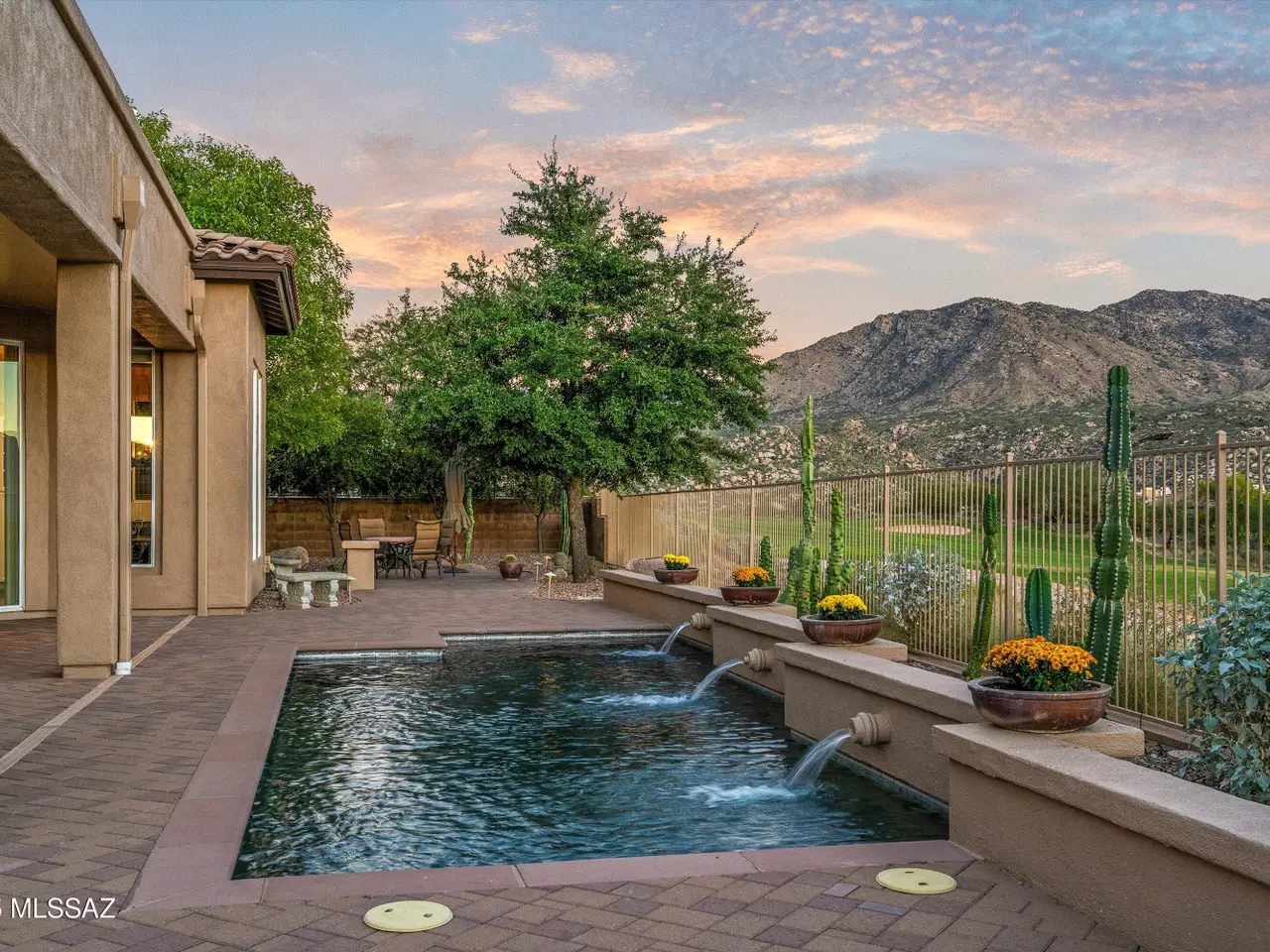 Stunning Golf Course Living in The Preserve! Tierra model w/ casita on a premium golf course lot offering stunning mountain views & easy access to upscale community amenities. Formerly a model home, features a gourmet kitchen w/ premium cabinetry, solid quartz countertops & backsplash, gas range, and a convenient butler's pantry. Spacious great room & den showcase custom built-ins, while the luxurious primary suite includes a soaking tub, oversized shower, makeup vanity, & dual walk-in closets. Guests enjoy a Jack & Jill bath with separate vanities. The 400+ sq ft casita features a fireplace, kitchenette, full bath, and walk-in closet. Outdoor living is ideal w/ a covered patio, pool, & soothing waterfalls. 3-car garage + temperature-controlled workshop complete this must-see home!
