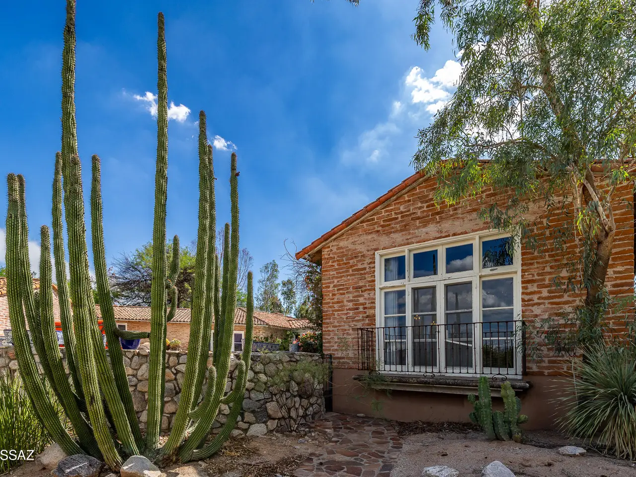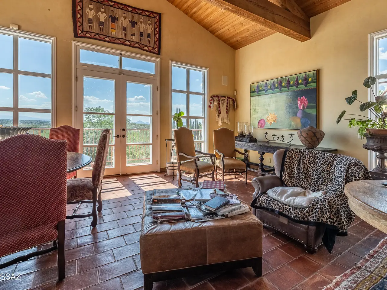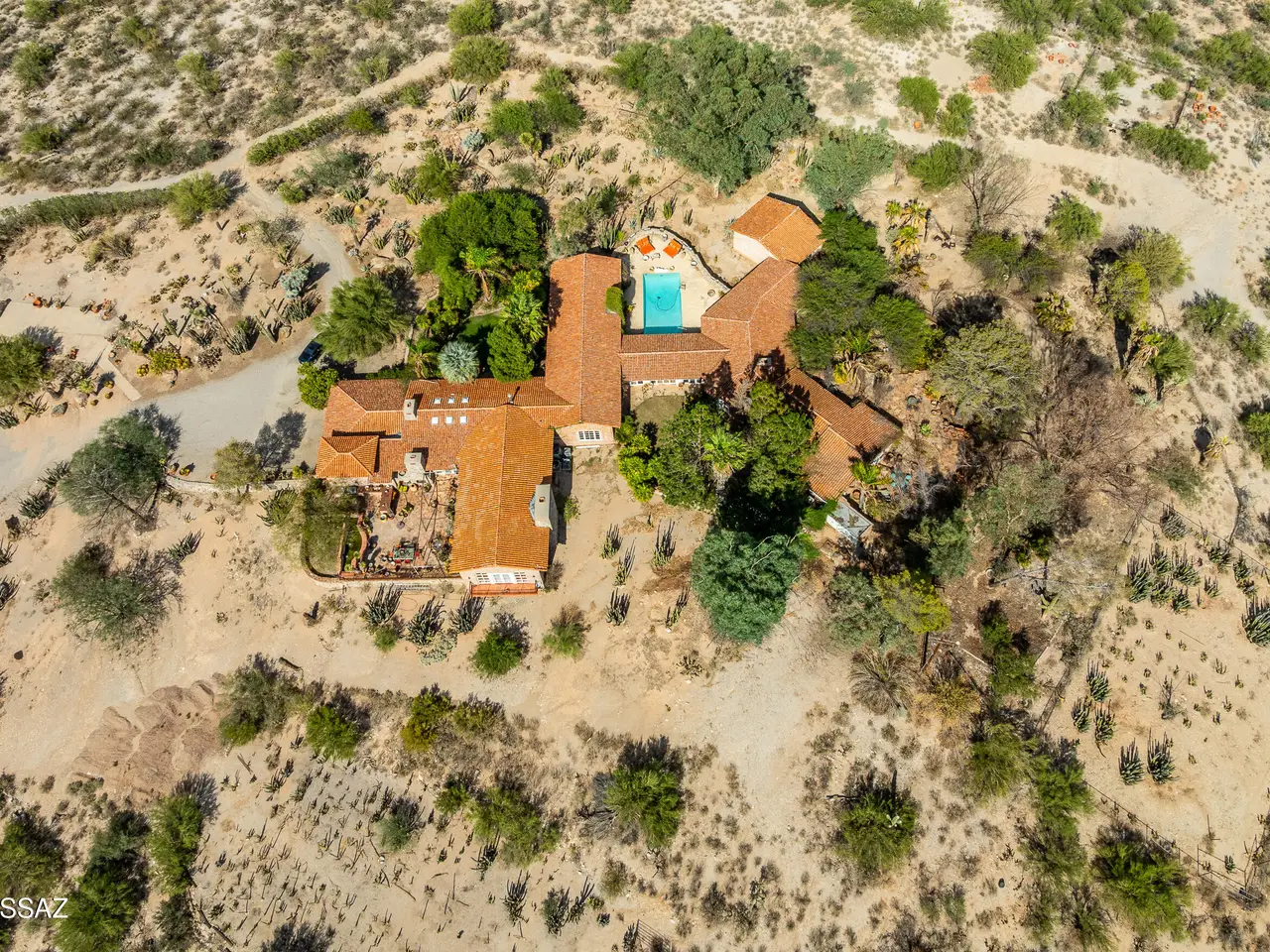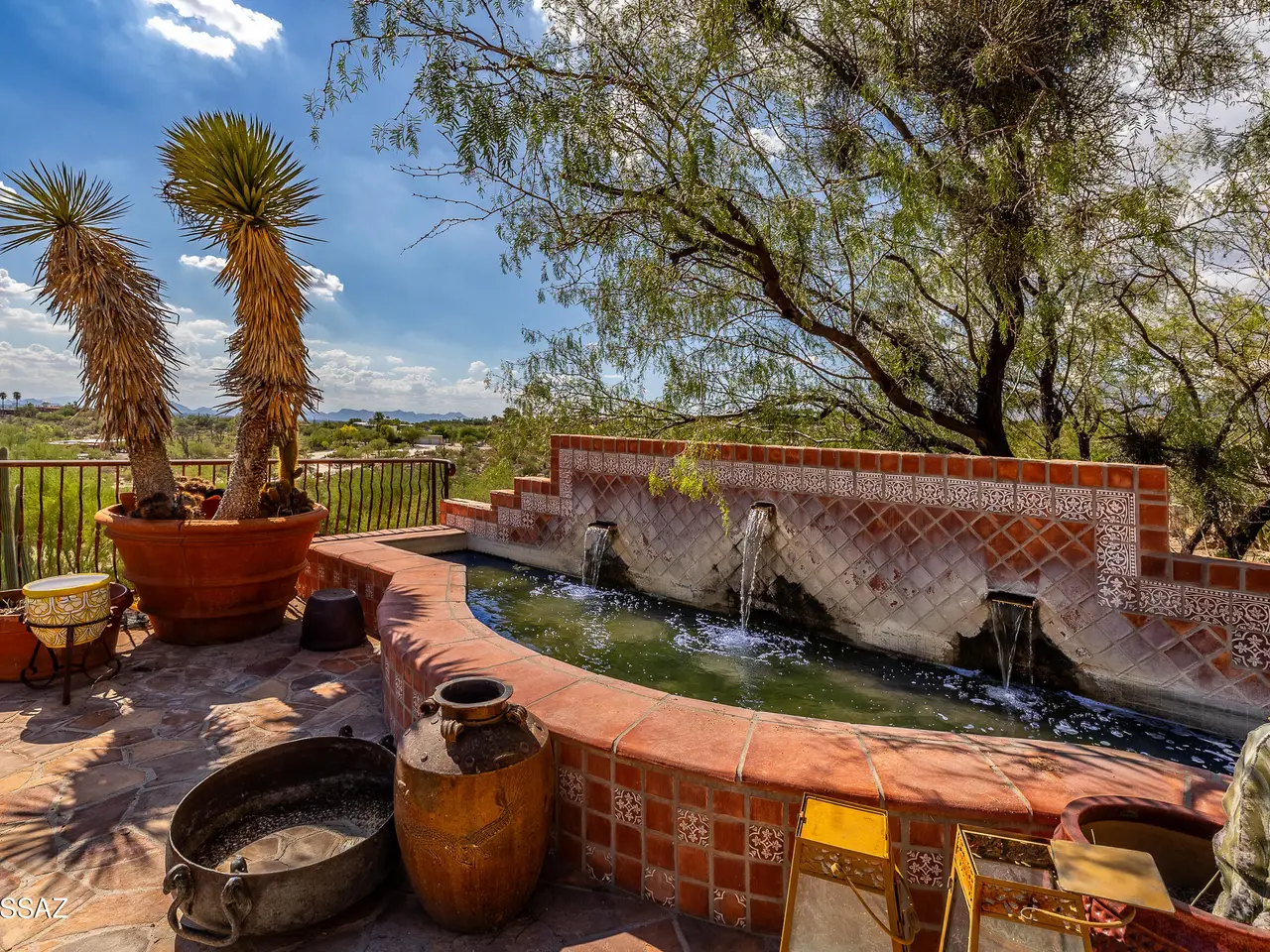 TAR Home Winner & Long Realty Tanque Verde Office Winner. Timeless elegance meets western charm in this historic estate set among sweeping desert landscapes. Featuring original burnt adobe architecture, soaring ceilings, stone floors, wood beams, fireplaces, and generous living spaces, the home offers a rare blend of heritage and modern comfort. Designed with equestrian potential, it includes two 3.4-acre parcels where stables and corrals once stood, providing space to build, ride, or sell, along with a private well. This hillside property boasts panoramic mountain and desert views, a spacious updated kitchen, pantry, and grand entertaining areas, making it a unique opportunity rich in history and character.