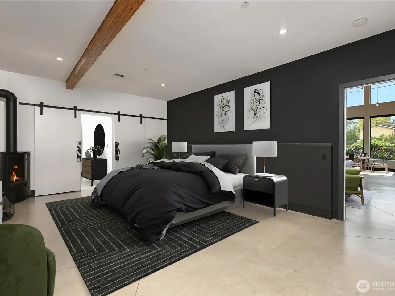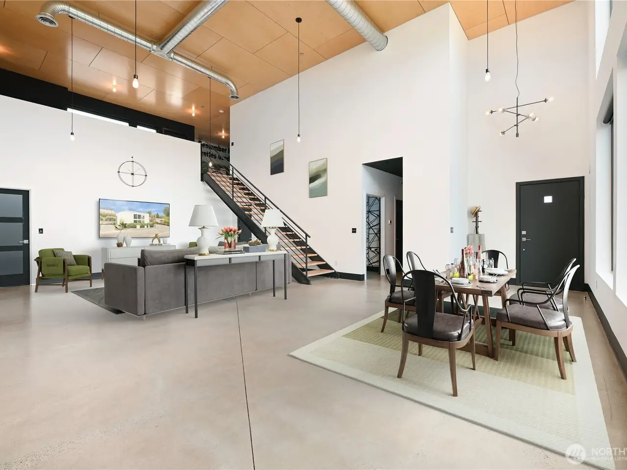 Modern/Industrial loft designed by top Seattle Interior Designer. Zoned for residential & commercial use. Many custom architectural & design features done by local artisans/craftsmen. Primary bed includes gas fireplace, walk-in closet, full custom-bath w/ washroom. Great-room boasts large windows w/automated shades, 18' ceilings, living/dining rm w/ chef's kitchen that includes gas range + modern appliances. Upper floor loft features work/lounge space, guest bath & Murphy bed, original 1950s/1970s vintage billboards & 1980s record posters, private deck & rooftop access. House has insta-hot H2O, Central A/C, security cameras, gas/grill hookup at back patio & rooftop, is pre-wired for solar & EV charging. Great location for home or business.