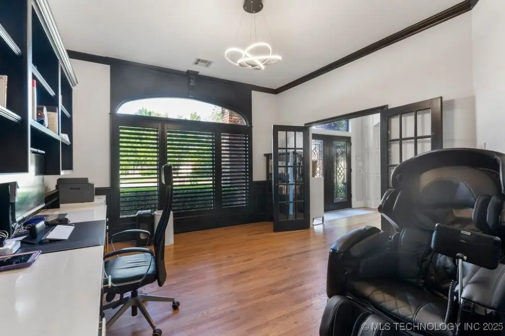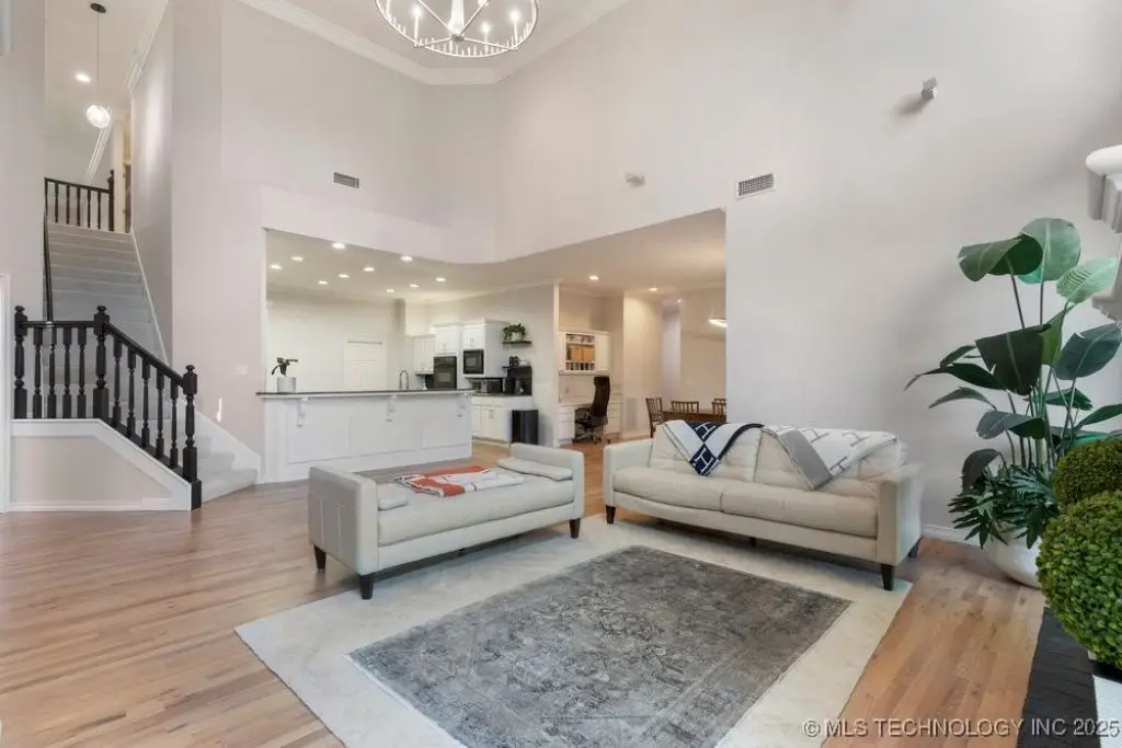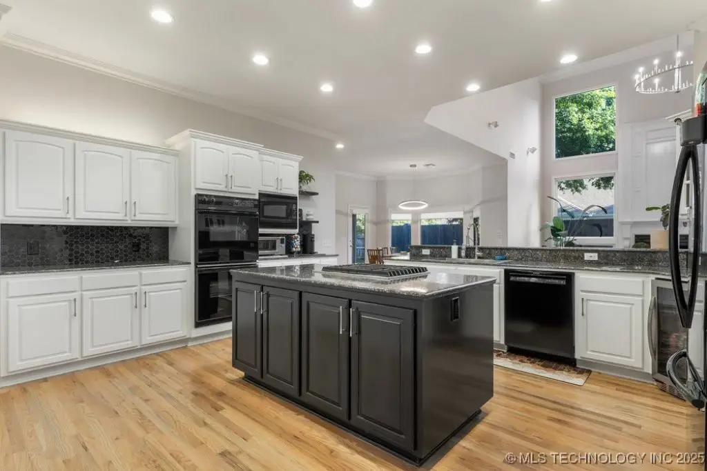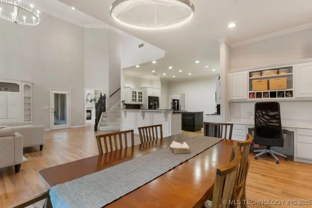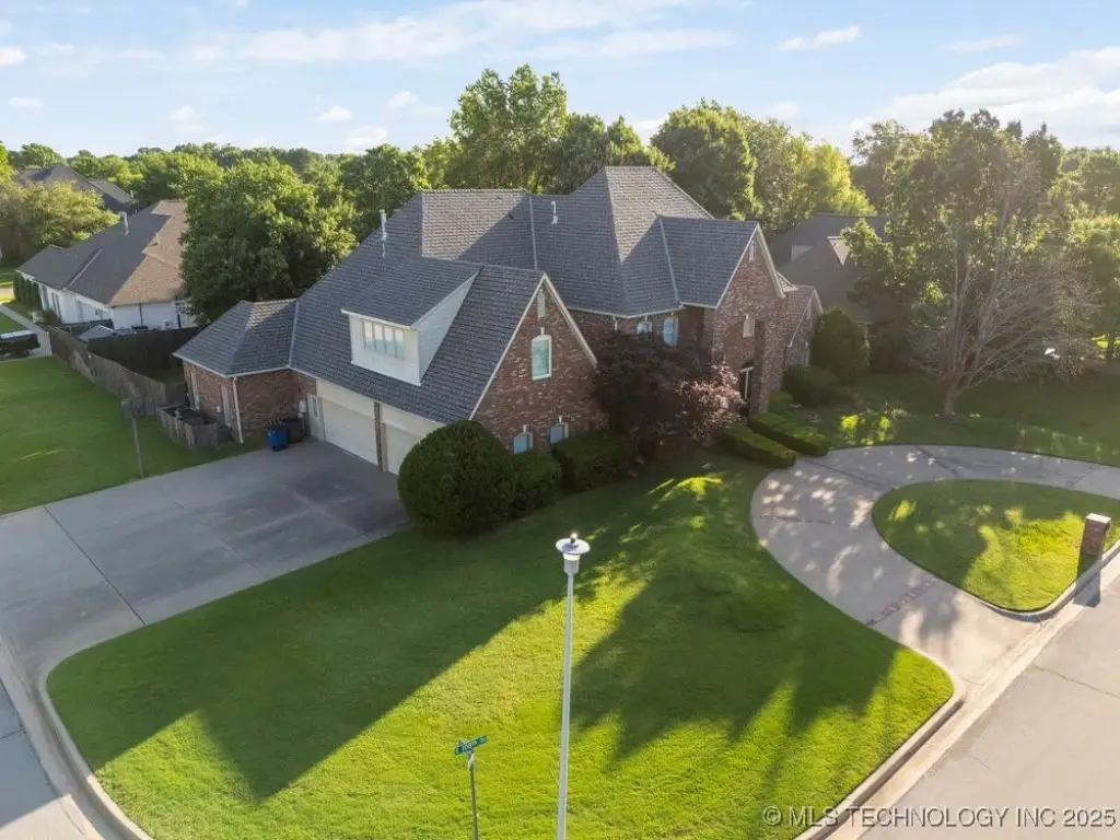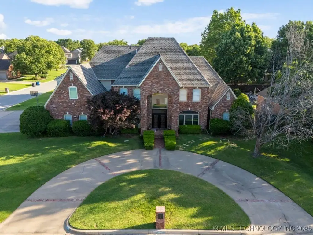 ABSOLUTELY STUNNING full brick home on corner lot. Beautiful landscaping and circle drive adorns the entrance to this home. Gorgeous backyard and Pool. This home has a 4 Car Garage and resides in the award winning Jenks SE School district! Grand open entry, dual staircase, formal dining. Study and living with fireplace with wall of windows overlooking the sparkling pool! Kitchen opens to breakfast nook & the large vaulted living. Lovely split first floor master and guest suite down, 3 large Bedrooms with en-suite baths & expansive game room with wet bar up! This home has it all, great for entertaining and your family. You do not want to miss out on this lovely family house in the beautiful established neighborhood of Southern Park Estates. Won't last, make this one yours.