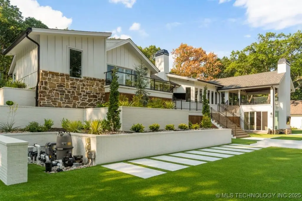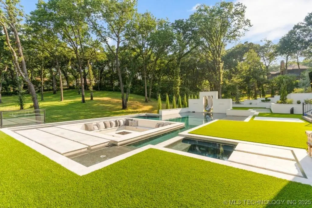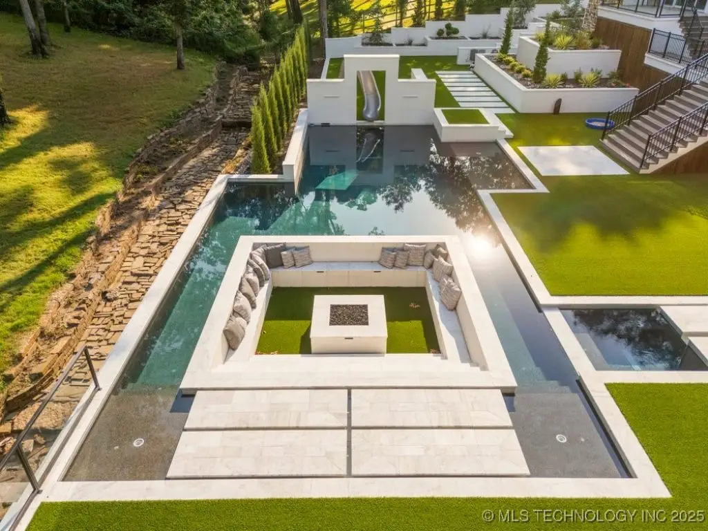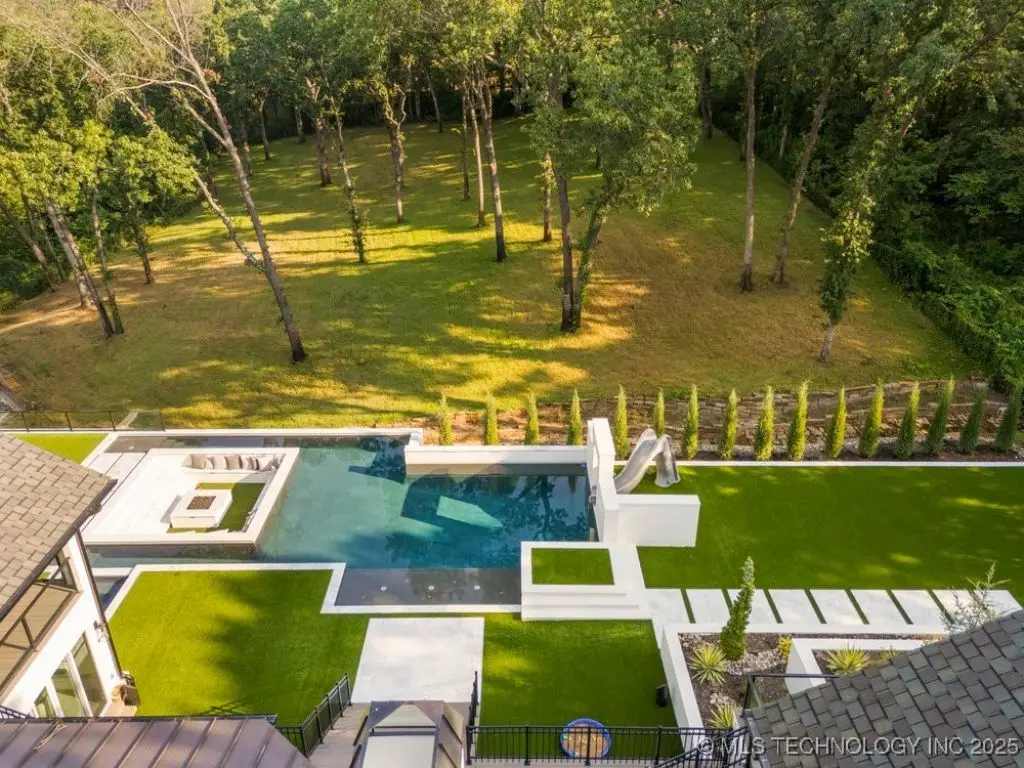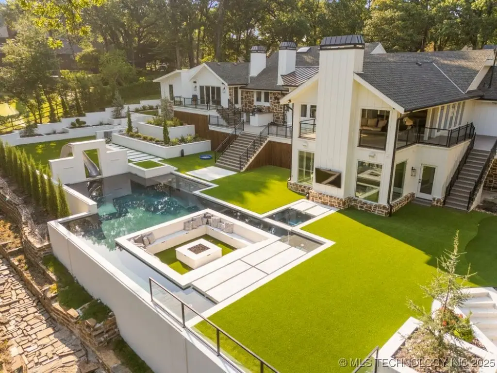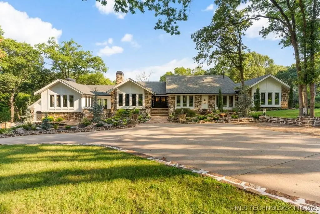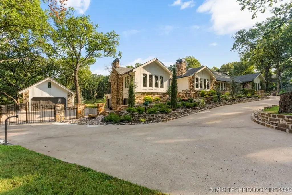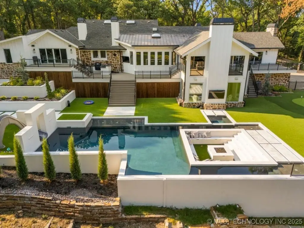 Welcome to your dream oasis in South Tulsa! This completely remodeled stunner sits on an expansive 2.5 acres (m/l), offering both luxury and space for endless possibilities. With five spacious bedrooms, including a charming bunk room, every bedroom boasts its own en suite for ultimate convenience and privacy. Step inside to discover two inviting living areas, dedicated game room and a private media room, perfect for entertaining family and friends. Inside you will find SEVEN fireplaces that boast coziest and ambience. The cabana room provides a relaxing retreat, enhancing the home's resort-like ambiance. The outdoor space is nothing short of spectacular! Multi-level decks beckon you to the impressive backyard, featuring a stunning Gunite pool, complete with cascading water features and a thrilling water slide. Gather around the sunken fire pit that comfortably accommodates over 20 guests, perfect for cozy evenings under the stars. The putting green adds an exciting touch for the golf enthusiast, or the outdoor kitchen beckons for all alfresco dining and entertainment. This remarkable home is truly a must-see, an extraordinary blend of comfort, style, and outdoor fun that defines the essence of luxurious living. A true MUST SEE!!