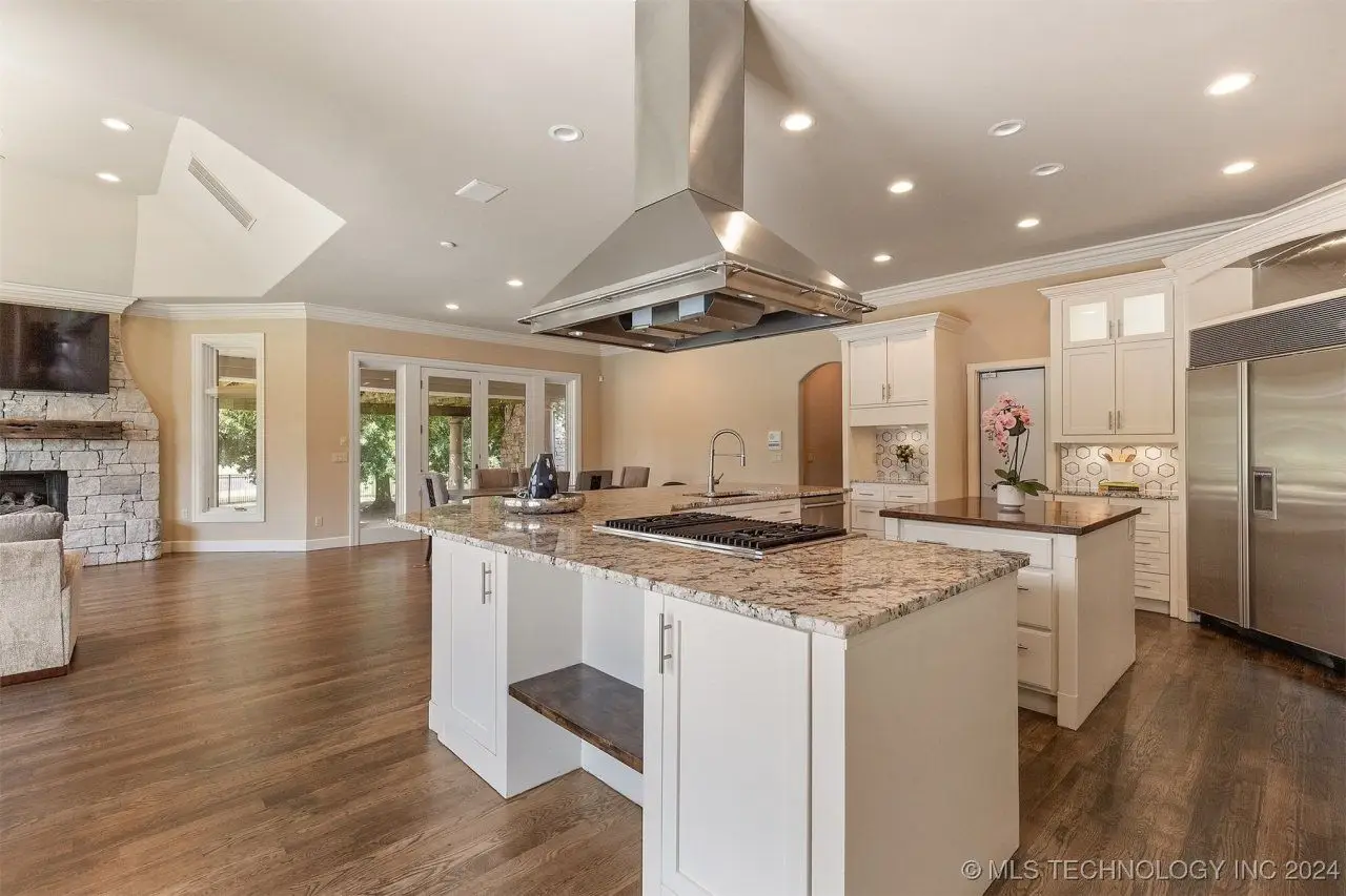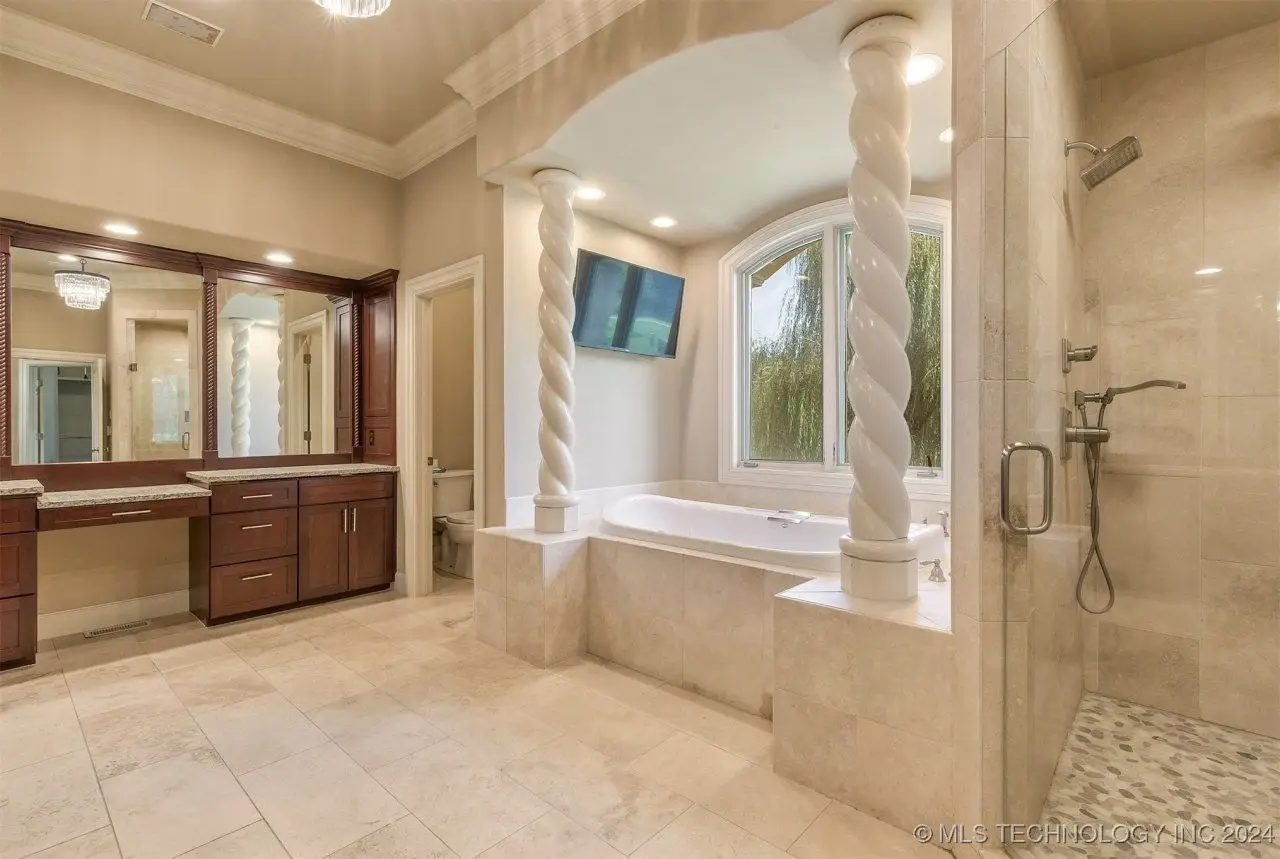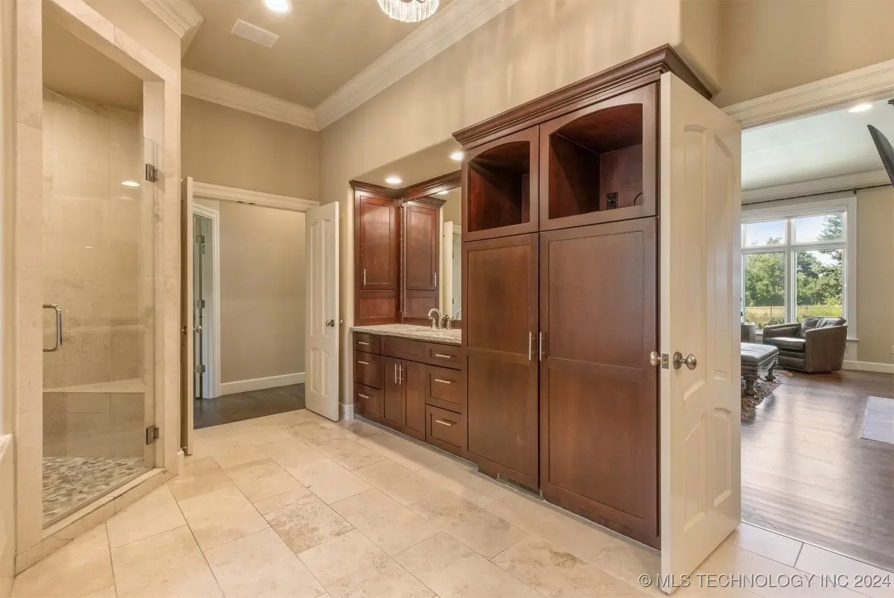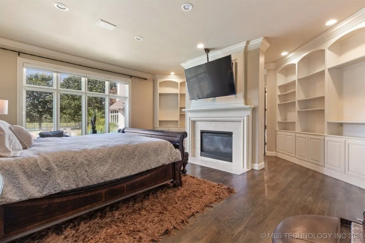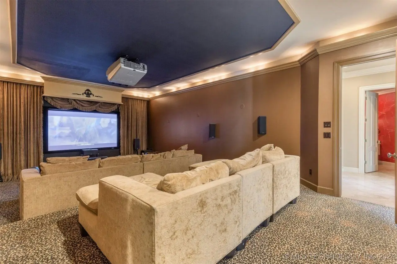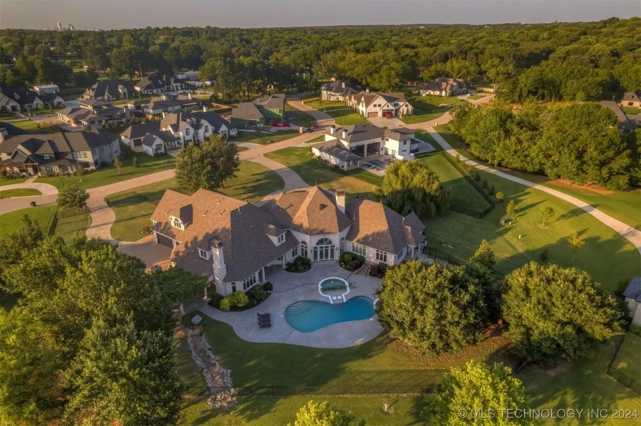 This incredible custom built Estate is perfectly situated on almost 1.5 acres, in the gated community of Oak Leaf Estates. Within a mile of the Oaks Country Club and close to dining and shopping, the location is unmatched! All brand new HVAC systems, in winter 2024, Pool resurfaced and new pool tile in fall/winter 2024 and new roof scheduled to be completed January 2025! This estate is perfect for entertaining with nearly 10,000 square feet and panoramic views of a 4 acre pond with fountains and custom lit walkways. Entertain in the outdoor space which includes a custom pool, spa plus wood burning fireplace. This home features, dual offices, tiered theatre room seating 14 with ticket booth and full bar, stunning kitchen, relaxing living space with incredible views, a home gym and private spa. The primary bathroom has heated floors with separate vanities, walk in shower, Jacuzzi tub and the California closet includes washer/dryer. The generously sized bonus space was built to also be utilized as a Mother-in-law suite / guest quarters, complete with bath and kitchenette. The incredible 7-car pass thru garage also opens to a back gated driveway allowing for additional entry.