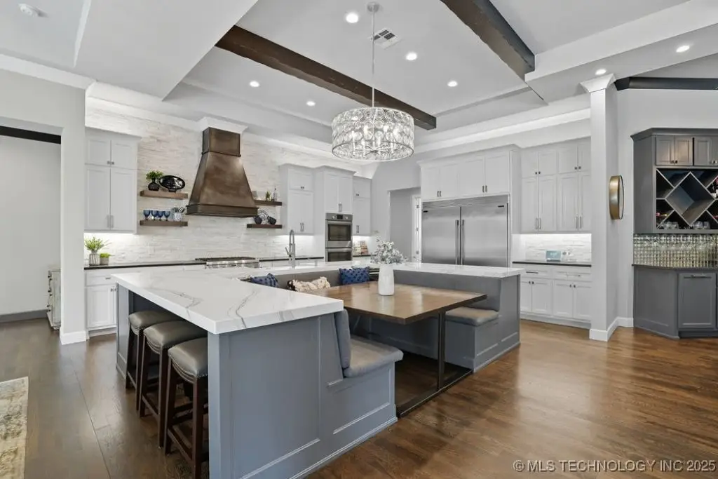 Stunning Home in Gated Oak Leaf Estates. Nestled on a beautiful wooded corner lot of over half an acre with a peaceful creek running along the back, this home offers the perfect blend of privacy and luxury. Step inside to discover a custom-designed booth island that serves as the heart of the home. A prep kitchen is located just behind the main kitchen, to prepare meals for one or many! ideal for family gatherings and casual entertaining. The spacious primary suite is a true retreat, featuring an office area and a cozy fireplace in the bathroom, creating a spa-like atmosphere. Outdoor living shines here, with an unbelievable covered patio complete with roller shades, perfect for relaxing or hosting year-round. spectacular pool and built-in grilling station. This home was made to host all the gatherings! Generator on property. Located in the highly sought-after Oak Leaf Estates, this property combines natural beauty, thoughtful design, and modern comfort in one stunning package!
