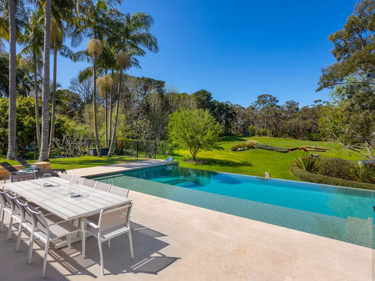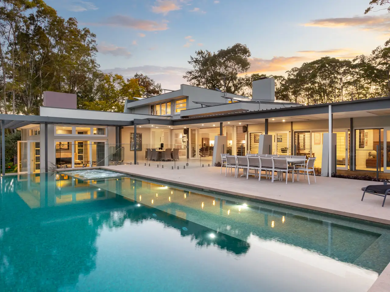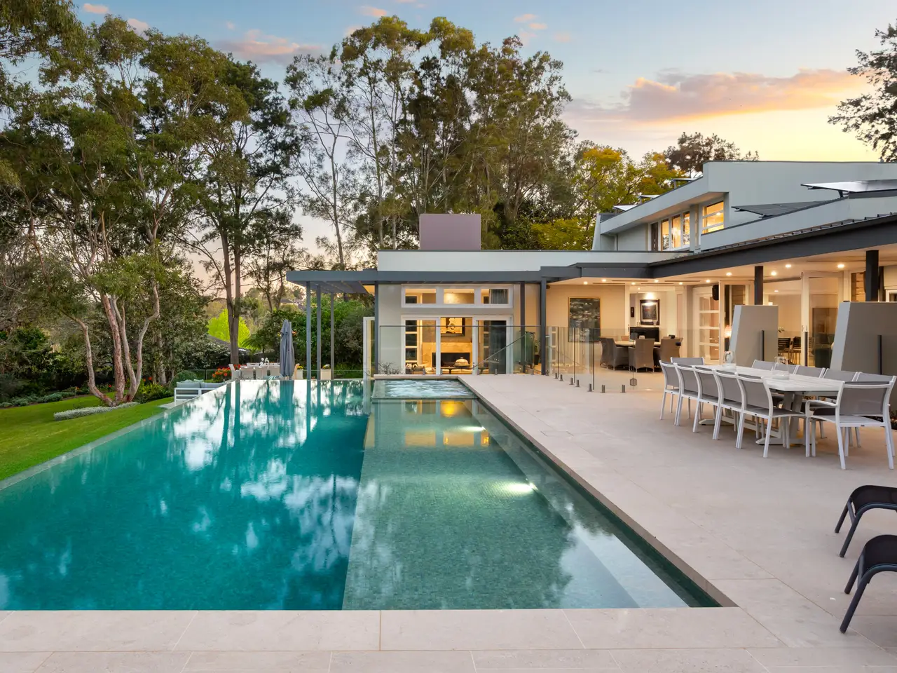 A landmark estate and one of the largest landholdings on the Upper North Shore, this spectacular residence commands 14,780sqm (3.7 acres) of manicured grounds adjoining Garigal National Park. Combining the convenience of a city address with the scale and presence of a country manor, its original mid-century bones have been masterfully reimagined by acclaimed artist and designer Thomas Bucich. Now transformed into a resort-inspired sanctuary, every detail reflects an uncompromising commitment to luxury and comfort. A reconfigured floor plan delivers an array of fluid open spaces with a seamless connection to the magnificent outdoors, where a 14m heated infinity-edge pool crowns sweeping lawns, exquisitely sculpted gardens and a full-size N/S tennis court. With no neighbours in sight, the home also features five bedrooms, two home offices, a self-contained two-bedroom cottage, billiard room, a 2000+ bottle climate-controlled wine cellar and garaging for five cars, all accessed via secure gates and a meandering private driveway. Unmatched in size, beauty and seclusion, this is a once-in-a-lifetime offering. From this premier pocket, enjoy station buses at the door with easy access to North Turramurra Golf Course, village shops and many of the Upper North Shore's leading schools. - Sun-filled family living with floor-to-ceiling glass, wood fire and 3m ceilings - Banquet-sized formal dining with additional wet bar - Dedicated billiard or rumpus room with access to courtyard - Custom entertainer's kitchen, Quartzite benchtops and polyurethane cabinetry - Premium European appliances including induction cooking and pulse oven - Centrepiece open plan living extending seamlessly to the outdoor setting - Sunken formal lounge with fireplace, opens to pond and rolling lawns - Stone paved all-weather terrace perfect for soaking in the garden vistas - 14m mosaic-tiled heated infinity-edge pool and sprawling manicured gardens - Full size synthetic grass N/S tennis court and multiple intimate outdoor settings - Secluded master suite with dressing room and a spa ensuite with dual vanity - Five additional double bedrooms includes a 2nd serviced with an ensuite - Two home offices, custom joinery and ducted air conditioning throughout - Fully self-contained two-bedroom cottage with separate entry - Five-car garaging, EV charger, 30KW solar system with a 22KW battery - 2000-bottle cellar, irrigation system, automatic gates and intercom entry - Turramurra station buses at the door with easy access to the Village hub - Moments to Turramurra PS, Knox, Abbotsleigh, PLC and Barker College Disclaimer: Whilst all care has been taken to ensure accuracy in the preparation of the particulars herein, no warranty can be given, and interested parties must rely on their own enquiries.