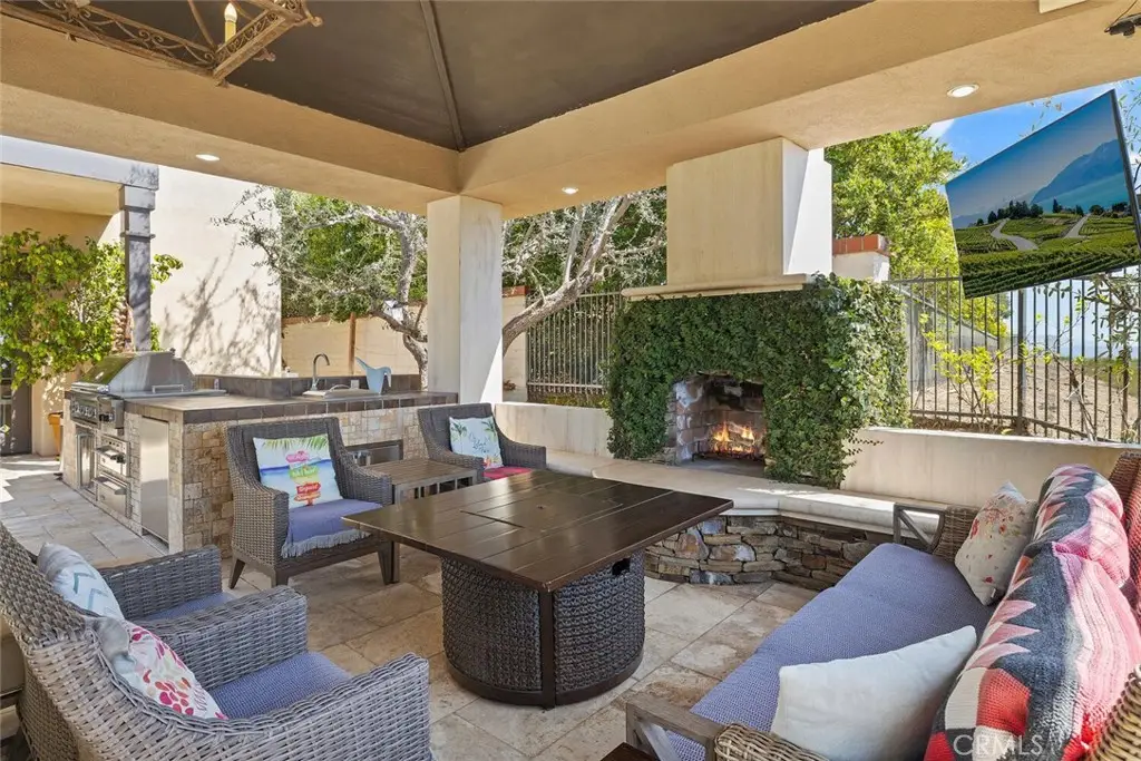 Bienvenido a 11755 Collar Ave. Este lujoso oasis se encuentra en una de las ubicaciones más codiciadas de la prestigiosa comunidad de Tustin Ranch Estates, con vigilancia las 24 horas. Esta impresionante residencia de más de 540 m² ofrece impresionantes vistas, atardeceres cautivadores y pintorescas vistas de la Isla Catalina, todo desde una tranquila calle sin salida. Ubicada en un extenso terreno de 1480 m², la casa combina a la perfección elegancia y privacidad. Con su espaciosa distribución, acabados de lujo, escalera doble y un entorno panorámico, esta propiedad le invita a experimentar un estilo de vida incomparable de comodidad y sofisticación. Esta antigua casa modelo fue diseñada cuidadosamente con mejoras de primera calidad, ofreciendo un espacio habitable lujoso y confortable. Cada detalle ha sido meticulosamente elaborado para realzar la elegancia de la casa, desde acabados de alta gama hasta detalles personalizados, brindando una combinación excepcional de estilo y funcionalidad. Ya sea disfrutando de los amplios espacios interiores o de las impresionantes vistas exteriores, esta casa ofrece una experiencia de vida inigualable. La cocina es el sueño de cualquier chef, con gabinetes hechos a medida y amplio espacio de almacenamiento. Equipada con horno doble, refrigerador empotrado y una placa de cocina de 6 quemadores, este espacio está diseñado para cocinar y recibir invitados con facilidad. En la primera planta, encontrará un dormitorio principal con baño en suite, un estudio formal con chimenea, una luminosa sala familiar, un desayunador y una sala de estar formal con una impresionante chimenea tallada en madera y techos estilo catedral. Un comedor formal y un bar complementan la oferta de entretenimiento de la casa. La suite principal, en la segunda planta, cuenta con su propio balcón con impresionantes vistas al mar y a la ciudad. Tres dormitorios adicionales con baño en suite y una amplia sala de juegos satisfacen las necesidades de toda la familia. Los jardines delantero y trasero ofrecen un ambiente primaveral durante todo el año. Las comodidades adicionales incluyen un patio cubierto con chimenea de piedra, calefactores de techo, una piscina de azulejos de cerámica, un jacuzzi y una zona de barbacoa totalmente equipada con una enorme parrilla. El largo camino de entrada ofrece estacionamiento para varios autos. Las escuelas galardonadas, los restaurantes y tiendas de primera clase, el Aeropuerto John Wayne y las autopistas se encuentran muy cerca.