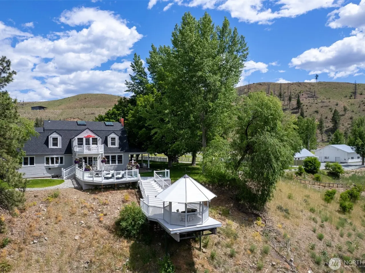 MARBLE RANCH - A rare 21.49-acre riverfront estate with ½ mile of Methow River frontage. This beautifully preserved 1930s farmhouse blends historic charm with modern updates: hardwood floors, arched doorways, updated kitchen, and stunning river-view decks. Includes 4BD/3BA main home, finished attic, daylight basement with media room/flex space. Renovated 2BD guest house with river views. Massive 4,600 sf shop/garage with 4 bays, office, and heated bath. Irrigated pasture, garden, and walking paths to beaches and swimming holes. A private, peaceful retreat ideal for full-time living or a seasonal escape.