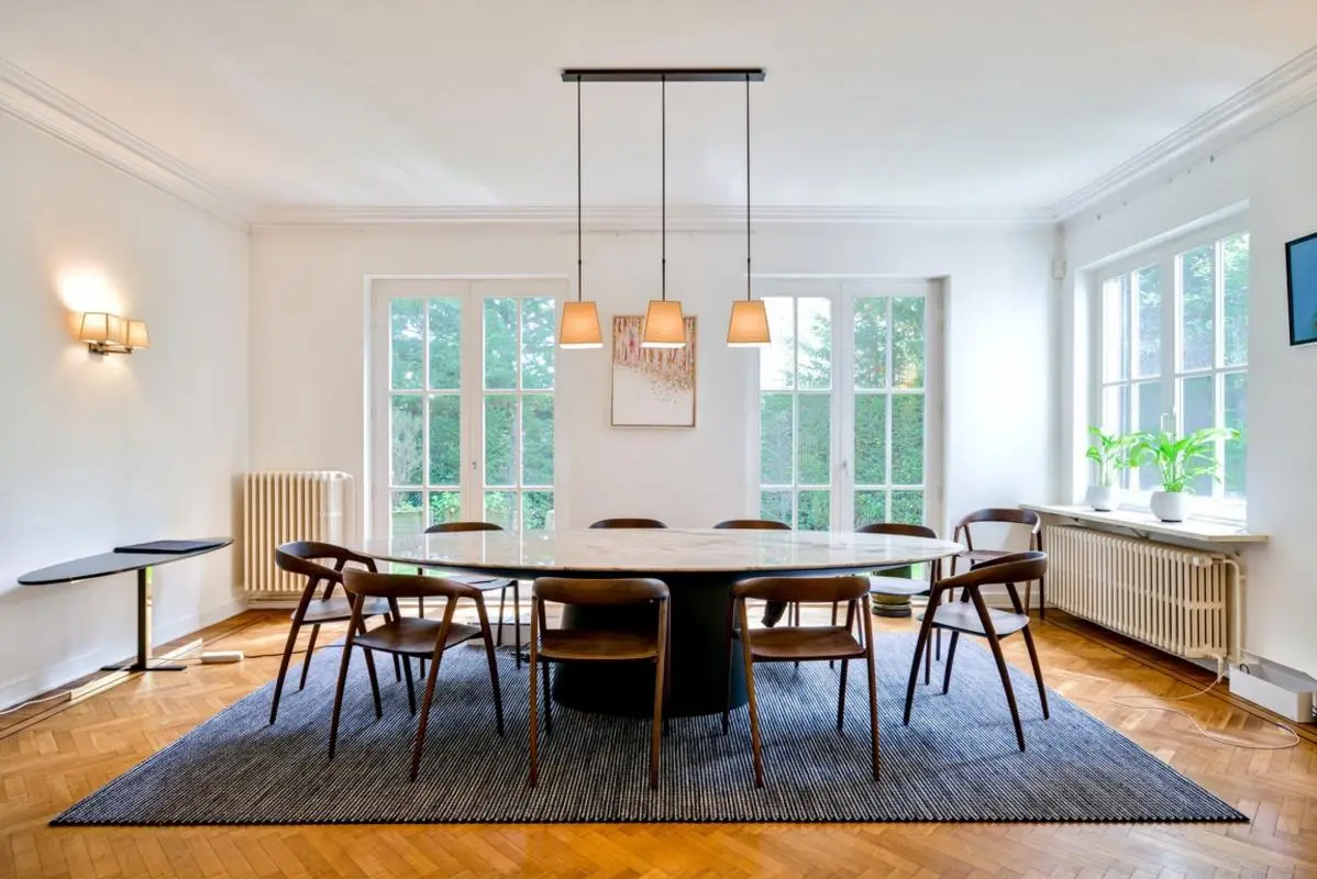 In the prestigious Errera district, one of the most sought-after in Brussels, this classic villa with around 585 m² of living space enjoys a leafy setting on the edge of the Royal Léopold Club. Set on a plot of ±11.50 ares, it boasts a magnificent landscaped garden facing south-west and permission to build an outdoor swimming pool. Inside, spacious, light-filled reception rooms, a fully-equipped kitchen, a games room, seven bedrooms and five bathrooms offer exceptional living comfort. Two garages complete this rare property on the market. EPC E- This residence combines timeless charm with top-of-the-range features, in the immediate vicinity of the capital's amenities and facilities.