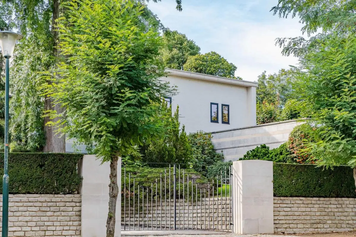 Situated on one of Uccle's most sought-after avenues, this rare minimalist property blends perfectly into its exceptionally green surroundings. Set in 45 ares of land, it benefits from a garden planted with trees, spectacular views and a swimming pool, offering a unique living environment. With 500 m² of living space, it boasts spacious reception rooms, a study, four bedrooms (with the possibility of adding more) and two bathrooms. An independent caretaker's lodge enables staff or guests to be accommodated independently. The property has undergone a complete technical refurbishment, with new frames, electricity and heating. The interior finishing touches have yet to be completed, giving you the opportunity to personalise the spaces as you wish. A five-car garage completes this exceptional property. EPC G
