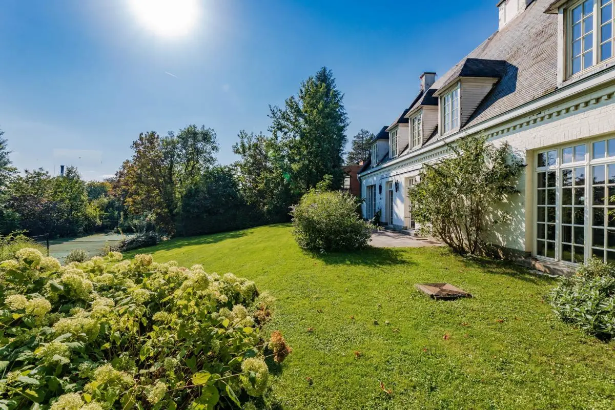 In the beautiful residential area of Vert Chasseur, this spacious family villa from the 1950s is set in magnificent land of ± 32 ares 12, planted with trees and perfectly oriented south. It offers a living area of ± 420 m², including beautiful, bright reception rooms opening onto the terrace and garden, a fully equipped kitchen, an office or games room, five bedrooms, two bathrooms and a shower room. The garden has an outdoor swimming pool (in need of renovation) and a tennis court. A garage for two cars completes the property. A rare find in a green environment, close to the Sonian Forest and the amenities of Vivier d'Oie. EPC G