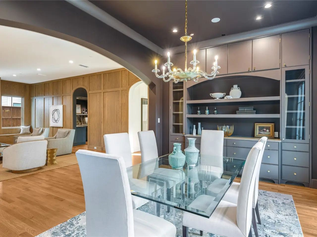 An exceptional new-construction estate located at 4104 Greenbrier Dr, University Park, TX 75225, is now available for purchase, with completion expected in late summer 2025 by Campbell Custom Homes. This transitional-style residence offers approximately 6,000 square feet of elegant living space, featuring 5 bedrooms and 5.2 baths. A striking covered entry corridor with a tranquil water fountain feature leads to the front door, creating a serene and memorable first impression. Inside, a light-filled foyer welcomes you, flanked by a formal living room with an adjoining office or library and a warm, wood-paneled family roomboth connected by a stylish walk-through bar. The home also includes a sophisticated dining room with a built-in buffet and china cabinet, seamlessly flowing into a chef’s kitchen outfitted with wolf & sub-zero appliances, a white oak island, oversized fireplace, adjacent scullery, and a beautifully finished walk-in pantry. Upstairs, the luxurious primary suite serves as a private retreat, complete with a cozy sitting area, spa-inspired bathroom, and a convenient coffee bar at the entry. Expansive nano doors open to a spacious backyard, perfect for indoor-outdoor living. Located within the highly sought-after Highland Park ISD and zoned to Hyer Elementary, this property offers luxury living, top-tier education access, walkability to Preston Centers shops and restaurants, and timeless design in the heart of University Park.