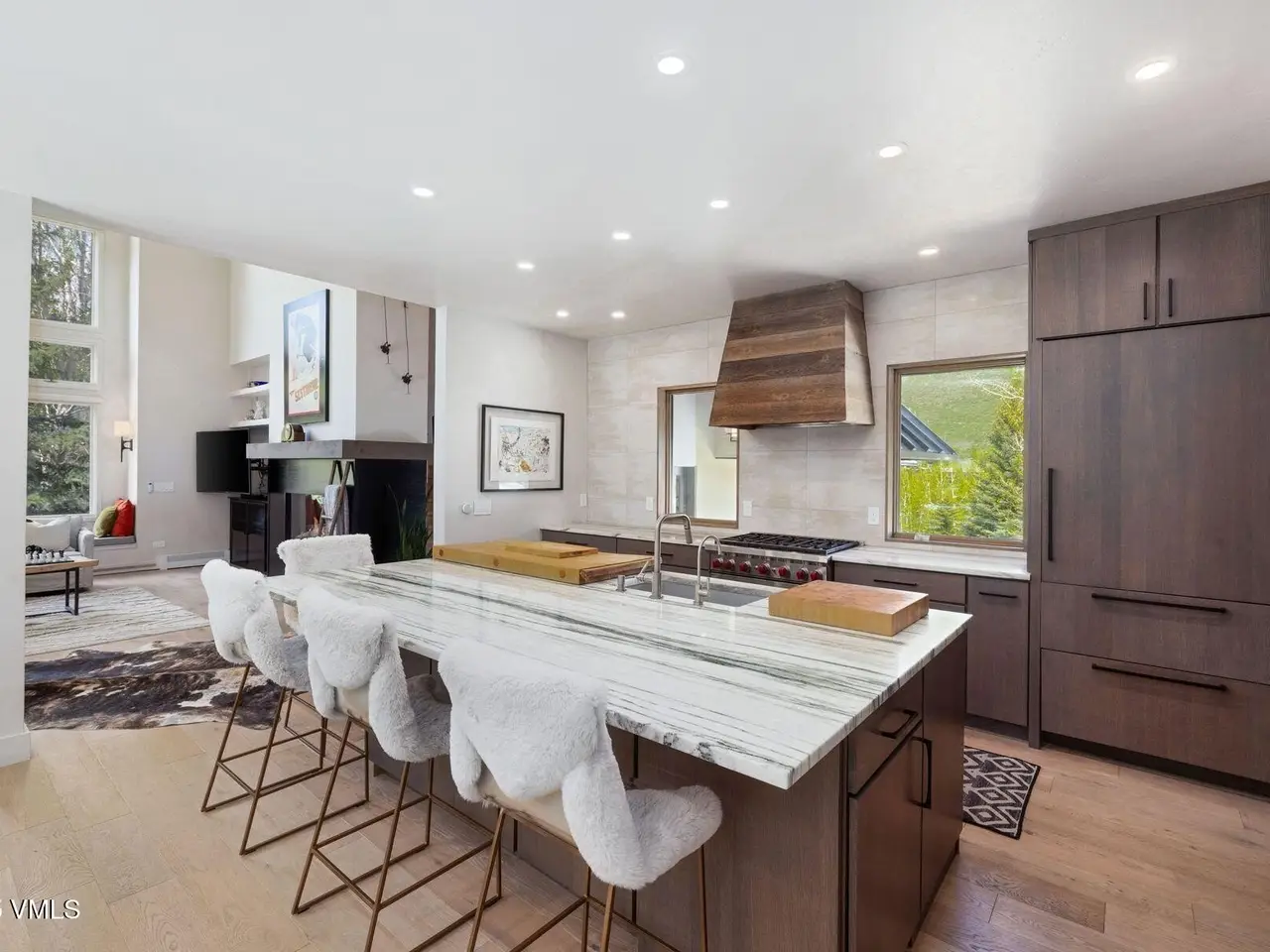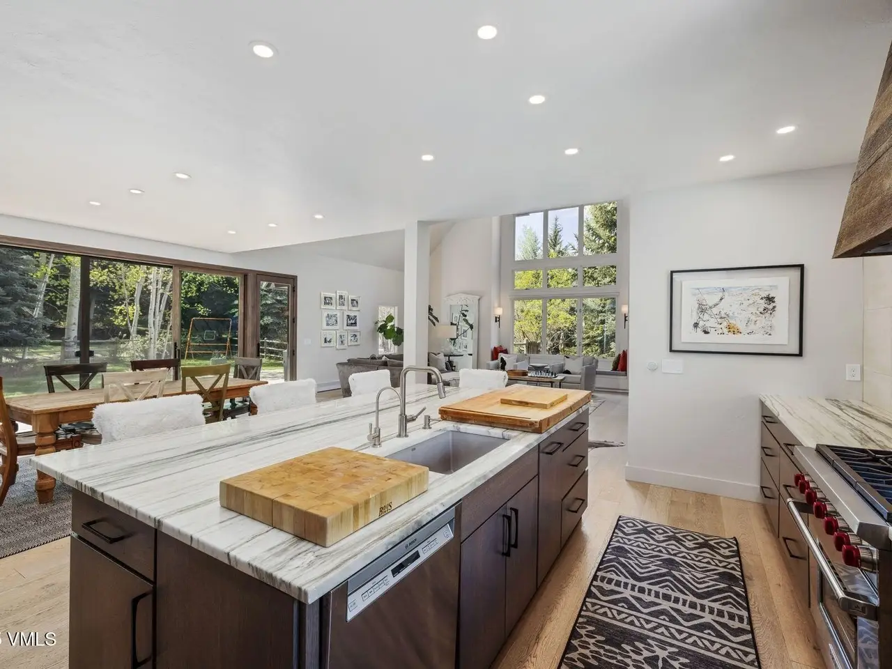 Modern Luxury Meets Mountain Living - Just Minutes from Vail. Welcome to this meticulously and elegantly remodeled contemporary single-family home, where sleek design and mountain charm blend seamlessly just moments from the heart of Vail. Set on a rare, generously sized flat yard, this property offers both privacy and space - an uncommon gem in the area. Bathed in sunlight from its south-facing orientation, the home features dramatic floor-to-ceiling windows that flood the interiors with natural light and frame views of the serene surroundings. The vaulted ceilings and open-concept layout include a show-stopping gourmet kitchen with top-of-the-line finishes ideal for everything from quiet mornings to festive gatherings. With four spacious bedrooms, which include a luxurious primary suite with a spa-inspired bathroom, a main floor guest suite plus a family room, office area, and personal workout area, the home's thoughtful two-level design balances elegance, comfort, and versatility. Step outside to discover a beautifully integrated outdoor living experience. The expansive terrace flows effortlessly to the paved patio, flat fenced in lawn area and a vegetable garden create the perfect backdrop for entertaining, relaxing, or play. The oversized garage provides abundant space for vehicles, mountain gear, and storage. And with no transfer tax thanks to its location just outside the Town of Vail limits, this home is as smart an investment as it is a dream to live in.