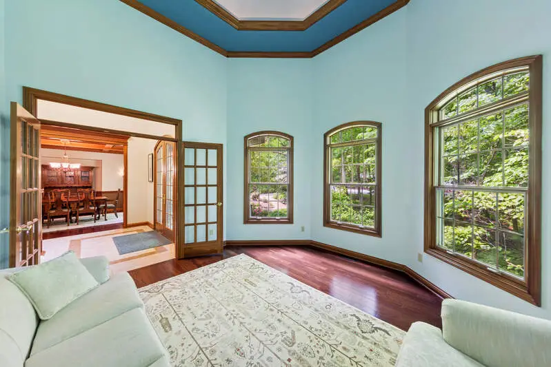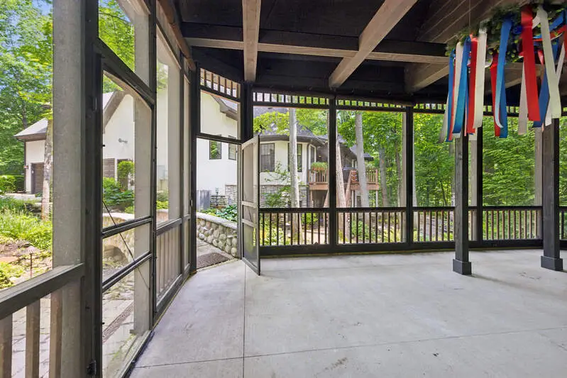 Discover this stunning one-owner home located in the prestigious Whitethorne Woods gated neighborhood. Nestled on a private, wooded cul-de-sac lot, this exceptional property offers over 8,000 square feet of luxury living space. The main floor features a spacious primary suite complete with his and hers walk-in closets, dual vanities, and a beautifully updated en-suite bath with a classic clawfoot tub, heated floors and heated towel racks. The heart of the home is a well-appointed eat-in kitchen, with two dishwashers, perfect for casual dining and entertaining. Designed with both comfort and functionality in mind, the home includes 5 bedrooms--each with its own en-suite bathroom--6 total baths, 2 fireplaces, and a finished basement featuring a workout room, dog wash station, custom pull-out shelving for easy storage, and an office that can be converted into a sixth bedroom. Outdoor living is made easy with a screened-in porch off the family room as well as access of the master suite and deck. Outside across a beautiful stone bridge is a fully screened in gazebo equipped with an electric lift, offering peaceful views and year-round enjoyment. Additional features include a 3-car garage, whole-house generator, double septic tanks, and a 3-year-old roof. Meticulously maintained and thoughtfully designed, this luxury home offers space, privacy, and elegance in one of the area's most sought-after communities.