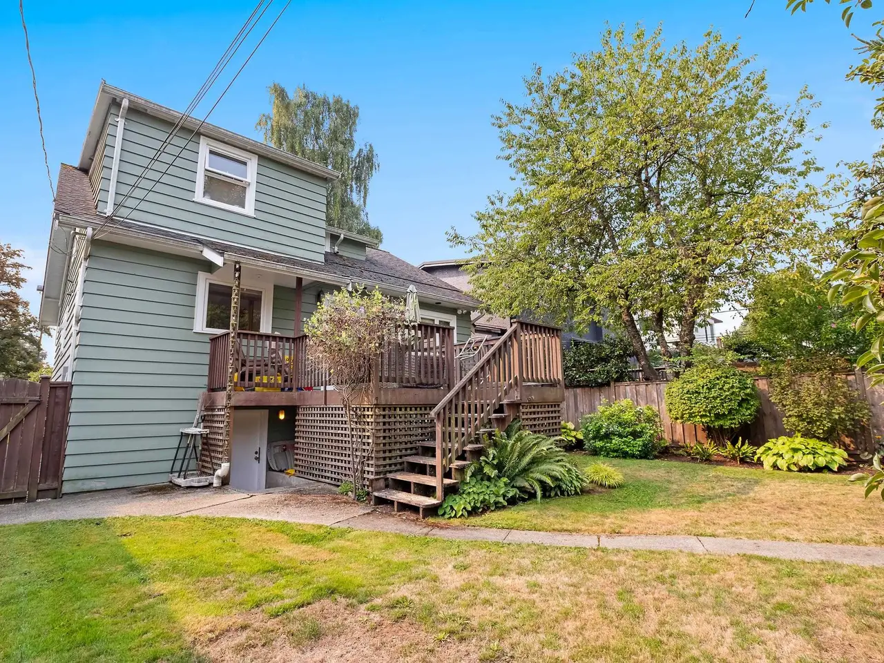 Perfectly positioned across from beautiful Balaclava Park, this home sits on a spacious 43' x 130' lot in one of Vancouver's most sought-after neighborhoods. The main floor boasts bright, sun-drenched living and dining areas, a large kitchen with central island, and direct access to a private sunny deck—ideal for entertaining. Upstairs, the primary suite is a true retreat with full ensuite, walk-in closet, and cozy reading nook, plus a second bedroom. The lower level offers outstanding flexibility with a family room, wet bar/kitchenette, additional bedroom, full bathroom, ample storage, and laundry. Moments from top-tier schools including Crofton House, St. George's, Kerrisdale Elementary, Point Grey Secondary, and UBC.