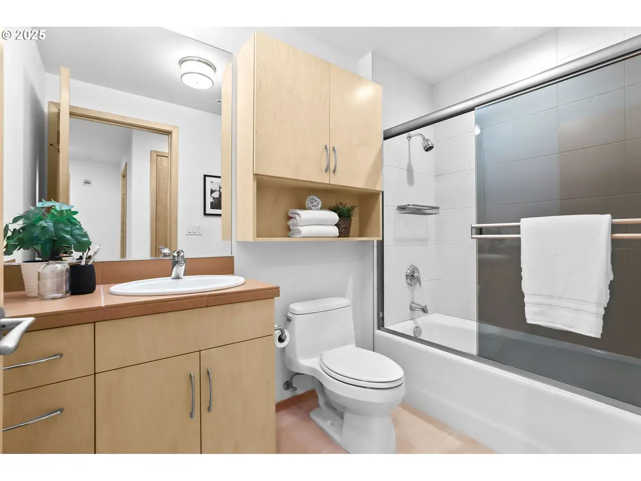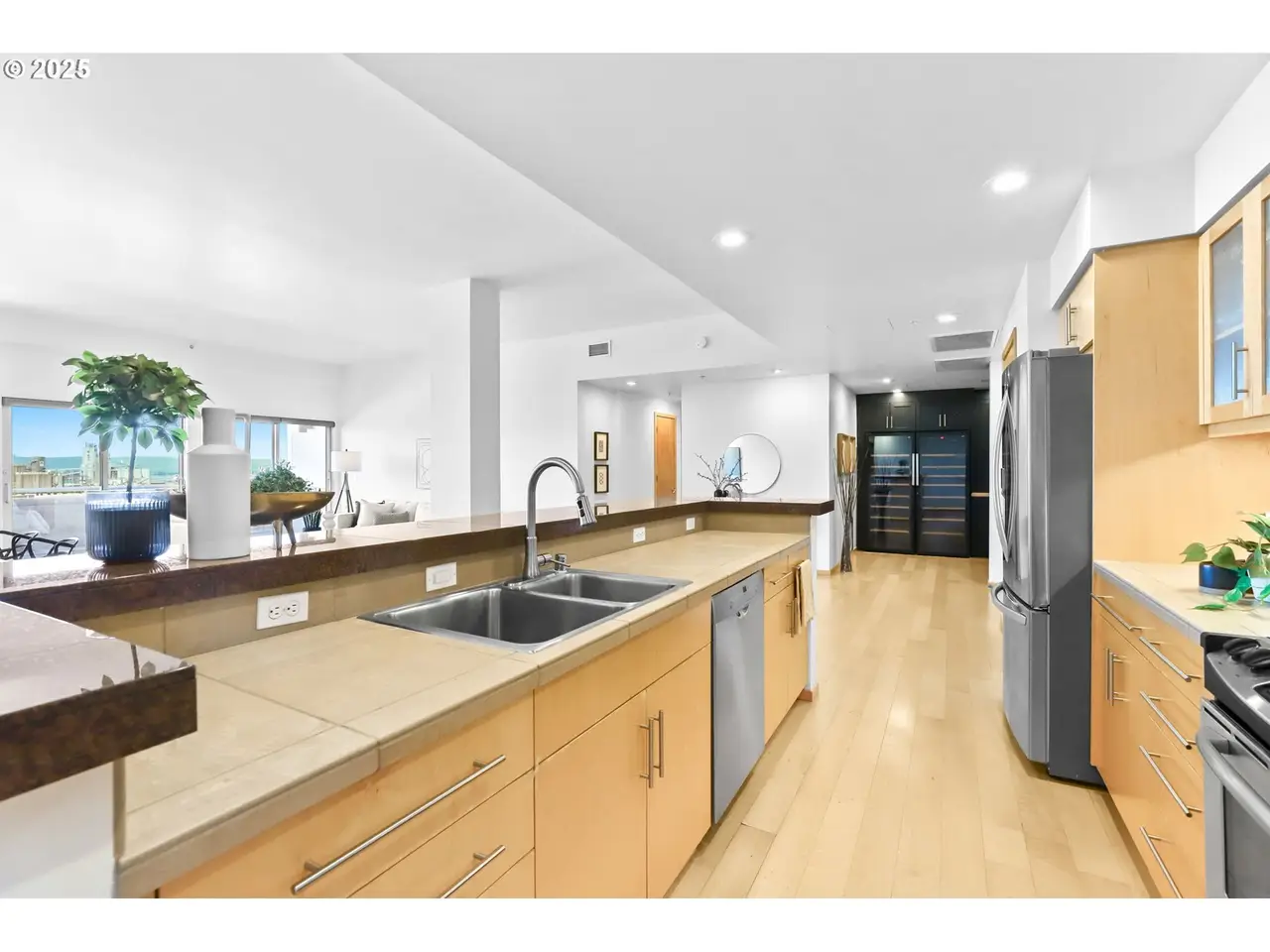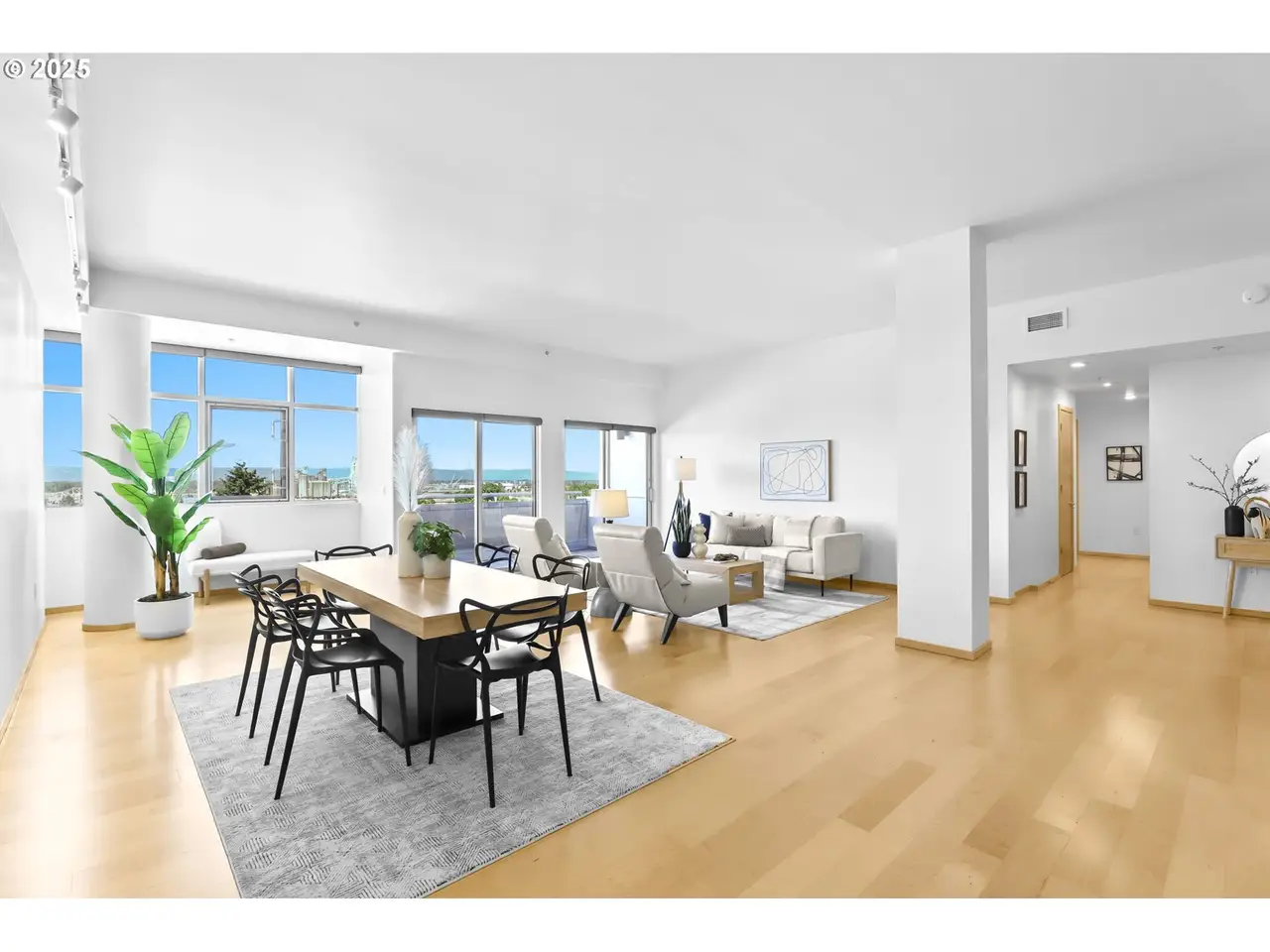 Luxury Downtown Living with Panoramic Views! Elevate your lifestyle in this stunning 2-bedroom, 2-bath luxury condo in the heart of downtown Vancouver. Flooded with natural light, the open-concept design features soaring ceilings and expansive west-facing windows that frame views of the Columbia River, I-5 Bridge, Esther Short Park, the Vancouver Waterfront, and unforgettable sunsets. The kitchen is both elegant and functional, featuring a spacious island, premium appliances - including a three-year-old LG French door refrigerator with dual ice makers, Bosch dishwasher, and gas stove with electric oven - and a cleverly designed butler's pantry with ample storage and dual Artevino temperature-controlled wine cellars. It's a seamless blend of form and function, perfect for both everyday living and effortless entertaining. The fully renovated primary suite offers a peaceful retreat with a cozy sitting area, spa-inspired en suite bath, and a walk-in closet outfitted with a professionally designed organization system. The second bedroom adds flexibility, ideal as a guest room and home office, or creative space. With a walk score of 100, nearly everything you need is just steps away - stroll to the market, catch a movie and dinner, wander along the waterfront, or relax in the park. Building amenities include a deeded parking space, secure storage, and a package/mail room. With stylish finishes, turnkey condition, and seller financing considered, this home delivers the ultimate blend of luxury, lifestyle, and location - plus no Washington state income tax. Welcome to elevated urban living.
