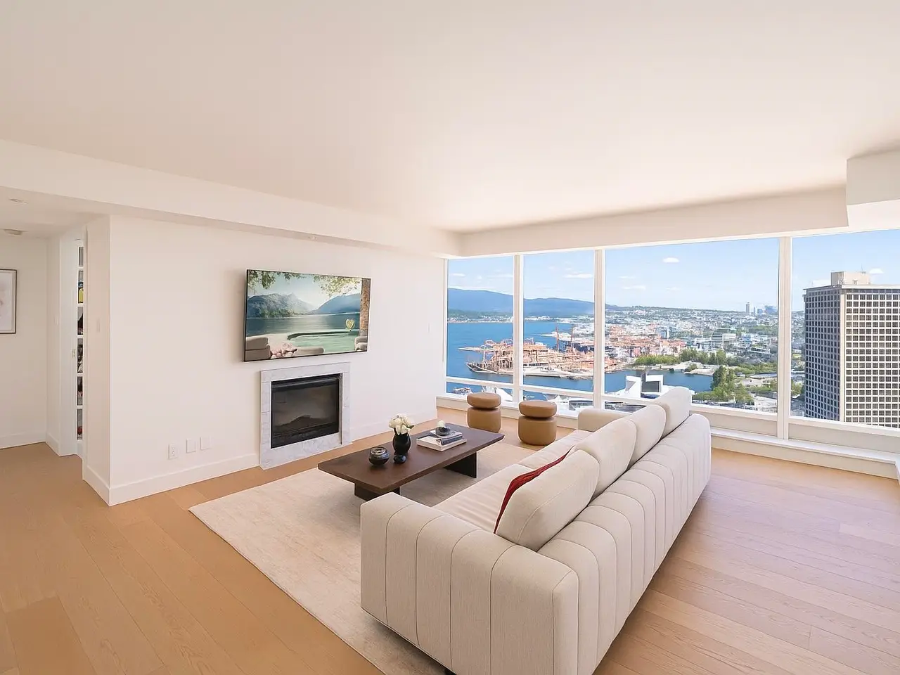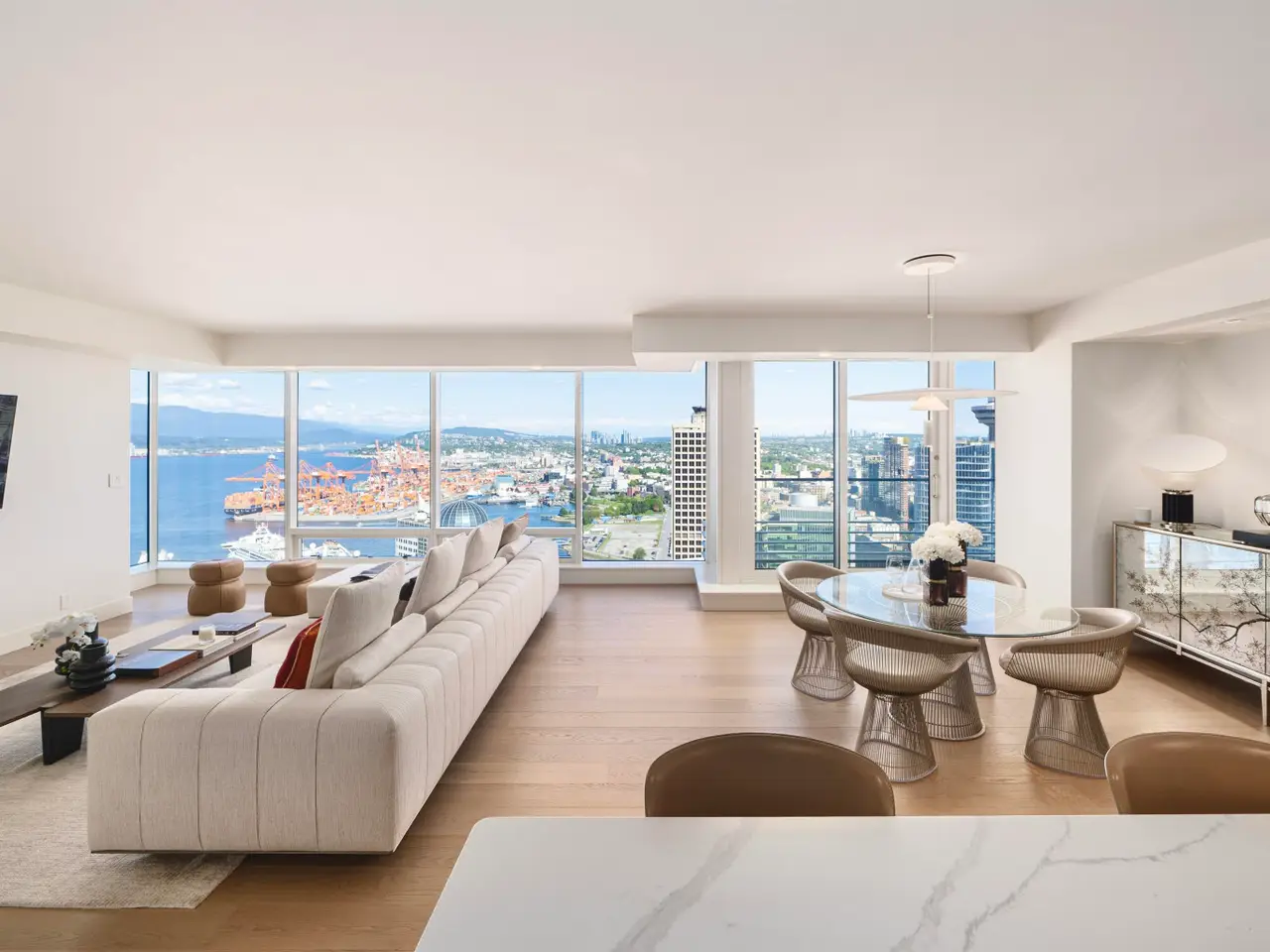 Rarely available, exquisite 02 home in the prestigious Fairmont Pacific Rim. Unobstructed, stunning views of ocean, harbour & northshore mountain from the 5th highest 02 plan. A remarkably expansive, light-filled living room that welcomes the morning sun and flows seamlessly into breathtaking panoramic views. Boasting luxury upgrades in 2020: solid hardwood floor, motorized blinds & blackout shades, marble countertop, the entire laundry room (Miele washer & dryer, countertop, cabinets, sink, faucet), Nest thermostats, all lighting fixtures, water filter, painting; dishwasher & hood fan upgraded in 2024. Boffi Italian kitchen, Miele & Sub-Zero appliances, spa ensuites. Meticulously maintained. Ready to move in. 2 parking.
