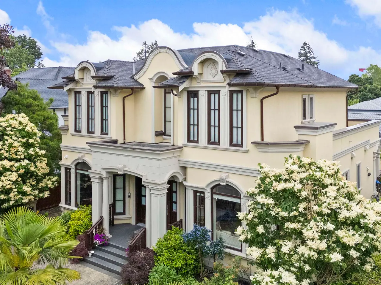 One-of-a-Kind Luxury Home in Prestigious South Granville Custom-built on a rare 59x135 (7,965 sq ft) flat lot along a wide, tree-lined street, this elegant 6-bed, 6.5-bath home features an Italian marble fireplace, grand spiral staircase, and premium finishes throughout. Enjoy Miele gourmet + wok kitchens, Control4 smart system, A/C, HRV, and EuroLine windows filling the home with natural light. The spacious family room opens to a covered patio and lush, park-like yard. Resort-style amenities include a home theatre, wine cellar, wet bar, sauna, and steam room. Steps to Crofton House, York House, Osler Elem, Eric Hamber, UBC, Oakridge, and transit.