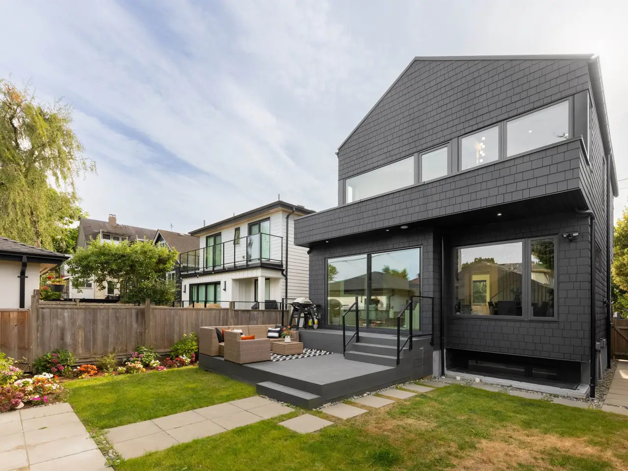 A refined family residence on one of Fraserhood’s most coveted tree-lined streets. Designed by Architrix & Enviable Designs, this modern Scandinavian home balances elegance with intention. Soaring overheight ceilings, walls of glass, and a 9x4 kitchen island anchor the open-concept main floor complete with integrated Fisher & Paykel appliances and tailored storage. Stunning and generously-sized office with custom millwork & large windows. Oversized lift-slide doors open to a lush private yard. Upstairs: 3 vaulted bedrooms, including a dreamy primary with spa ensuite and walk-in. Downstairs offers a rec room + wet bar and a flexible legal 2-bed suite. Steps to Grays Park. In McBride & Tupper catchments.