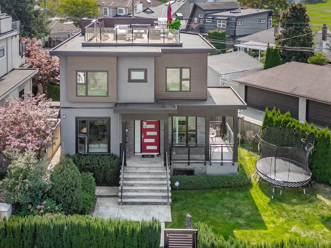 Perfectly situated beside Hillcrest Park, QE Park, & directly across from General Wolfe Elementary, this stunning contemporary home offers spectacular views. Step inside to a luminous main floor featuring marble tile w/ radiant heat & a spacious home office. The gourmet kitchen offers Thermador appliances & built in wine wall ideal for entertaining. The primary suite includes a spa-inspired 5-piece ensuite, while the show-stopping 550 sq. ft. rooftop deck with gas, speakers, cable, & internet creates a private oasis in the sky. Downstairs there is a 2-bedroom legal suite for family, guests, or rental income, plus a media room w/ its own bathroom. Plus detached 2-car garage. Fully loaded w/ premium features, this one-of-a-kind home offers unmatched lifestyle, location & luxury.