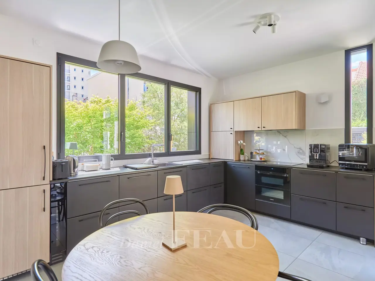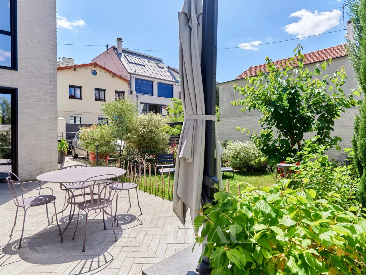 In a green bower, nearby Vanves train station, architect house dating from 2022, offering 284 sqm of living space and a garden-terrace space of 62 m². On ground floor, the entry leads to a separate and equipped kitchen, a spacious living room opening onto the garden, a suite and its shower room, a study and a separate wc ; on the upper floor, four bedrooms, three shower rooms and a separate wc on the landing. In the basement, a utility room, a living room, a fitness room, a pantry and a technical space.