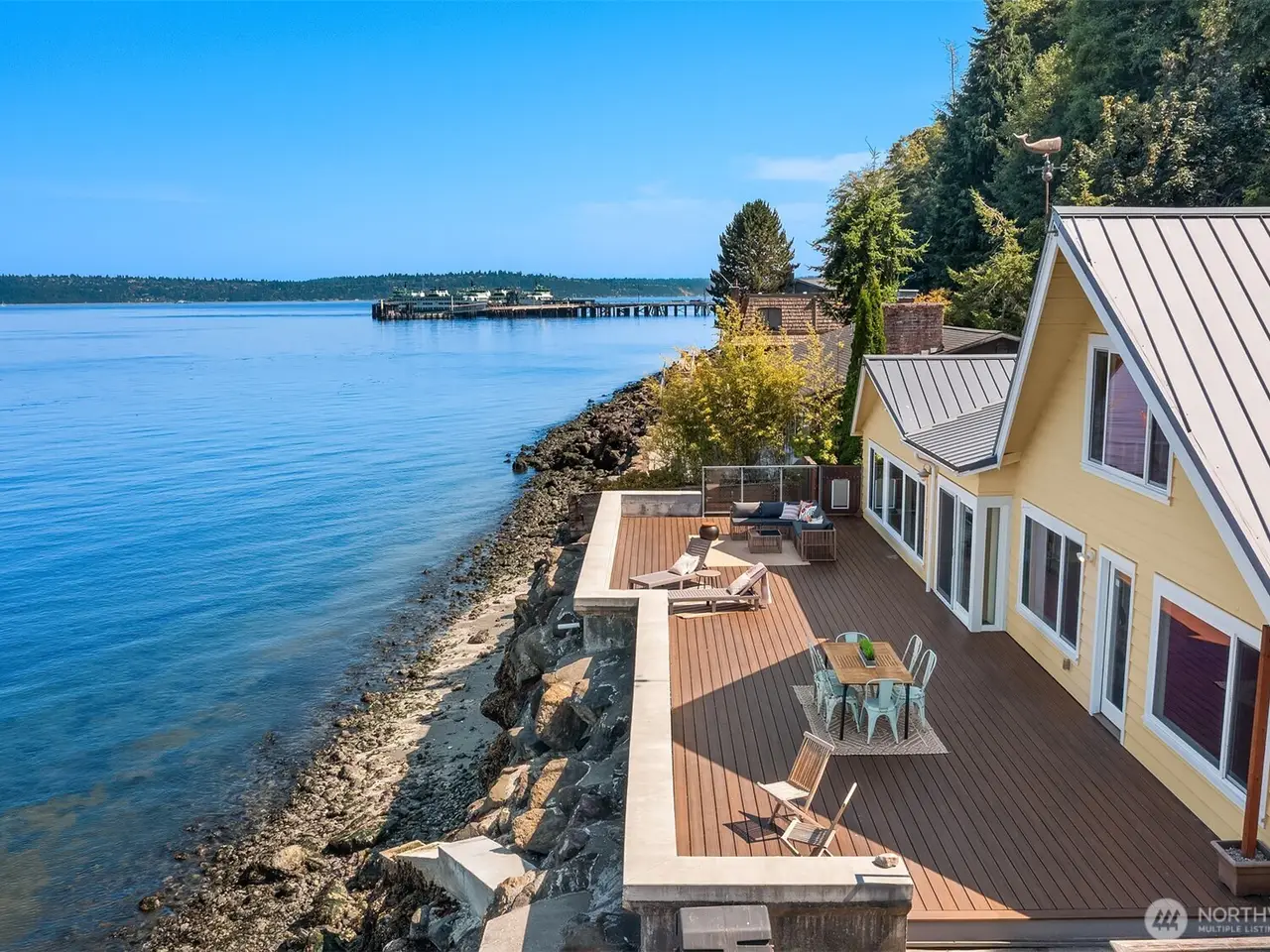Nestled along the shores of Puget Sound, on the most northern point of Vashon Island, just a scenic 20-minute ferry ride from downtown Seattle. This beautiful waterfront home offers tranquility, income potential & effortless access to the city - preferable to any downtown condo. Renovated in 2017, the open-concept design features a stunning kitchen, luxurious primary bath, FTC windows, fir ceilings & exposed beams. The expansive Trex deck invites you to savor the natural world in all of its splendor - the ideal waterfront sanctuary. The serene location features an unparalleled view of the Cascade & Olympic Mountain ranges. Look north to see Mt. Baker or sit for hours watching the boat traffic. Be on the lookout for the passing orca pods!