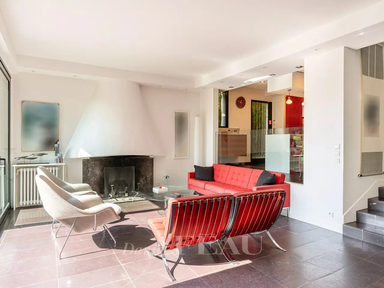 Coteaux neighbourhood. This mid 20th century architect-designed property with a 1930s style offers 230 sqm of living space. Set in a south-facing 1306 sqm plot, it includes a rotunda entrance hall, a double living/reception room opening onto a terrace, a kitchen with dining facilities, and a dining room. The first floor comprises a study, three bedrooms and a bathroom. A master bedroom opening onto a terrace enjoying a panoramic view, a dressing room and a bathroom. On a total basement with a recreation room, a utility room, a boiler room and a wine cellar. With a garage. In a convenient location a stone’s throw from the schools, the shops, Place du Marché and the station.