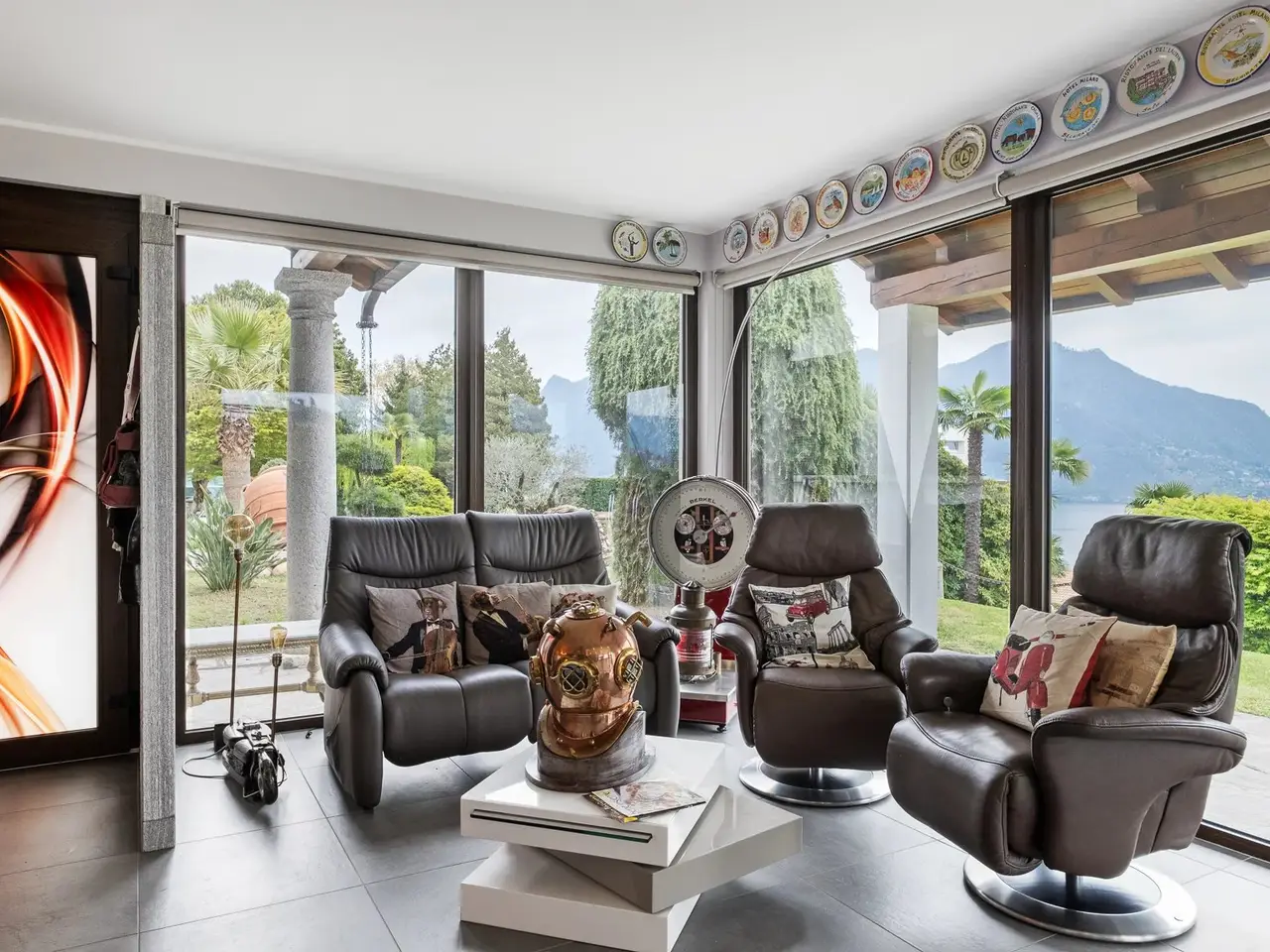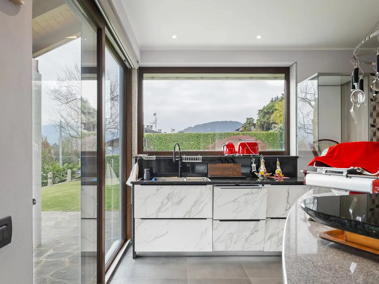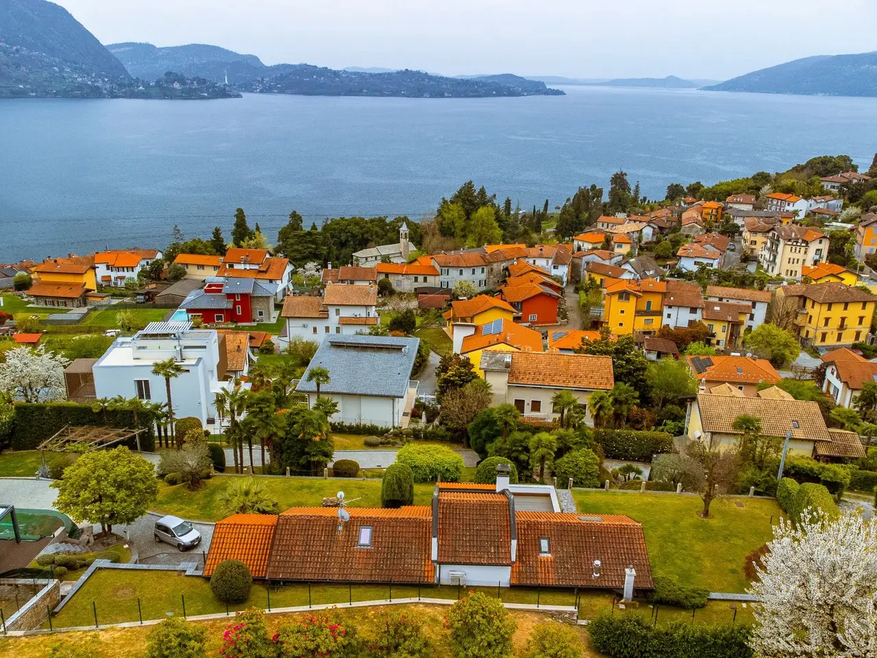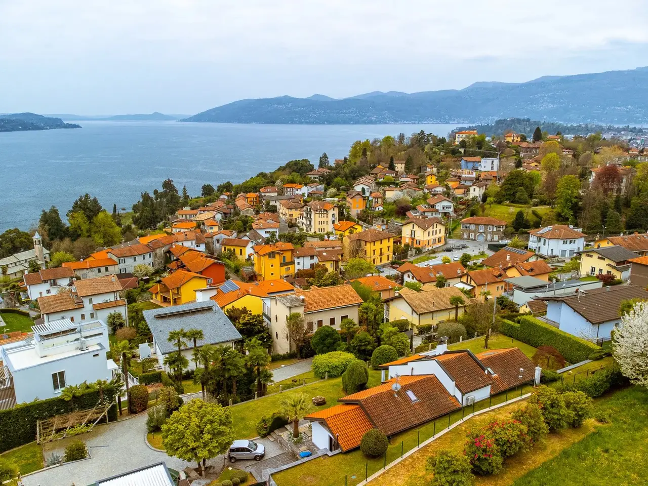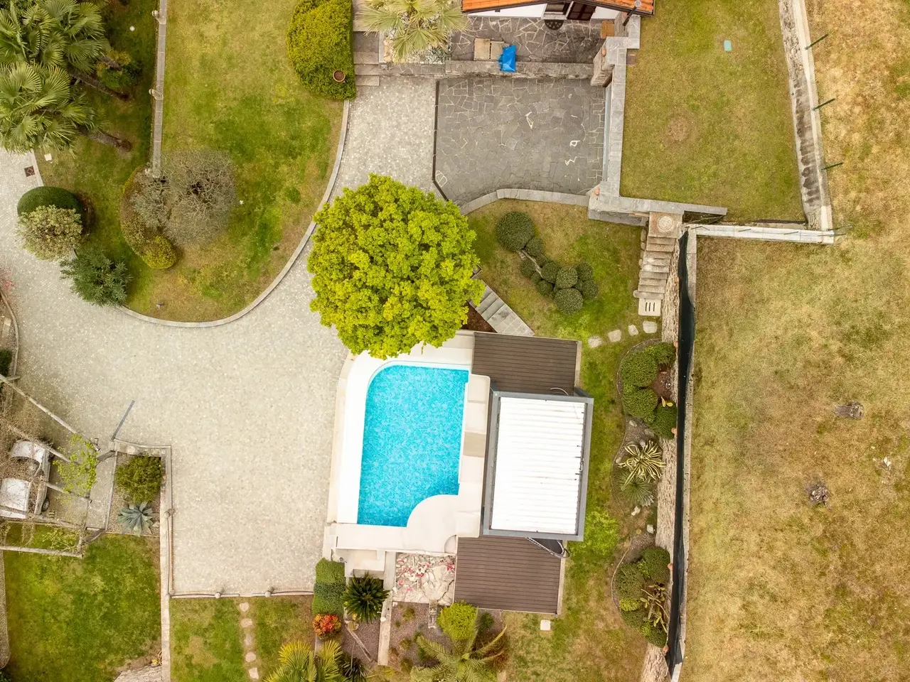 In a privileged hillside location, just a few minutes' walk from the historic center of Intra, this stunning villa enjoys breathtaking views of Lake Maggiore and the Borromean Gulf. Bathed in quiet and light, it is surrounded by an enchanting, perfectly manicured park with swimming pool, spring-fed pond and lush vegetation. The property stands out for its balance of elegance, privacy and comfort. An ancient 100-year-old olive tree, a majestic camphor tree, palm trees, fruit trees and rare flower essences frame a pond fed by spring water, populated by Koi carp specimens. Completing the garden are a bocce court, a wooded area, flower meadows, and an automated irrigation system fed by a cistern that collects spring water. The house, originally built in the 1960s, was completely renovated and expanded in 2020, with great attention to detail and quality materials. The main entrance, through a porphyry driveway, leads to a large parking area with a pergola and a convenient garage. The interior offers bright and refined rooms: a large open space on the ground floor accommodates living room with double-sided fireplace, integrated kitchen, dining area, two bedrooms, two bathrooms, wine cellar and covered terraces. On the second floor there is a study with a panoramic terrace, a bedroom with a covered terrace, a second bedroom and a bathroom equipped with a mini-pool with whirlpool and shower. Outside, the heated infinity pool with solarium and pergola represents a corner of absolute relaxation. The villa is equipped with many state-of-the-art amenities, including an air-conditioning system to maintain an ideal environment throughout the year and a cozy fireplace for relaxing on cooler evenings. The property is entirely surrounded by an automatic irrigation system, which keeps the garden in perfect condition, and carefully designed outdoor lighting to enhance every architectural detail.