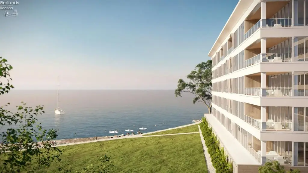 Welcome to this lakefront condominium in Waterwood Resort. A lakefront wellness community surrounded by a stunning natural landscape. Take in Lake Erie breezes and sunsets while enjoying amenities like lakeview dining, a sandy beach, a fitness center, a six-suite inn, a stunning swimming pool and cabana bar overlooking Lake Erie. The modern condominium building with single-floor units, each featuring a balcony overlooking Lake Erie, contemporary interior design. Garage parking, a rooftop amenity deck, and immediate access to Waterwood's impeccable grounds await you. Base level packages offer high quality offerings but you have the ability to upgrade your finishes to suit your taste and functionality. Open modern floor plans, balconies, quartz countertops and backsplash, stainless steel Kitchen Aid appliances and many more high-end features throughout.