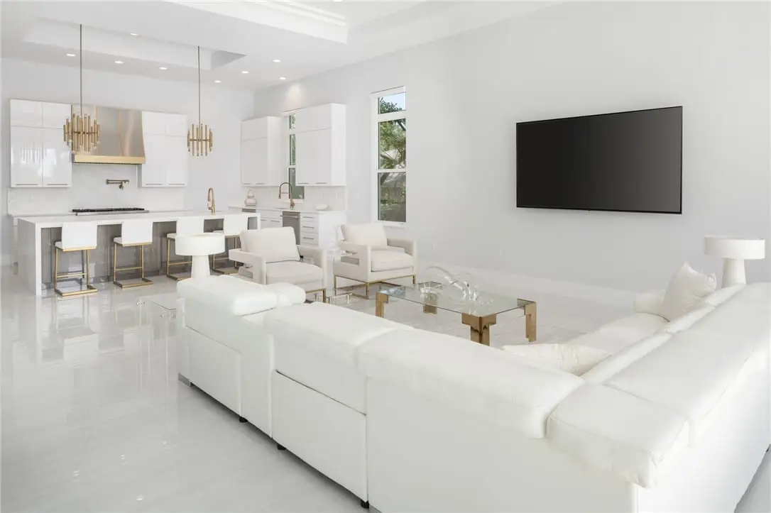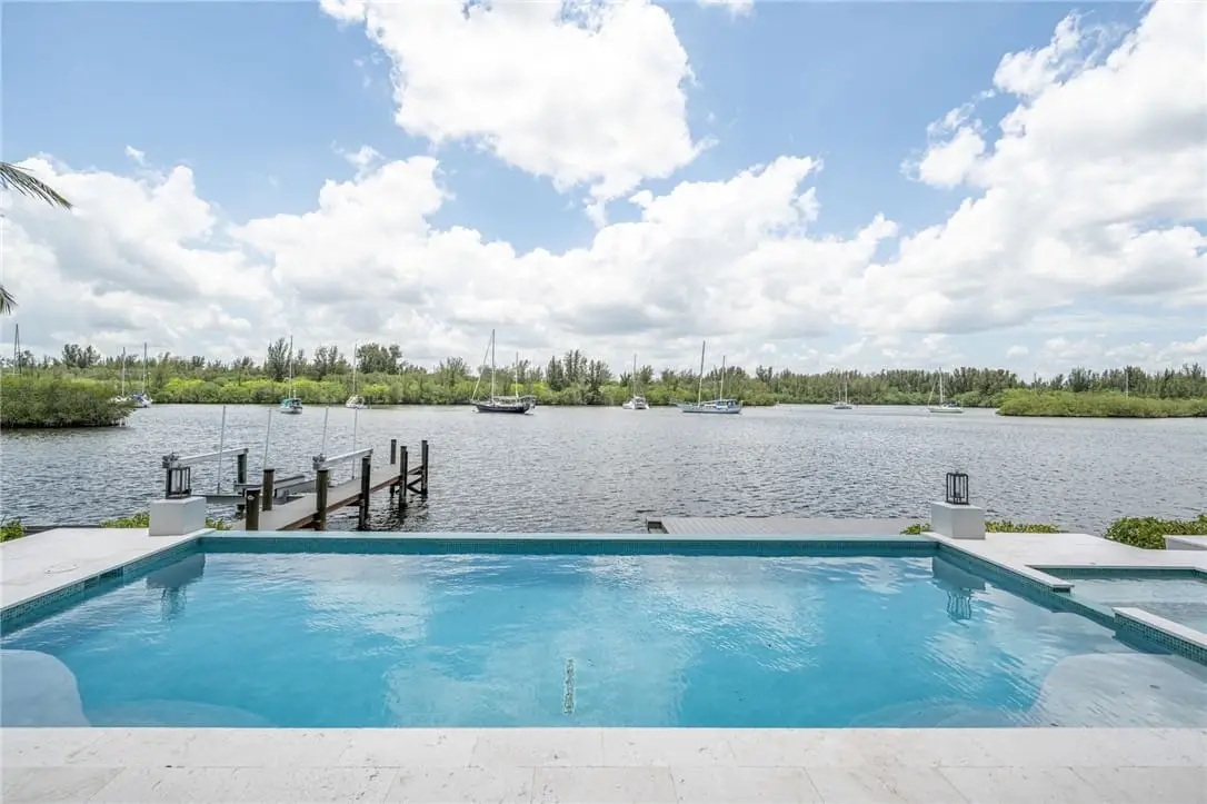 Experience luxury waterfront living in this breathtaking 2022-built riverfront home. Featuring 4 beds, 4 baths, and a spacious three-car garage with approximately 5,261 square feet, this property is designed to impress. Soaring voluminous ceilings and floor-to-ceiling sliders frame mesmerizing river views, seamlessly blending indoor and outdoor spaces. Every detail has been meticulously crafted, from the elegant fireplace in the living area to the premium Jenn-Air appliances in the chef's kitchen. Step outside to your private dock with lift, and enjoy the tranquil beauty of the river from your own backyard. A true riverfront gem!