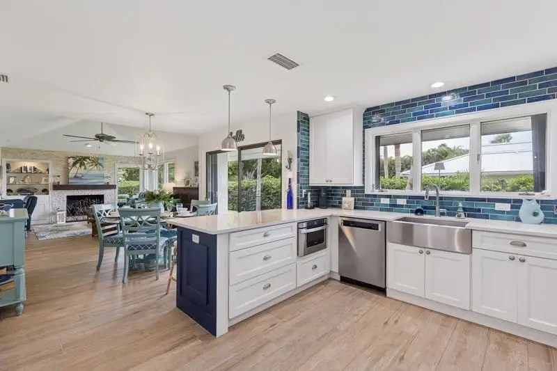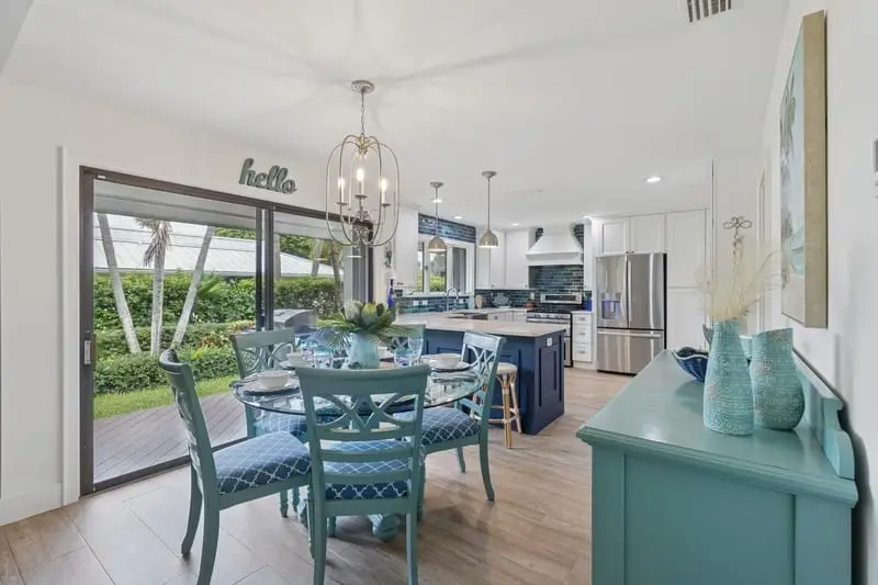 Thoughtfully designed 4BR/3BA coastal retreat where no detail is overlooked. Elegant white kitchen, custom cabinetry, and wood plank tile throughout. Resurfaced saltwater pool, gas fireplace, and range, plus exterior gas line for grilling. Spacious fenced yard with new 30-year metal roof (completion mid-Nov). Walk or cart to deeded beach access with private parking, lanais, showers, grill & tortoise habitat. Near Moorings Yacht & CC with rare Social Club Membership opportunity.