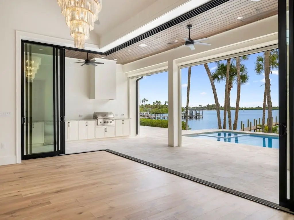 Riverfront Estate sanctuary; your private resort. Elegant luxury meets effortless Florida living. New custom masterpiece boasts 300 feet of direct riverfront on over an acre, a 180-foot dock & boat lift, beckons magical morning fishing & sunset cruises only steps from home! 4,270 sq ft, 4/5 1/2, 3+ car garage, open concept, soaring ceilings, exposed wood beams, 10-ft impact sliders, indoors flow seamlessly outside to a resort-style lanai, pool & spa. 3 fireplaces, state-of-the-art features, and timeless craftsmanshipan experience too extraordinary to describe, yet impossible to forget.
