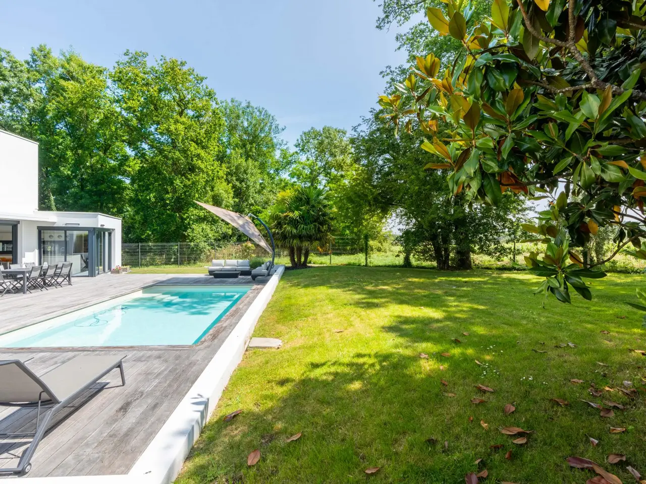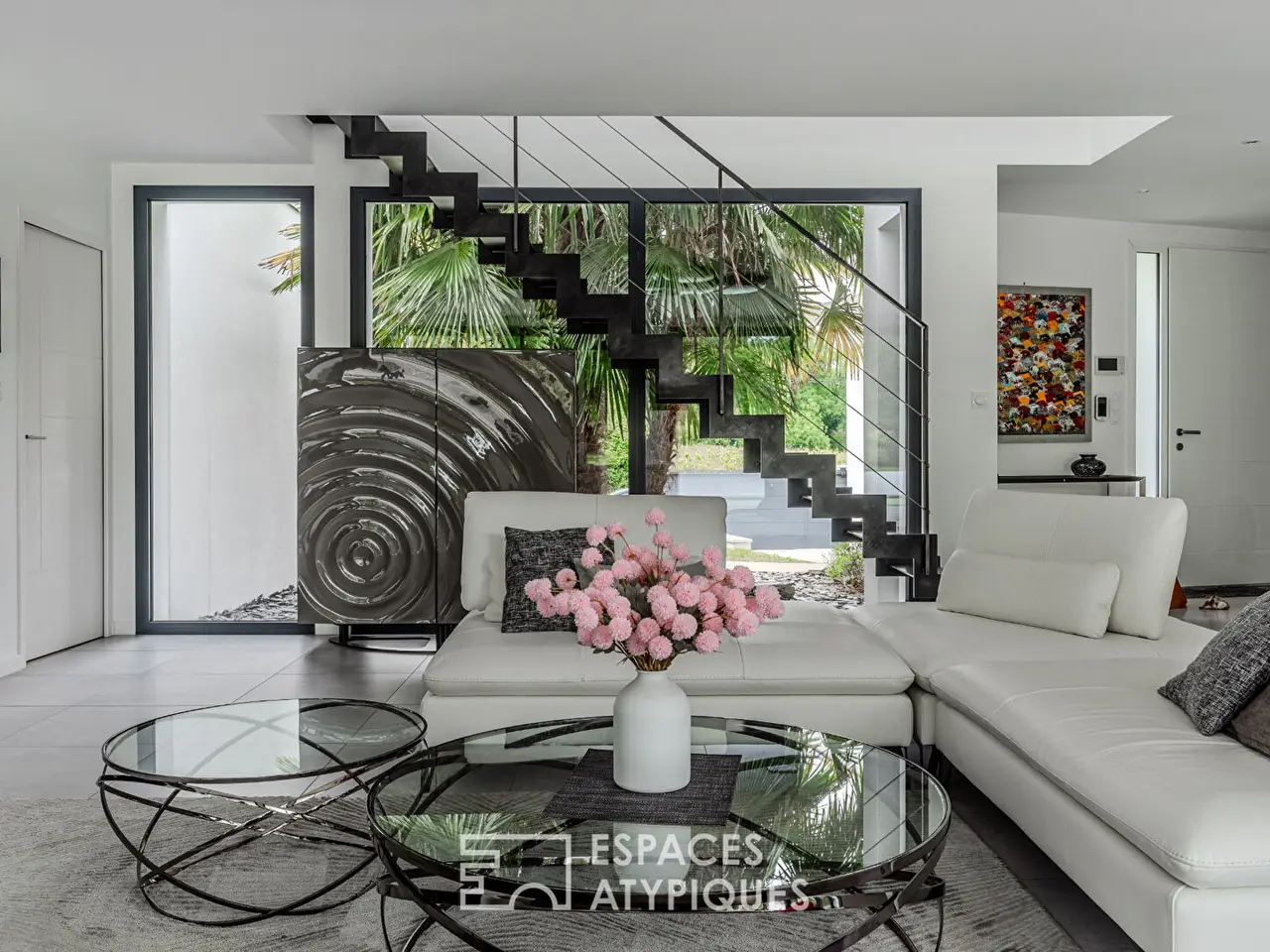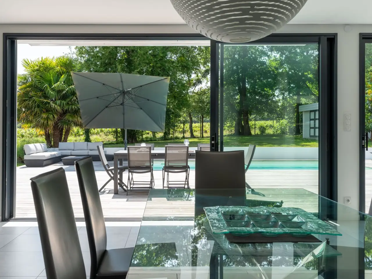 On the edge of the vineyard, in a green setting just minutes from the village of Vertou and only 20 minutes from Nantes, this 245 sqm contemporary villa embodies a certain idea of architectural elegance. Entirely designed to interact with nature, it opens generously to the outdoors through large bay windows and offers clean lines, fluid circulation, and selected materials. The living space of nearly 100 sqm deploys a remarkable volume where each zone, living room, dining room, kitchen, finds its place around a central double fireplace. The finishes are neat, the tones soothing, and natural light omnipresent. The open kitchen, with clean lines and high-end equipment, extends into a spacious and fitted scullery, and next to it, a storage space. The complex naturally extends onto a large Ipe terrace that envelops the pool, in a resolutely indoor-outdoor spirit. The landscaped garden, bordered by vines, completes this atmosphere of serenity. The 50 sqm master suite, set back, offers an intimate space with a contemporary bathroom and large fitted dressing room. A separate office, with a separate entrance, completes the single-story living space, ideal for professional use or a dedicated space. Upstairs, a graphic staircase leads to three bedrooms bathed in light with views, as well as a simple and functional bathroom. Double carport, shelter, modern technical services. In the immediate vicinity of schools, daycare and school transport, it offers an ideal living environment, combining calm, design and functional spaces. Information on the risks to which this property is exposed is available on the Georisques website https://www.georisques.gouv.fr Energy class B / Climate class A, Estimated average amount of annual energy expenditure for standard use, Average energy prices indexed on January 1, 2021: between EUR1,270 and EUR1,780 per year. REF. 2579 Additional information * 8 rooms * 5 bedrooms * 2 shower rooms * Outdoor space : 1260 SQM * Parking : 4 parking spaces * Property tax : 2 800 € Energy Performance Certificate Primary energy consumption b : 96 kWh/m2.year High performance housing
