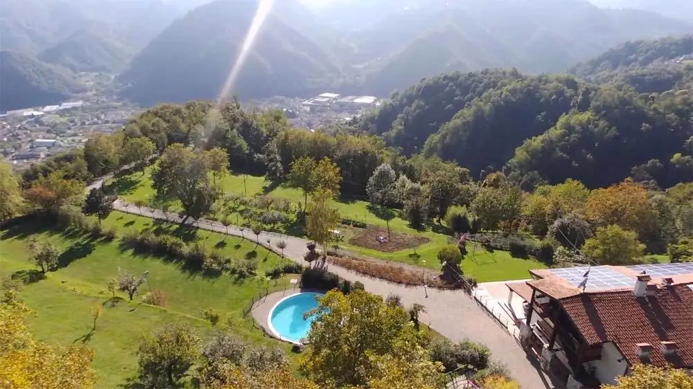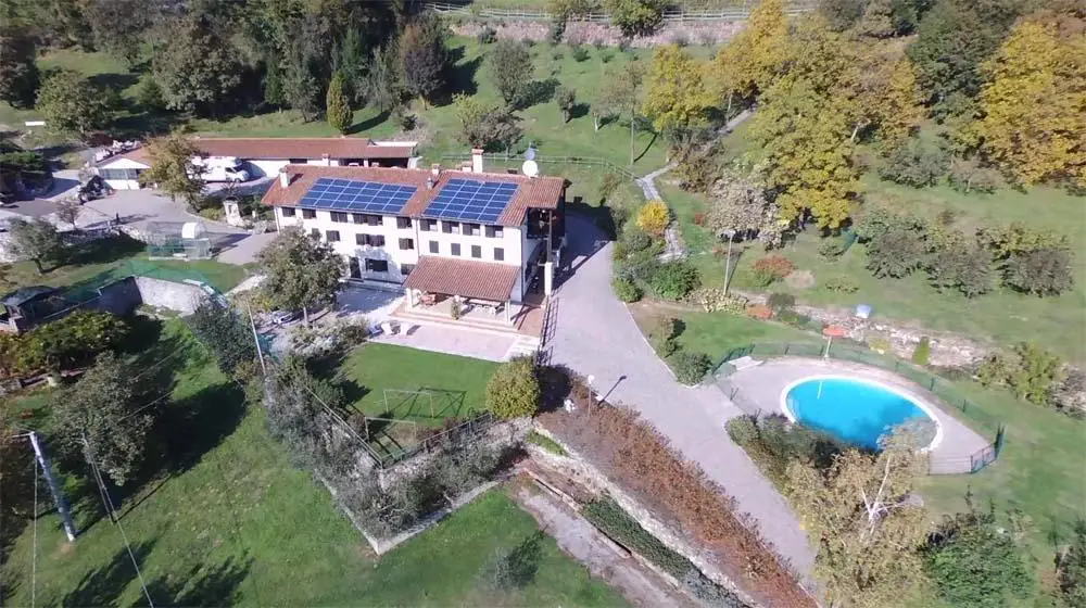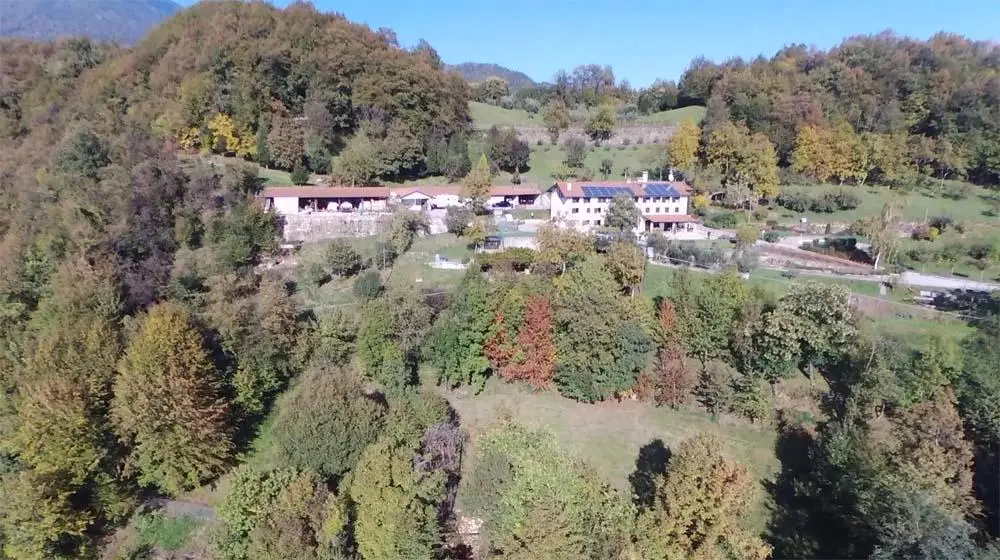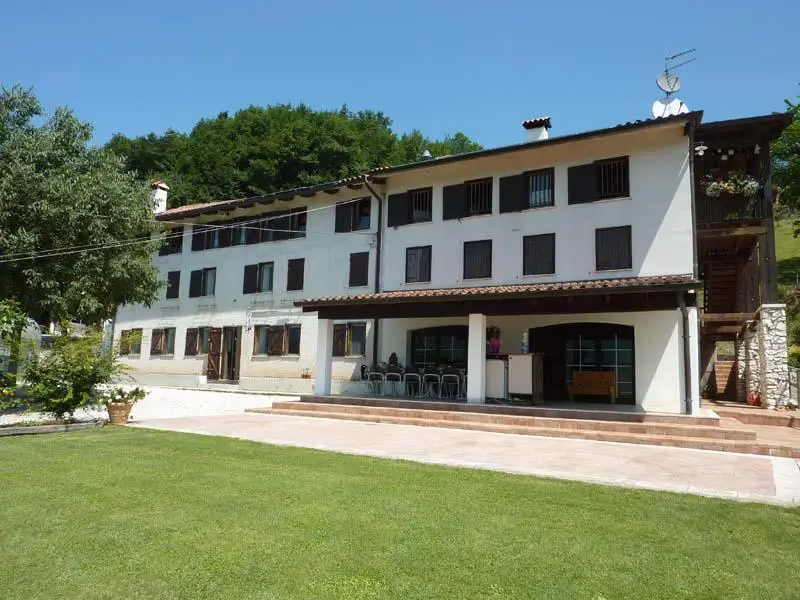 The real estate property is located in the Municipality of Torrebelvicino (VI) in the hills. It is located on the top of a hill, surrounded by the mountains of the Monte Pasubio massif, five minutes by road (all paved) from the town of Schio about five kilometers away. The total area is about 70,000 square meters, divided into about four hectares of meadows and cultivated, the remaining wooded.