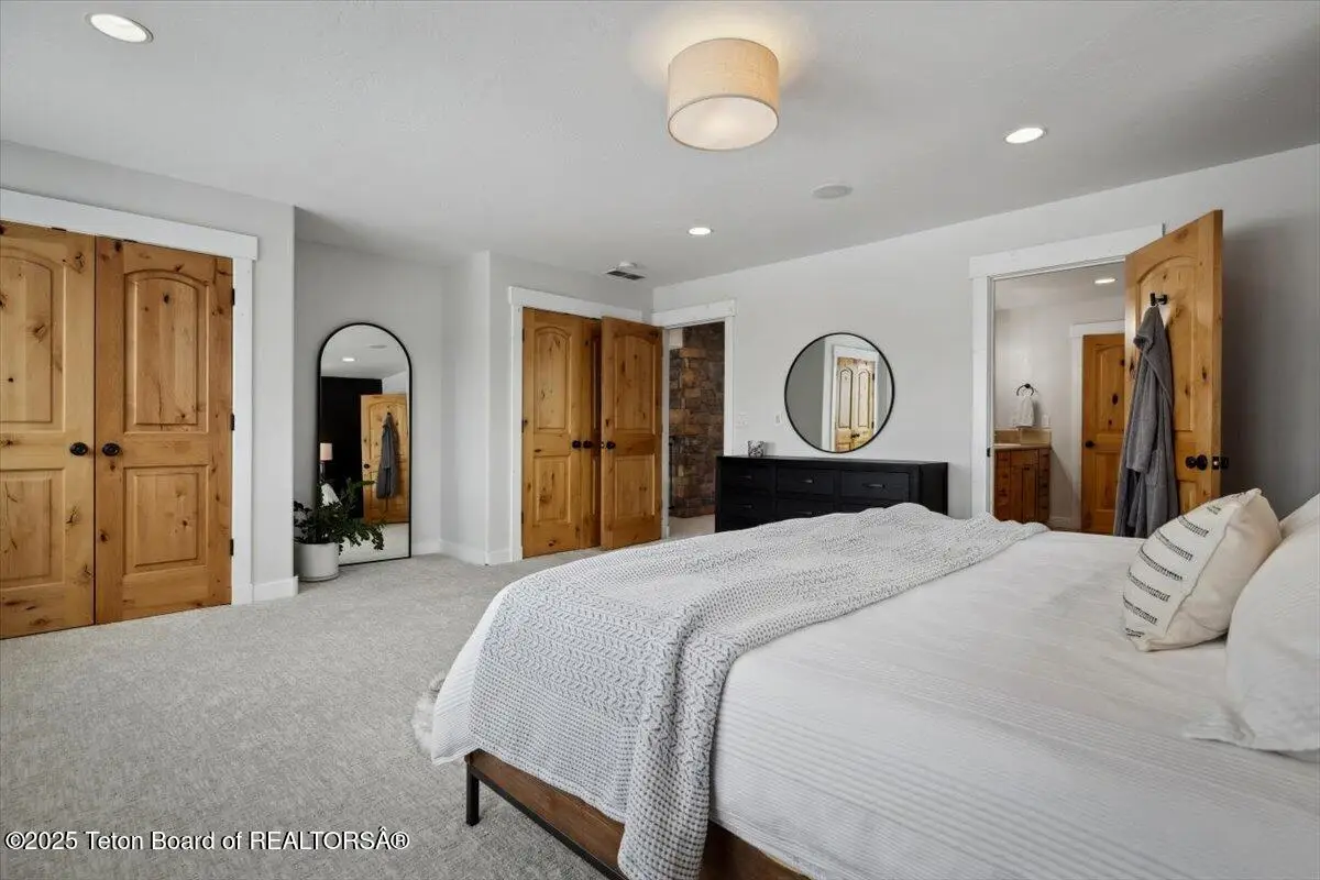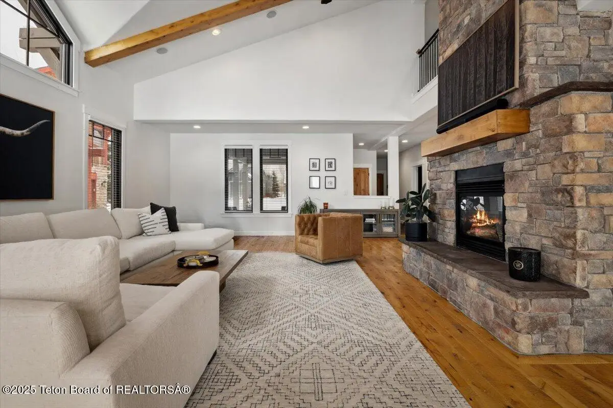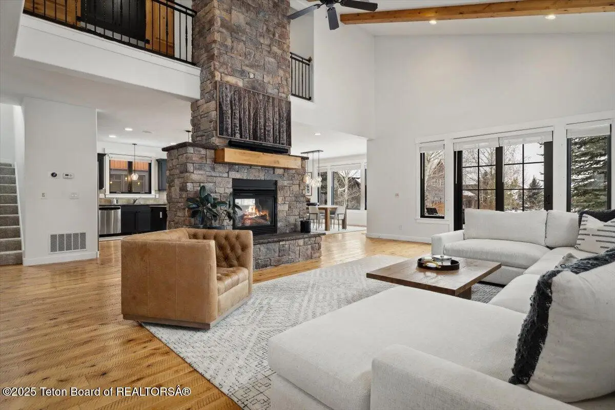 Exquisitely finished home in the luxury golf community of Teton Springs where world class amenities meet the outdoor enthusiast's dream location. Located with expansive open space & a large pond behind the home, you will feel embraced by the high-end neighborhood with its winding pathways and National Forest access. As you walk into the home, you will appreciate the splendor of the vaulted ceilings, bright accents, chef's dream kitchen, double sided fireplace and expansive windows. This well cared for home boasts new paint and new carpet, upgraded appliances, new light fixtures, new blinds, a reverse osmosis water filtration system, epoxy garage floor, new landscaping, and much more! With 3 suites plus a lower level bedroom/den and powder room, your home in the Tetons is complete!