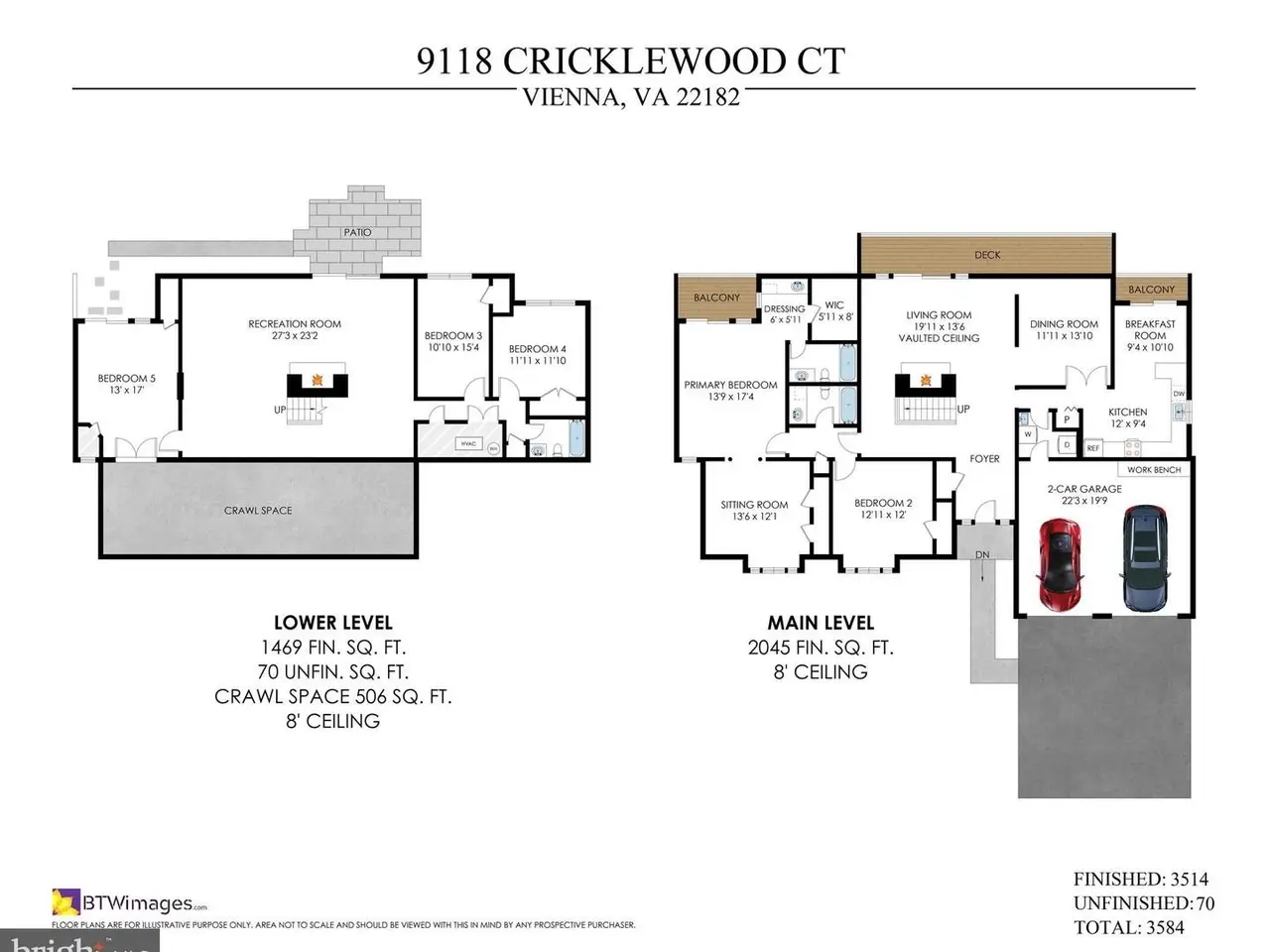 Beautifully updated contemporary in sought after Wolf Trap Woods. Located in the desirable Wolftrap Woods community, known for its mature trees, quiet cul-de-sacs, tennis courts, basketball courts, trails and proximity to Tysons Corner, Metro, and Wolf Trap National Park for the Performing Arts. Enjoy easy access to major commuter routes, top-rated Fairfax County schools, parks, and shopping. This spacious 2-level home offers vaulted ceilings, abundant natural light, and peaceful wooded views. Lots of recent updates include, freshly painted (2025), HVAC, water heater, gutters, kitchen, upgraded bath (2023), carpet, washer (2020), and roof (2012). The inviting living room features a wood-burning fireplace and opens to a large deck-perfect for entertaining. The remodeled kitchen offers a breakfast area and balcony access, plus a separate dining room for formal gatherings. The main-level primary suite includes a generous sitting room, dressing area, walk-in closet, private bath, and balcony. The walkout lower level features a large rec room that opens to a patio, three additional bedrooms, and a full bath. Two-car garage and driveway parking.